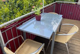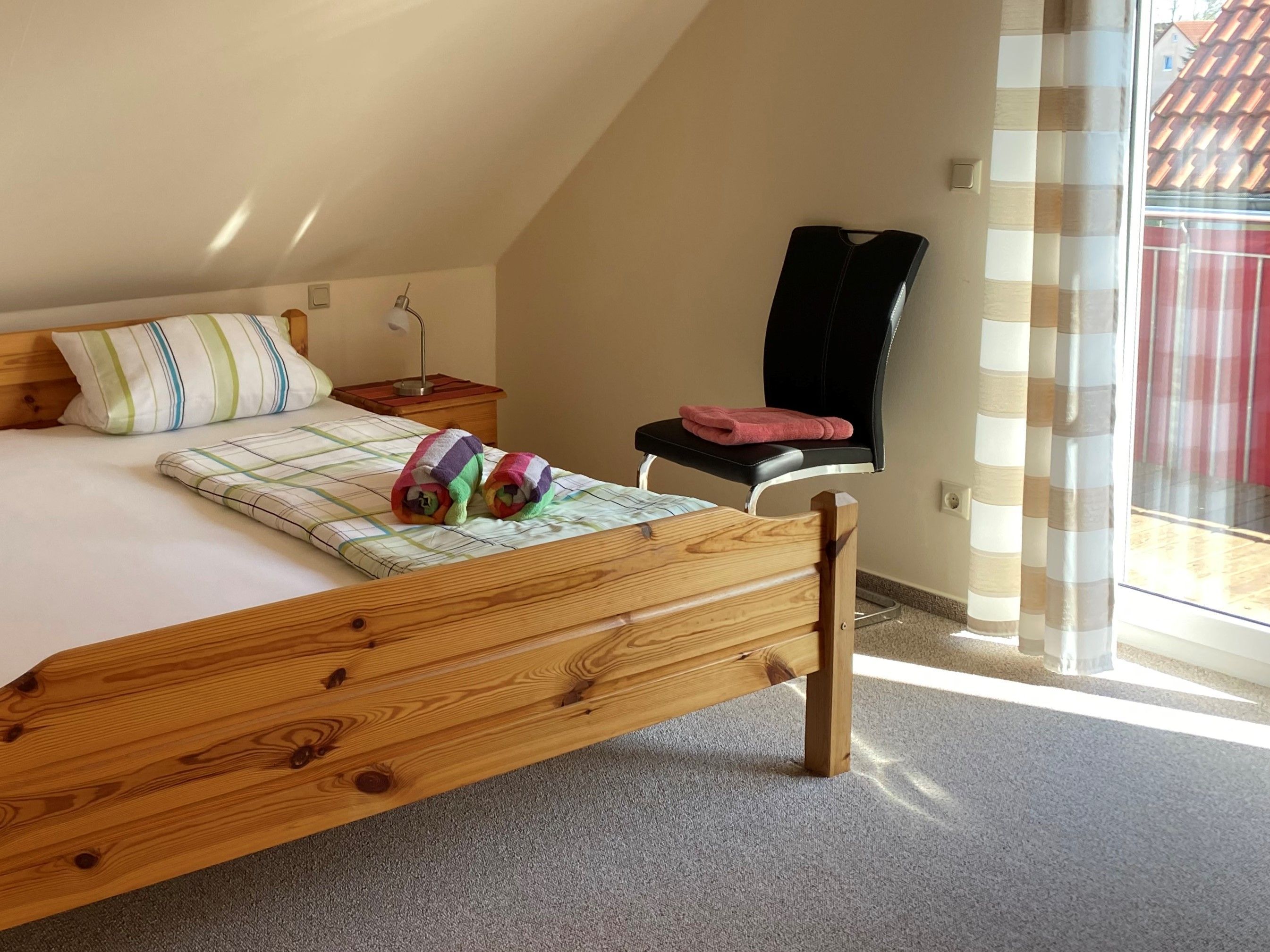 Die Obergeschoss-Ferienwohnungen haben einen Balkon.