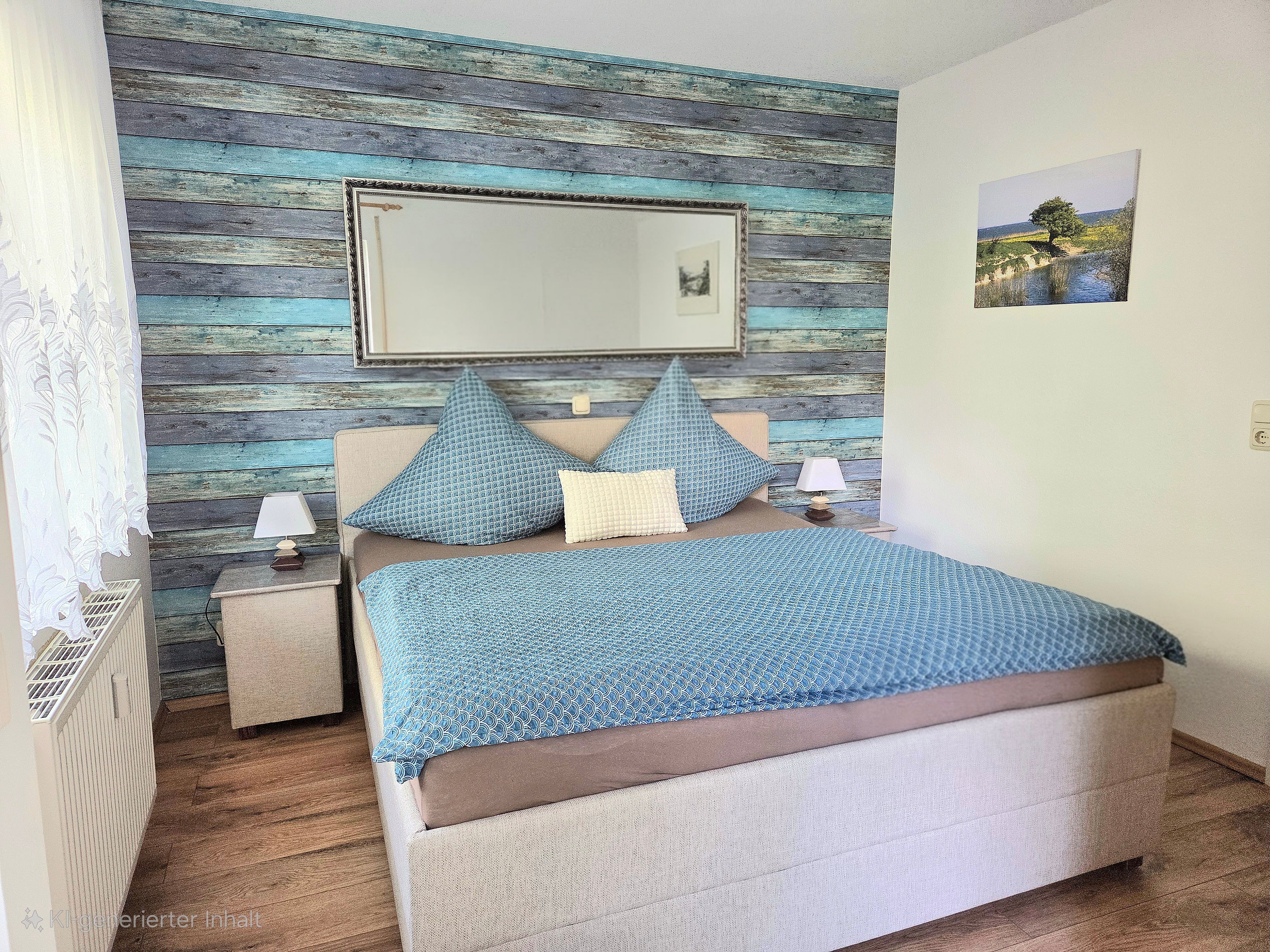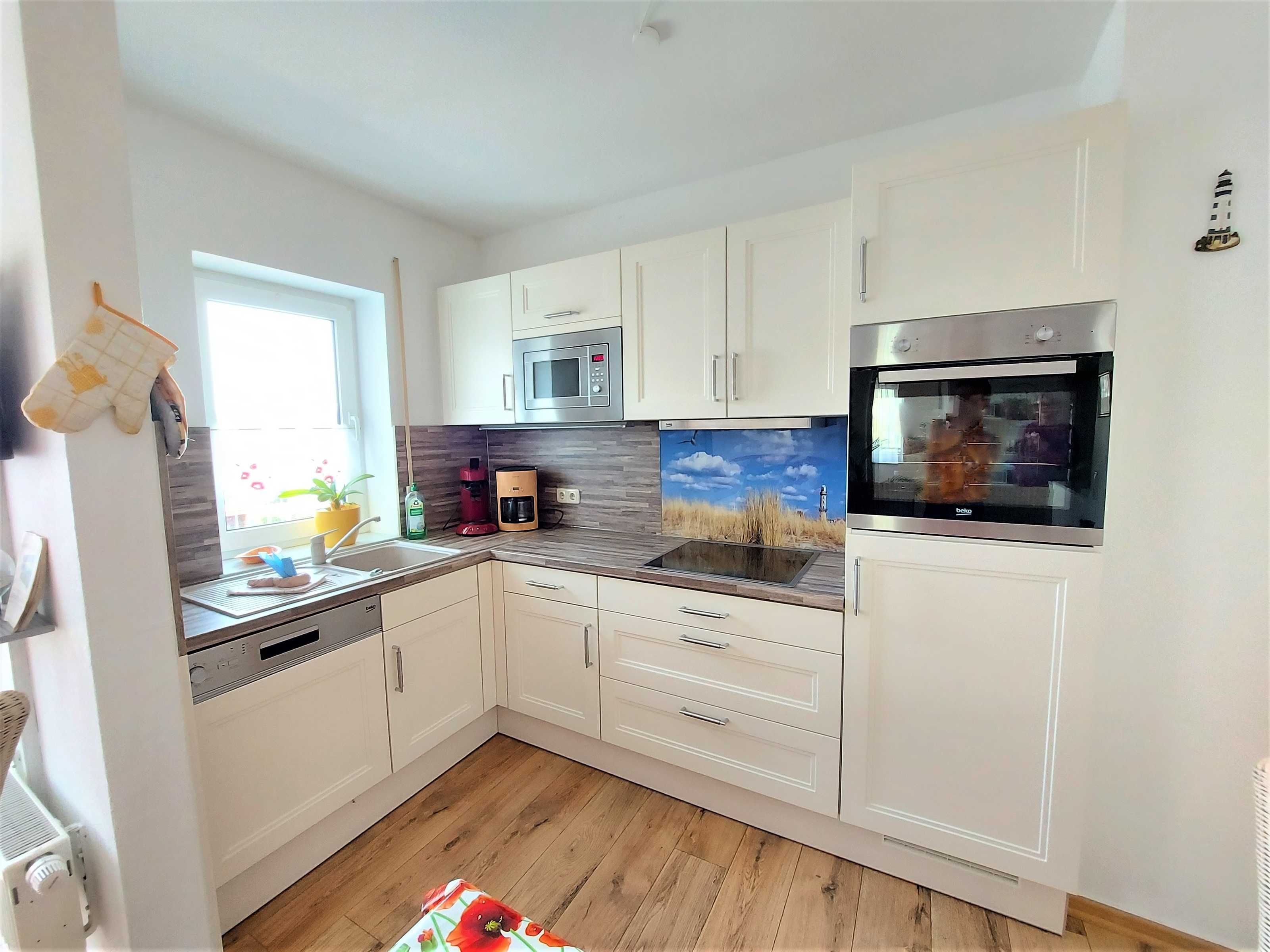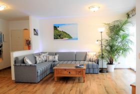 Diese Komfort-Ferienwohnung befindet sich in bevorzugter Lage am Hochufer im ersten Stock eines gepflegten Apartmenthauses in ruhiger Lage aber sehr Zentral. Sie verfügt über einen großen lichtdurchfluteten Wohnraum mit 2 gemütlichen Sofas, Sessel und Hocker die zum Sat.- Fernsehen oder zum Musikhören einladen,oder gehen sie von hier auf den Balkon mit schönen Holzmöbeln und Sonnenschirm und geniessen zb. leckeren Fisch den sie gerade am Hafen direkt vom Fischer geholt haben und in der kompletten Einbauküche mit allem Komfort , wie Geschirrspüler,Mikrowelle,Ceranfeld,Kühl-Gefrierkombi usw mit Freude zubereiten können.Angrenzend ist der Esstisch mit 4 gemütlichen Stühlen..Die Nacht geniessen sie im grosszügigen Schlafzimmer mit neuem Designerboxspringdoppelbett und 2. Balkon und im zweiten Schlafzimmer mit 2 Einzelbetten.Im Bad erwartet sie zum Entspannen eine Wanne. Auch ihr Auto hat einen eigenen PKW-Stellplatz auf dem Hof.