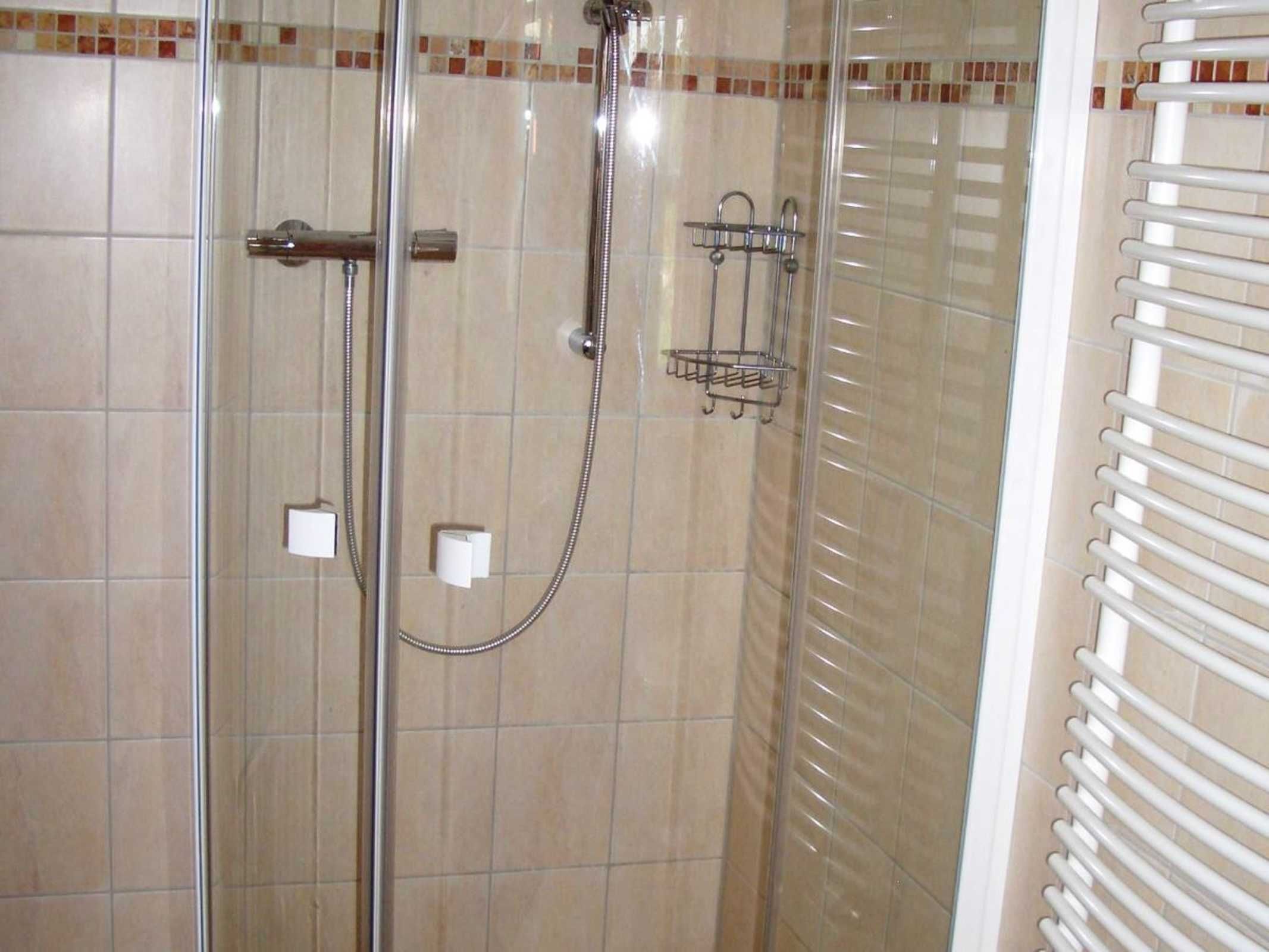 Das Bad ist mit einer ebenerdigen Dusche, Handtuchheizkörper und ebenfalls Fußbodenheizung versehen. Zwei separate Schlafzimmer im 1. Obergeschoß (1 x Doppelbett und 1 x zwei Einzelbetten 0,90 x 2,00 m) bieten Platz für vier Erwachsene. Auf einer großen Terrasse gibt es eine gemütliche Sitzecke und einen Grill. Die Erstausstattung Bettwäsche und Handtücher ist bereits im Gesamtpreis enthalten.