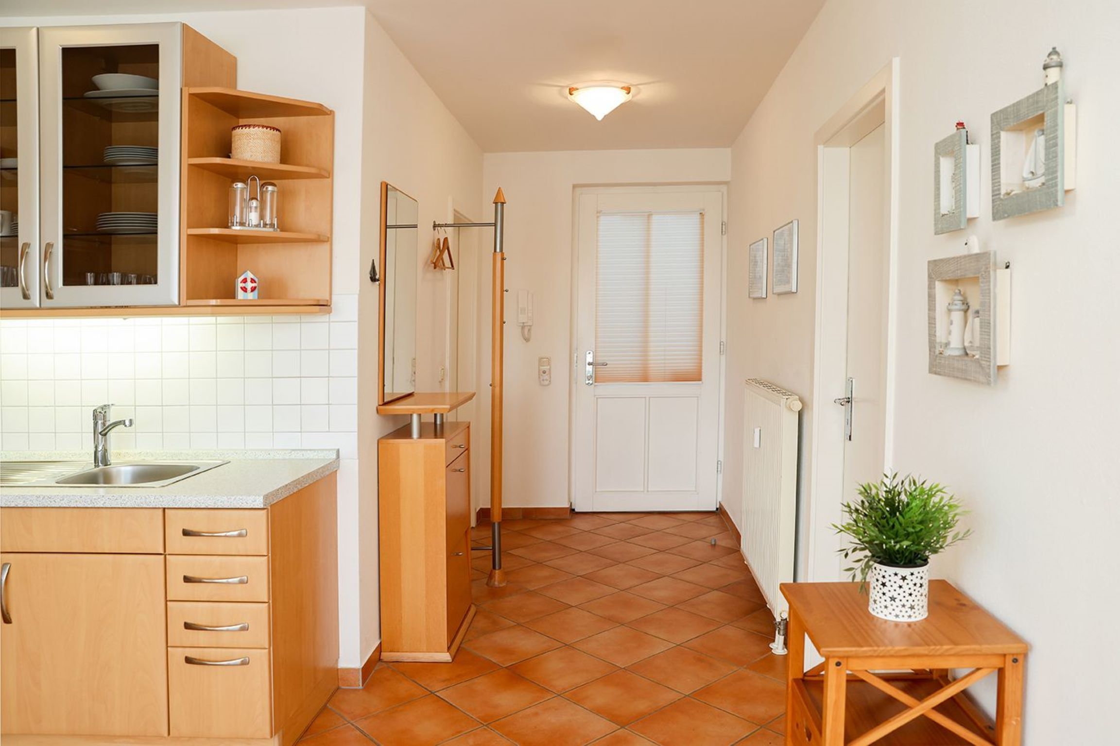 Nur 10 m vom Strand wohnen Sie in einer modern eingerichteten 3-Raum-Ferienwohnung. Die 58 qm große Wohnung liegt in der 5. Etage. Das Wohnzimmer ist mit einer Schlafcouch, Couchtisch, zwei Sessel, Anrichte, Kabel-TV, Radio, Essbereich (Esstisch und 4 Stühle) und Küchenzeile ausgestattet. Von der Loggia hat man einen wunderbaren Blick auf den Baltic-Park und einen seitlichen Blick auf die Ostsee. Im Schlafzimmer stehen ein Doppelbett und ein Kleiderschrank und im Gästezimmer ein Etagenbett und ein Kleiderschrank. Die Küchenzeile wurde modern ausgestaatet mit Mikrowelle, Kühlschrank, Kaffeemaschine, Vierplattenkochfeld, Geschirrspüler, Toaster und Wasserkocher. Das Bad mit Dusche/WC und der Flur mit Garderobe komplettieren die Wohnung.