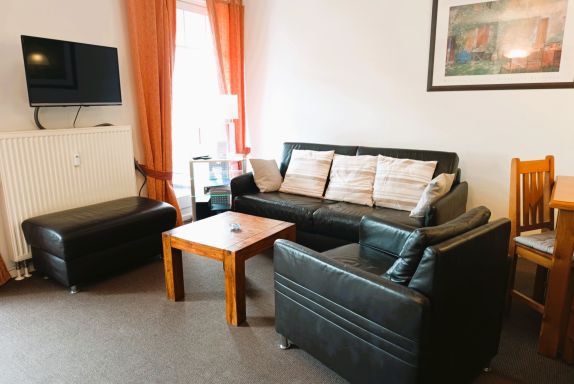 Die Wohnung WM301 ist eine moderne zertifizierte Dreiraum-Wohnung mit Balkon zur Ostseite und ca. 55 qm groß. Der Preis für die Ferienwohnung WM301 beinhaltet passwortgeschütztes W-LAN, Wäsche für 2 Personen und Endreinigung. Zu der Wohnung steht Ihnen der Parkplatz-Nr. 78 in der Tiefgarage (1,50 m hoch) kostenfrei zur Verfügung. Die zweckmäßig gestaltete Ferienwohnung in der 3. Etage hat einen offenen Wohnbereich mit Küchenzeile und Essbereich, ein Schlafzimmer mit Doppelbett, ein Kinderzimmer mit Etagenbett und einen Balkon. Die funktionale Küchenzeile ist mit 4-Platten-Ceranfeld und Backofen, Kühlschrank mit Gefriefach, Geschirrspüler, Mikrowelle, Kaffeemaschine und div. Geschirr ausgestattet. Ein Bad mit Dusche, Waschtisch und WC komplettieren den Gesamteindruck der Wohnung.