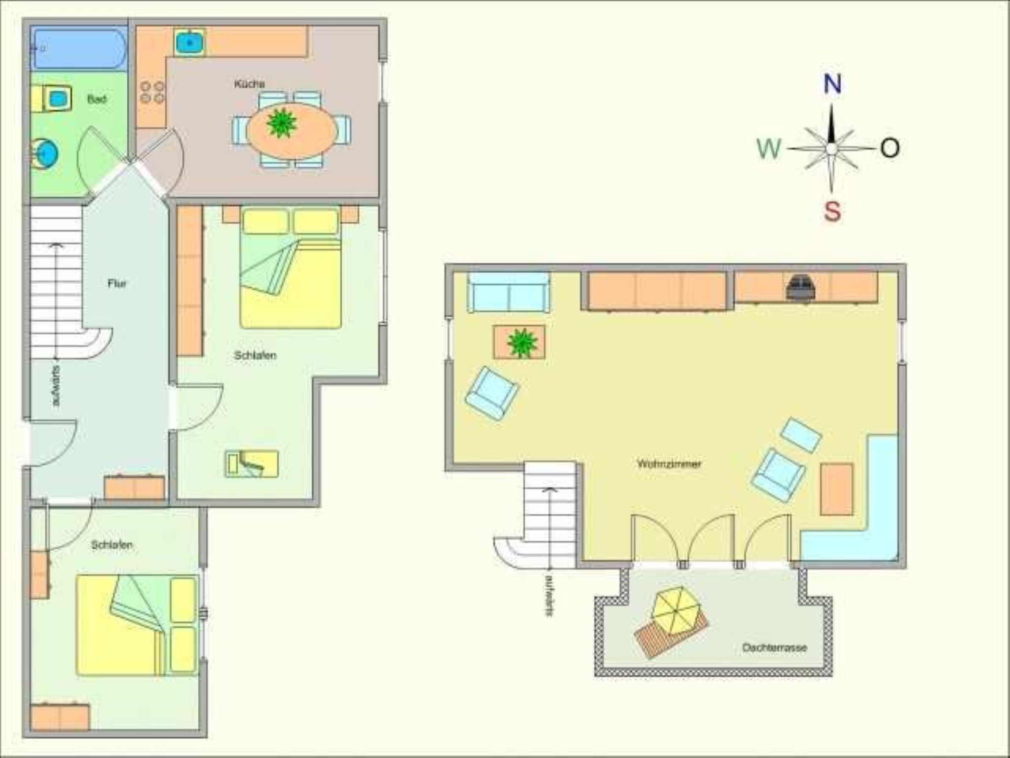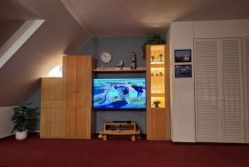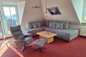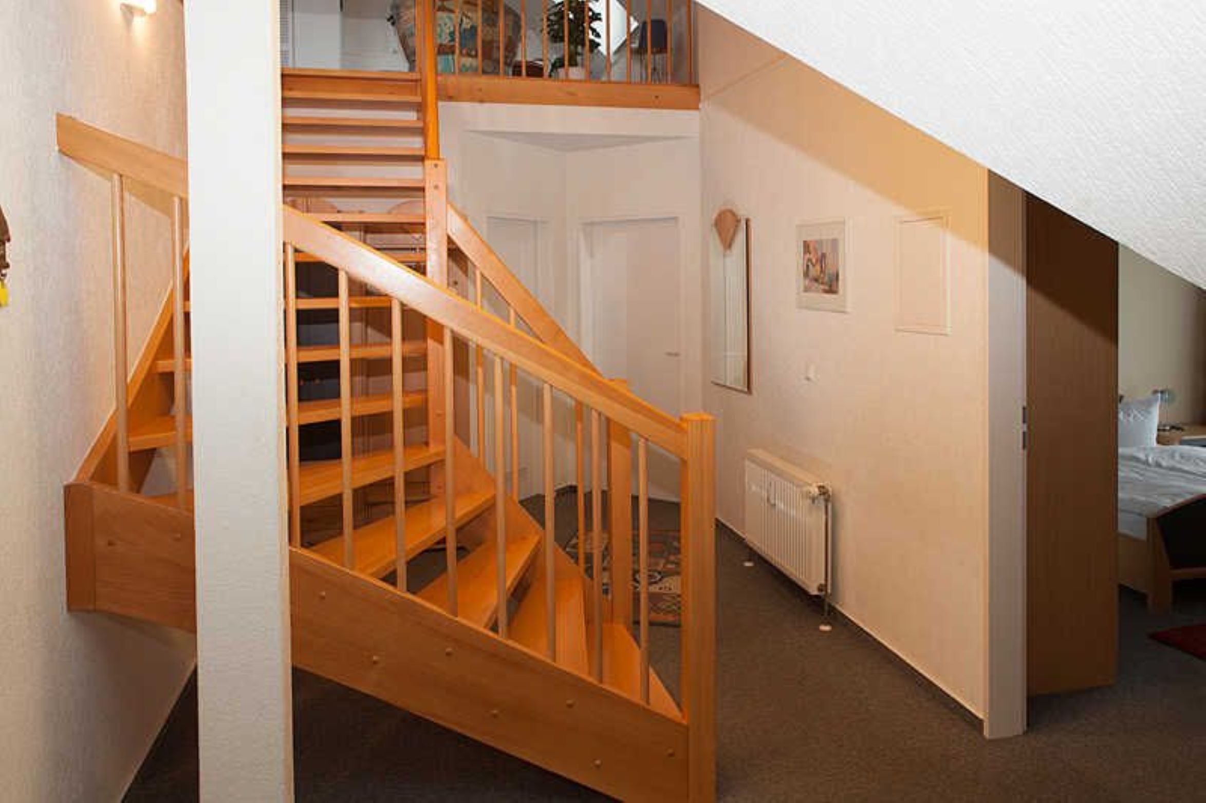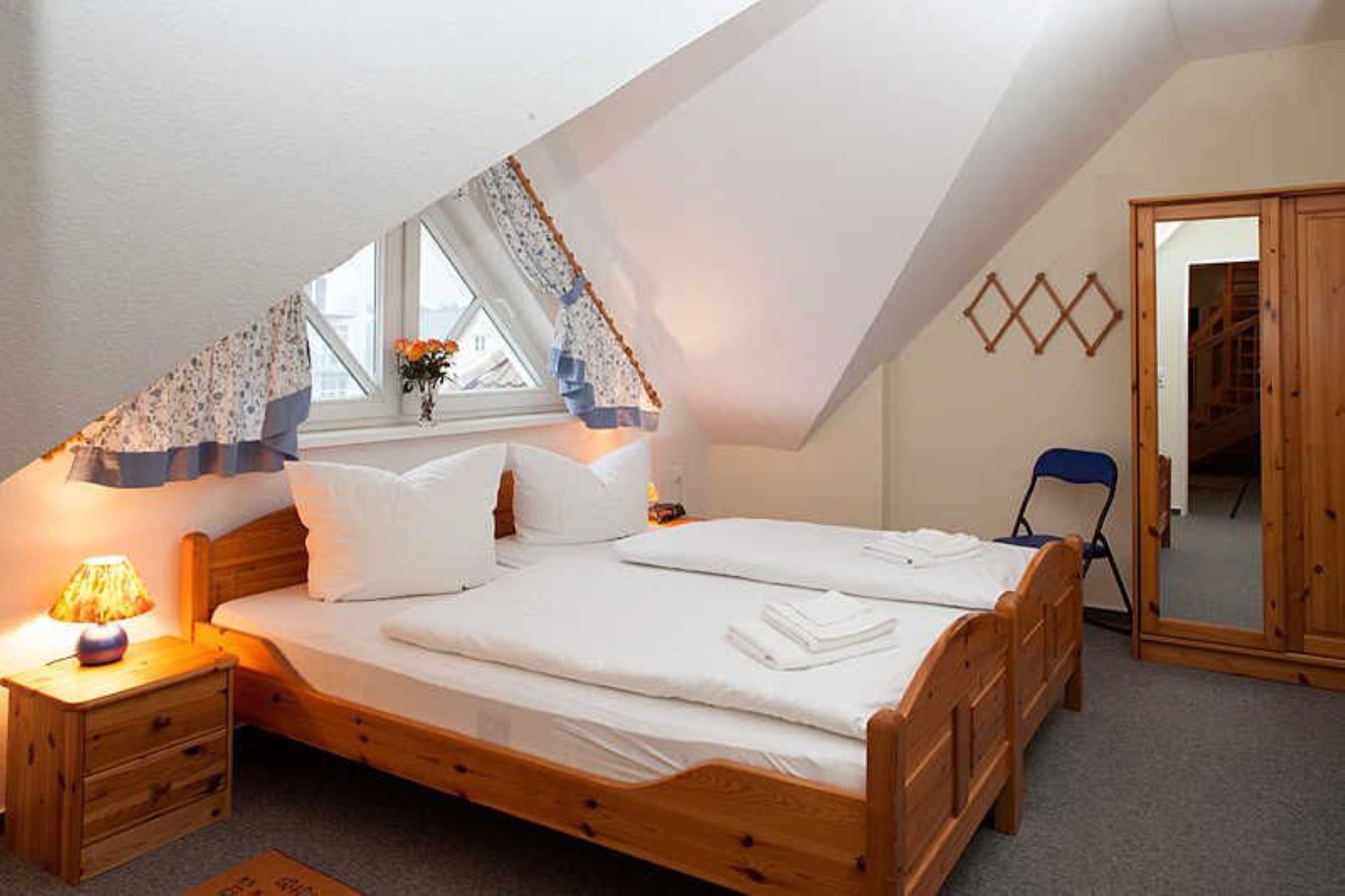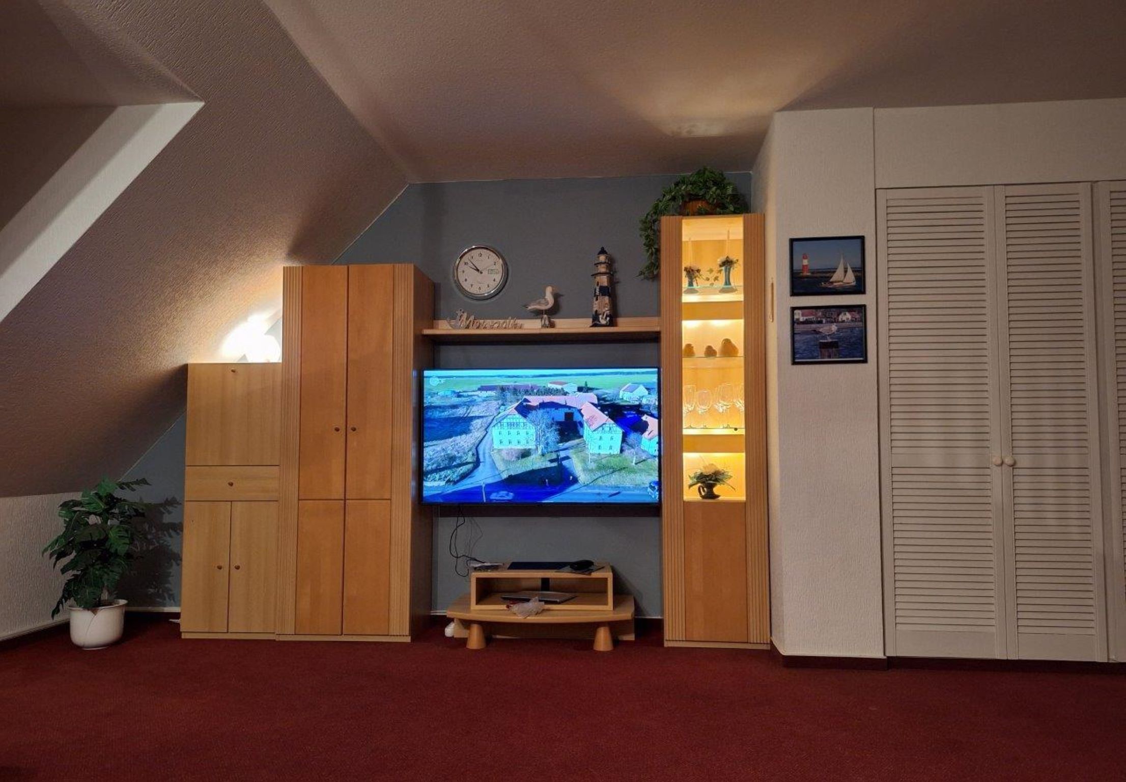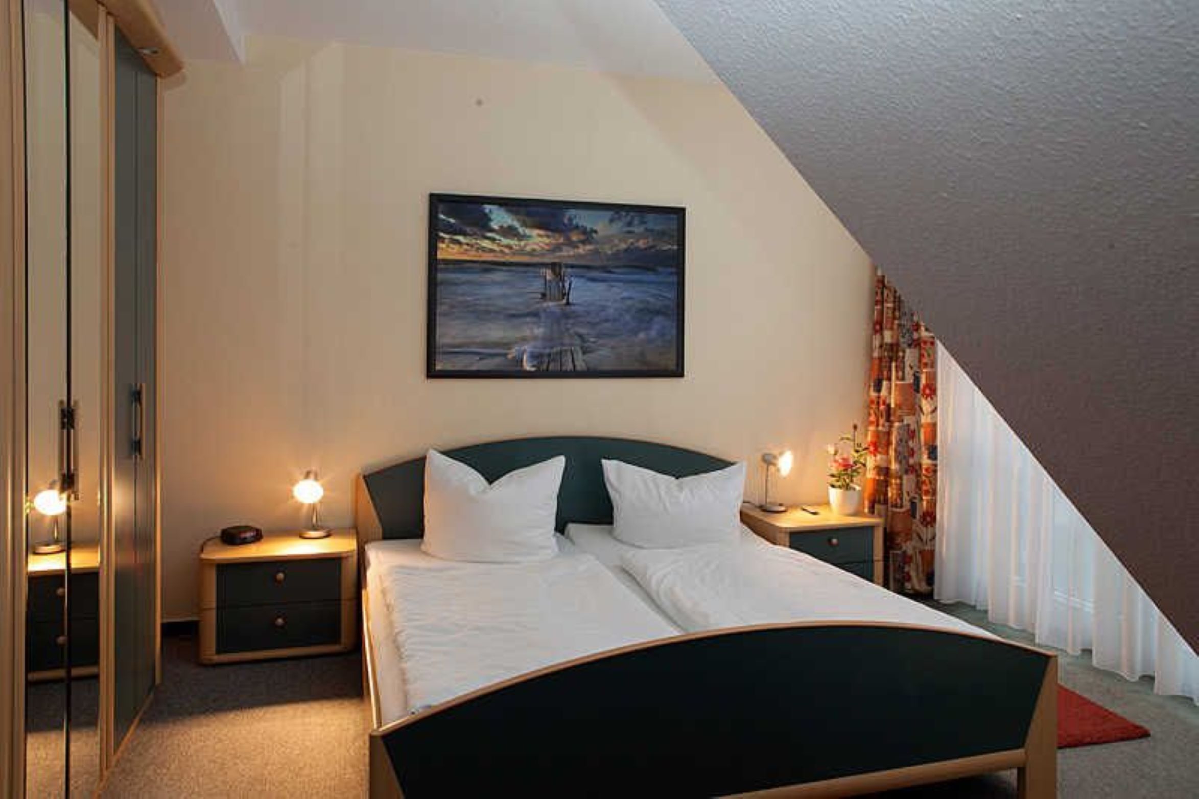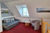 Passwortgeschütztes W-LAN. Der Preis für die Ferienwohnung Wo.36 beinhaltet Wäsche für 2 Personen und Endreinigung. Der zur Wohnung gehörende Parkplatz Nr. 50 steht Ihnen kostenfrei zur Verfügung. Ein Fahrstuhl bringt Sie bequem bis zu Ihrer Ferienwohnung ins 1. Dachgeschoss. Die modern gestaltete Ferienwohnung hat einen großzügigen Wohnbereich, eine abgeschlossene Küche, ein Schlafzimmer mit Doppelbett, ein Gästezimmer mit Doppelbett und Kinderbett. Den Wohnbereich erreichen Sie über eine Treppe in Ihrer Wohnung. Die sehr funktionale Küche ist mit 4-Platten-Kochfeld und Backofen, Kühlschrank mit Gefrierfach, Mikrowelle, Geschirrspüler, Kaffeemaschine und div. Geschirr ausgestattet. Ein Bad mit Badewanne, Waschtisch und WC komplettieren den guten Gesamteindruck der Wohnung.