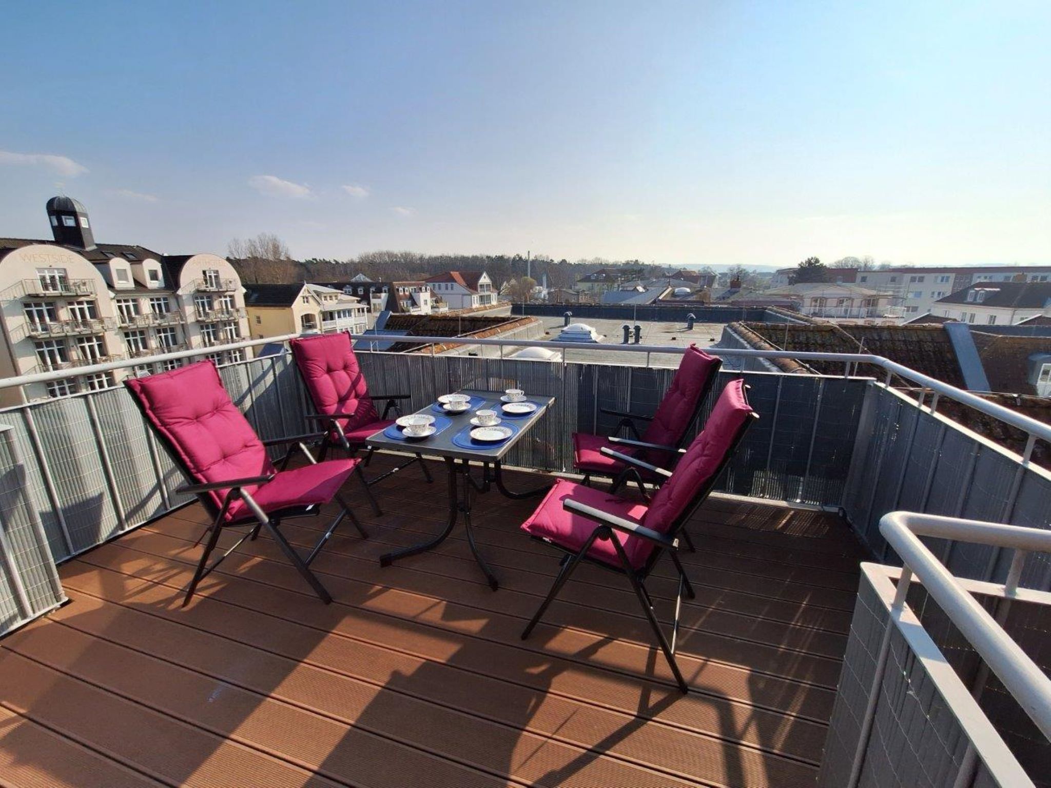 Nur 10 m vom Strand wohnen Sie in einer modern eingerichteten 3-Raum-Ferienwohnung. Die 63 qm große Wohnung liegt in der 3. Etage. Das Wohnzimmer ist mit einer Schlafcouch, Couchtisch, zwei Sessel, Anrichte, Kabel-TV, Radio, Essbereich (Esstisch und 4 Stühle) und Küchenzeile ausgestattet. Vom Balkon hat man einen freien Blick auf die Ostsee. Im Schlafzimmer stehen ein Doppelbett und ein Kleiderschrank und im Gästezimmer zwei Einzelbetten und ein Wäscheschrank. Die Küchenzeile wurde modern ausgestaatet mit Mikrowelle, Kühlschrank, Kaffeemaschine, Herd mit Backofen, Geschirrspüler, Toaster und Wasserkocher. Das Bad mit Dusche/WC und der Flur mit Garderobe komplettieren die Wohnung.