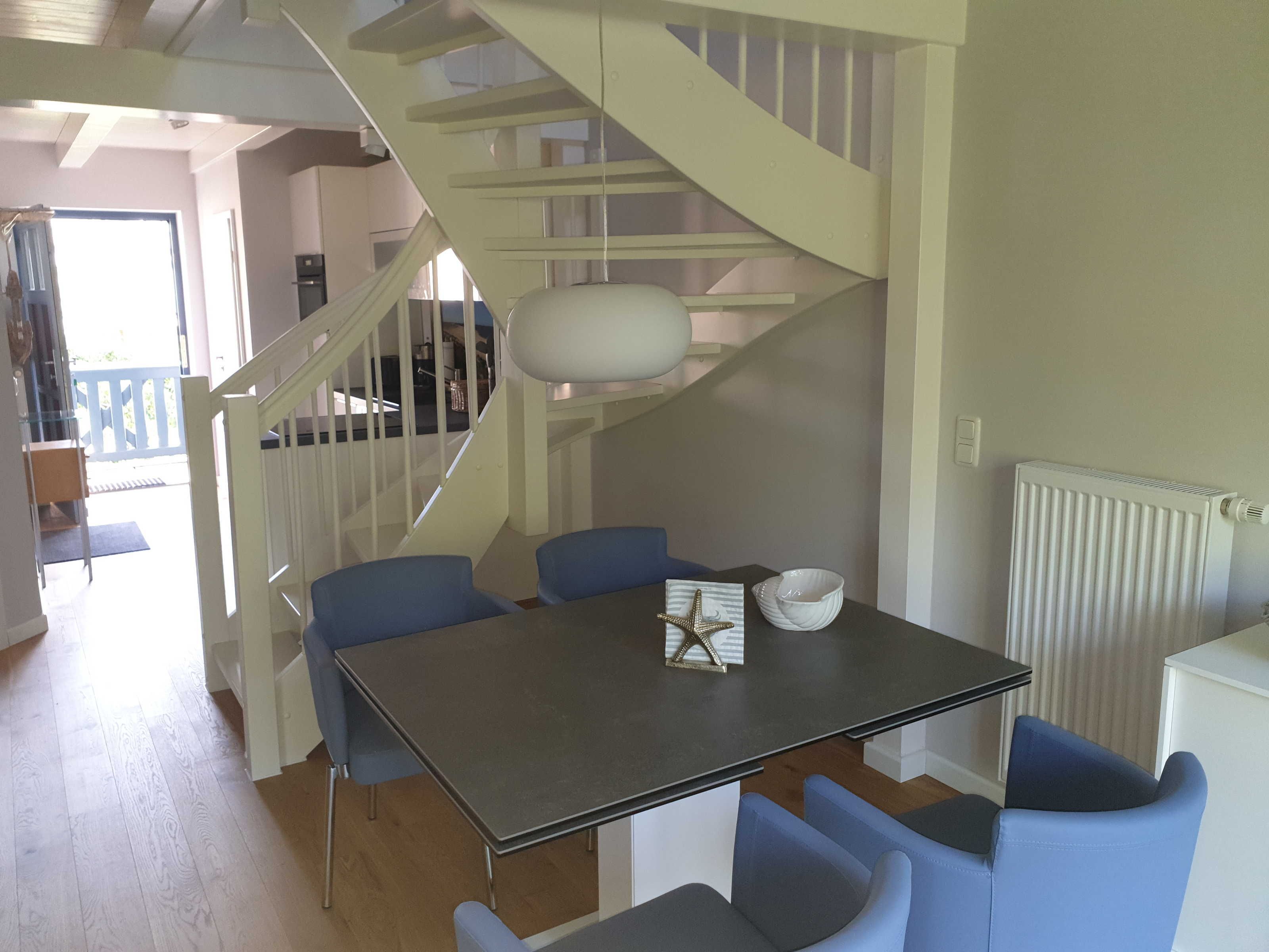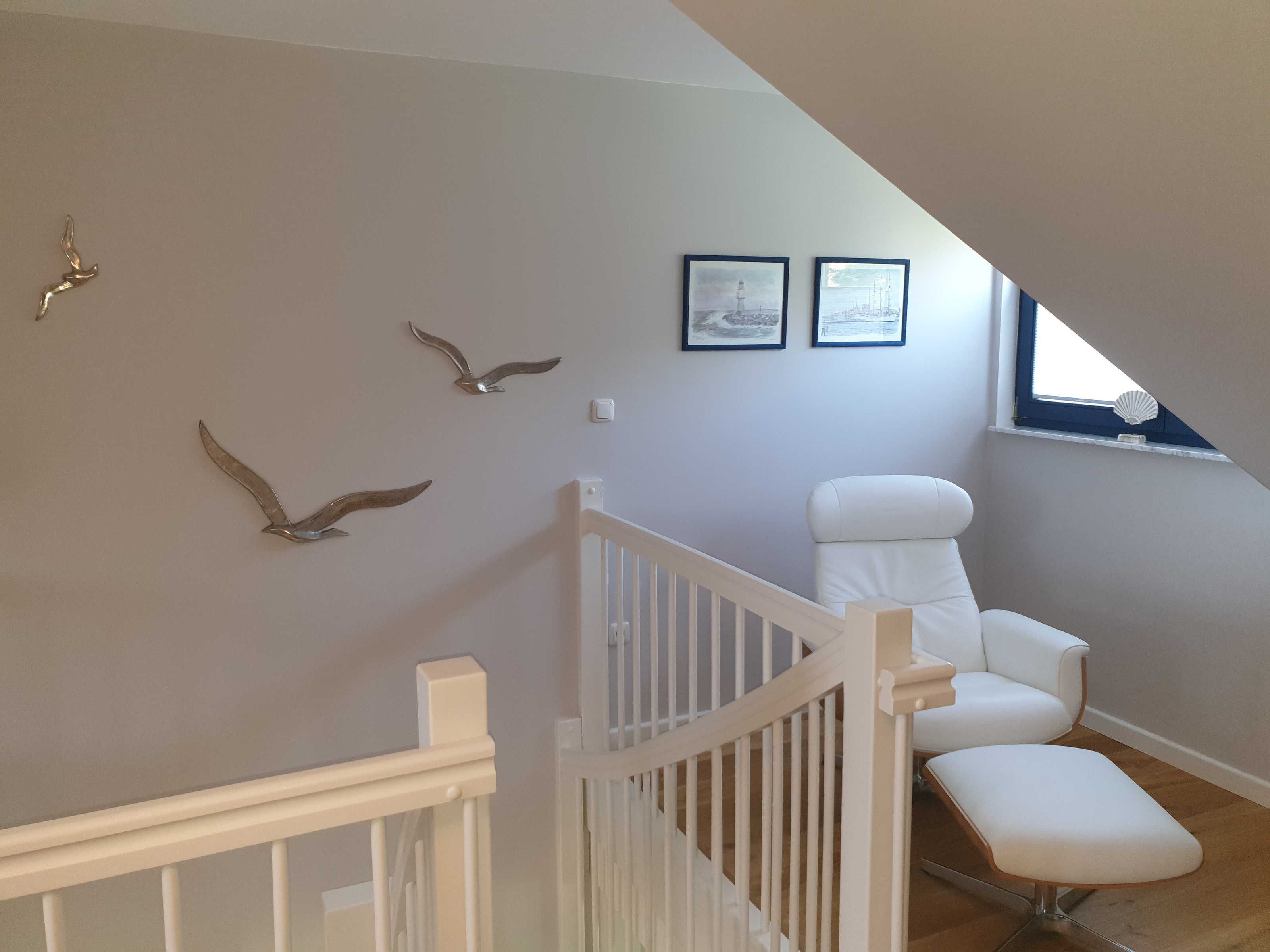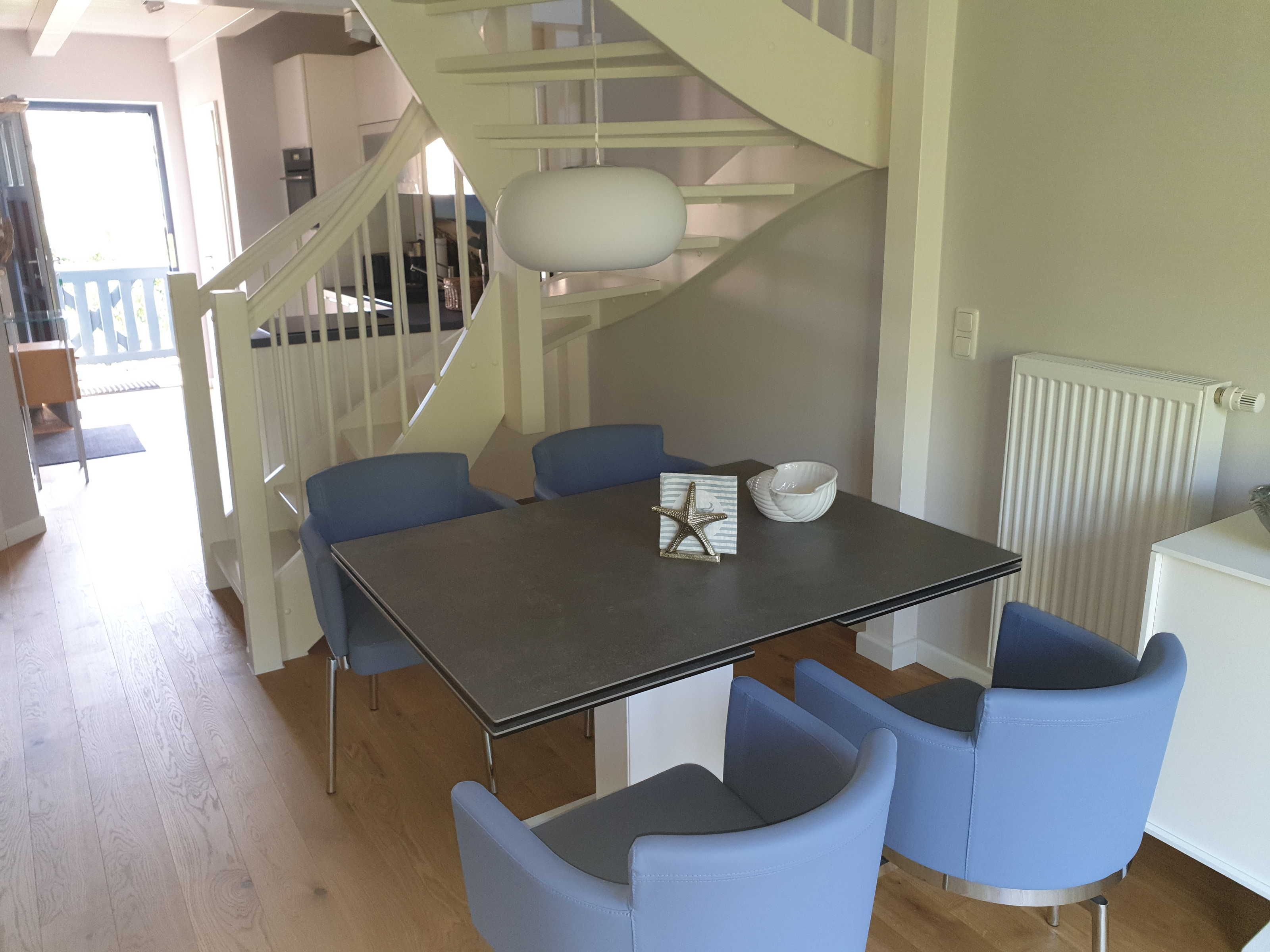 Nur 200 m vom Strand wohnen Sie in einer modern eingerichteten 3-Raum-Ferienwohnung. Die 73 qm große Maisonette-Wohnung liegt in der 1. Etage. Das Wohnzimmer ist mit einer Couch, Couchtisch, Anrichte, Kabel-TV, Radio, Essbereich (Esstisch und 4 Stühle) und Küchenzeile ausgestattet. Die Küchenzeile wurde modern ausgestattet mit Mikrowelle, Kühlschrank, Kaffeemaschine, Vier-Platten-Kochfeld, Geschirrspüler, Toaster und Wasserkocher. Ein Schlafzimmer hat Doppelbett und Kleiderschrank. Im zweiten Schlafzimmer, das Sie über eine Treppe in der Wohnung erreichen, stehen ein Doppelbett, ein Kleiderschrank und eine Sitzecke. Das Bad mit Dusche und WC komplettiert die Wohnung. Der Balkon geht zur Südseite.