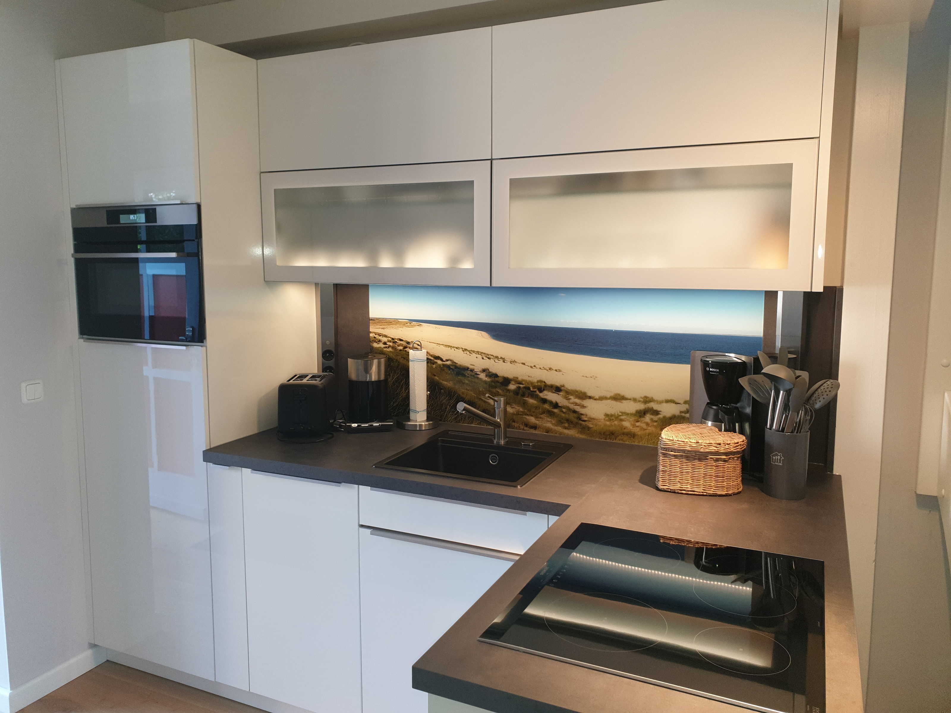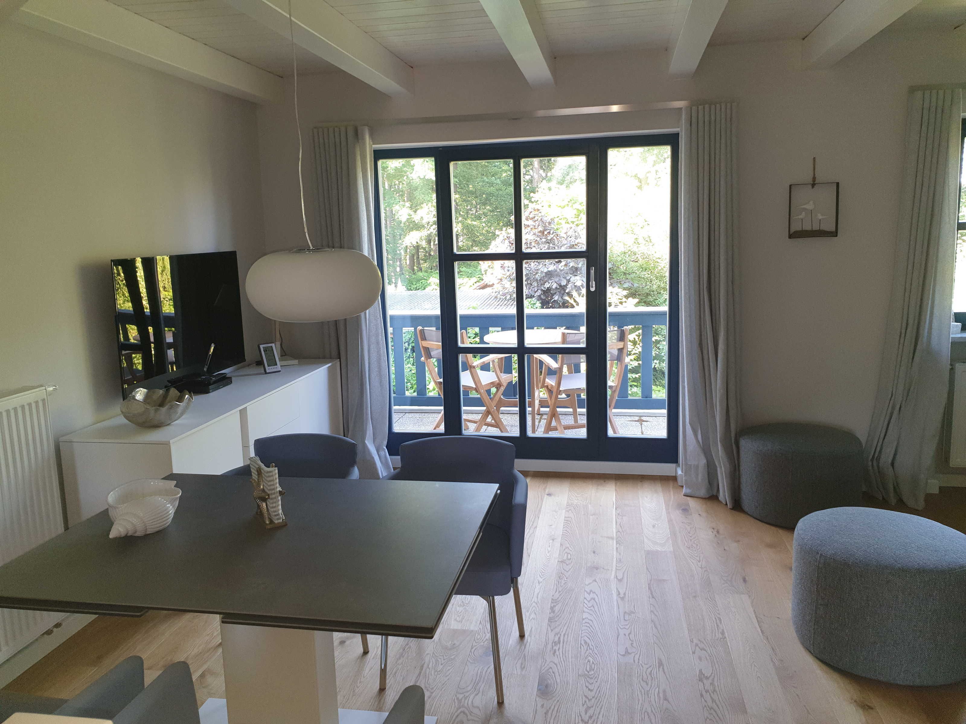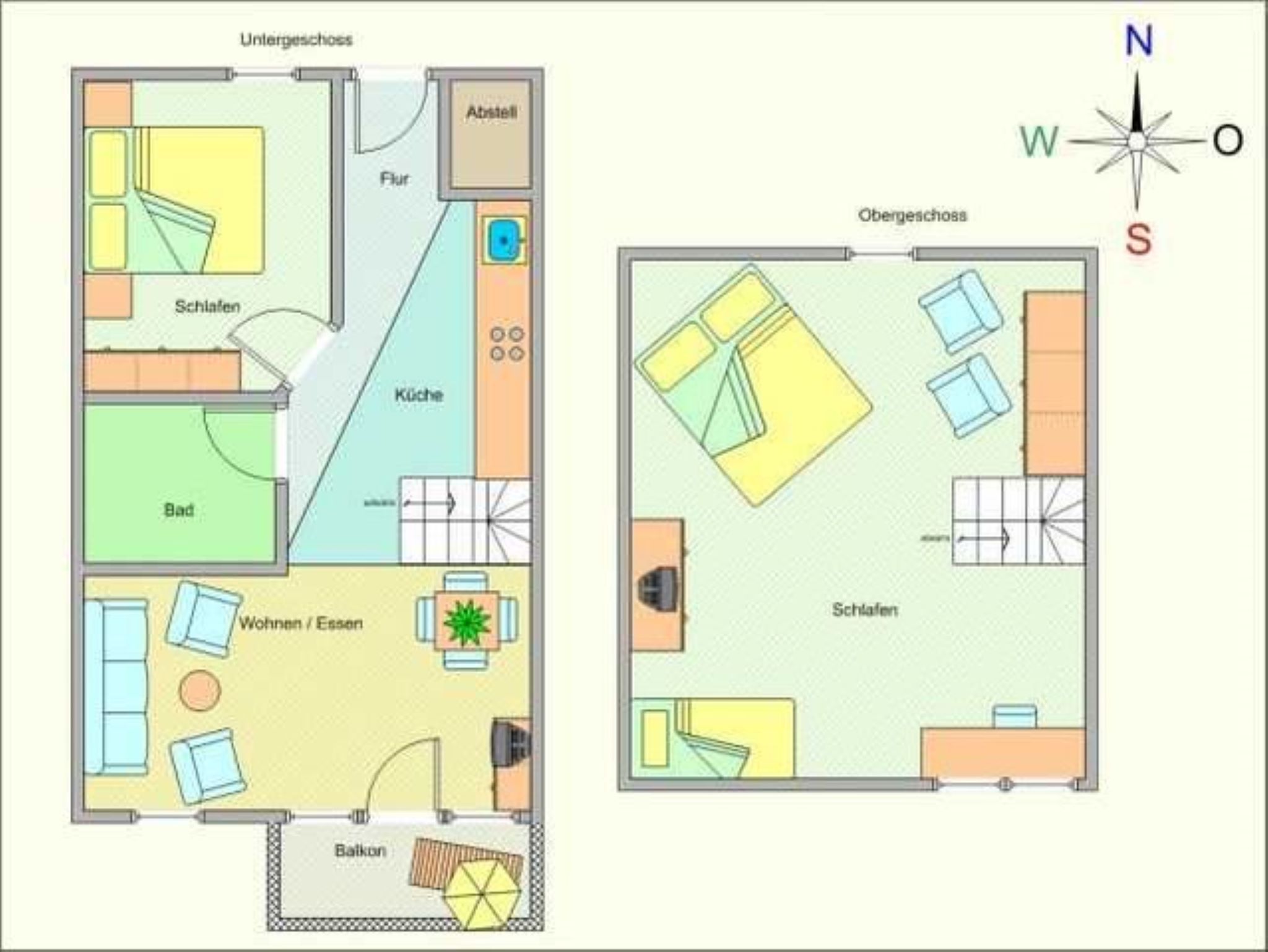 Nur 200 m vom Strand wohnen Sie in einer modern eingerichteten 3-Raum-Ferienwohnung. Die 73 qm große Maisonette-Wohnung liegt in der 1. Etage. Das Wohnzimmer ist mit einer Couch, Couchtisch, Anrichte, Kabel-TV, Radio, Essbereich (Esstisch und 4 Stühle) und Küchenzeile ausgestattet. Die Küchenzeile wurde modern ausgestattet mit Mikrowelle, Kühlschrank, Kaffeemaschine, Vier-Platten-Kochfeld, Geschirrspüler, Toaster und Wasserkocher. Ein Schlafzimmer hat Doppelbett und Kleiderschrank. Im zweiten Schlafzimmer, das Sie über eine Treppe in der Wohnung erreichen, stehen ein Doppelbett, ein Kleiderschrank und eine Sitzecke. Das Bad mit Dusche und WC komplettiert die Wohnung. Der Balkon geht zur Südseite.
