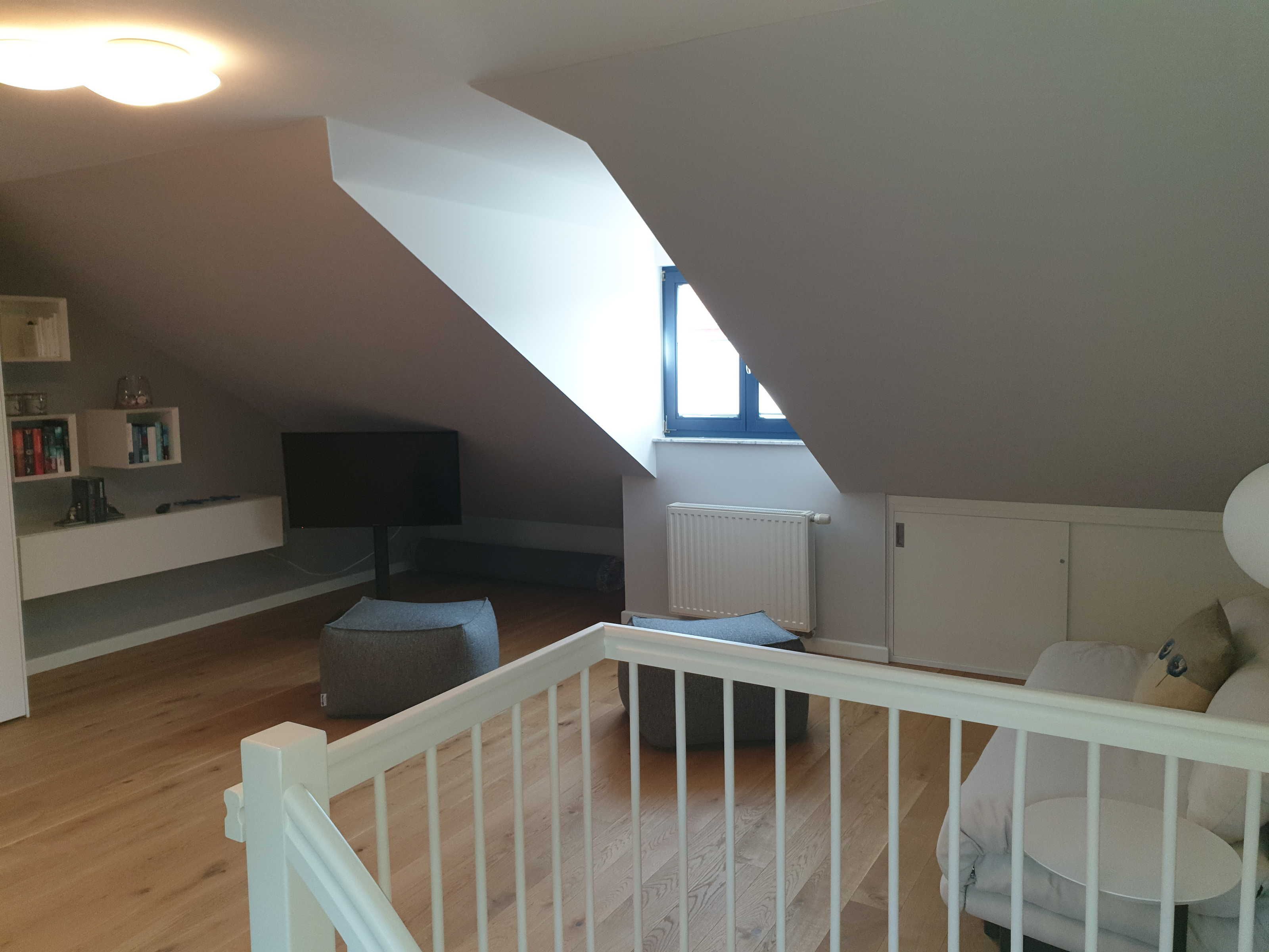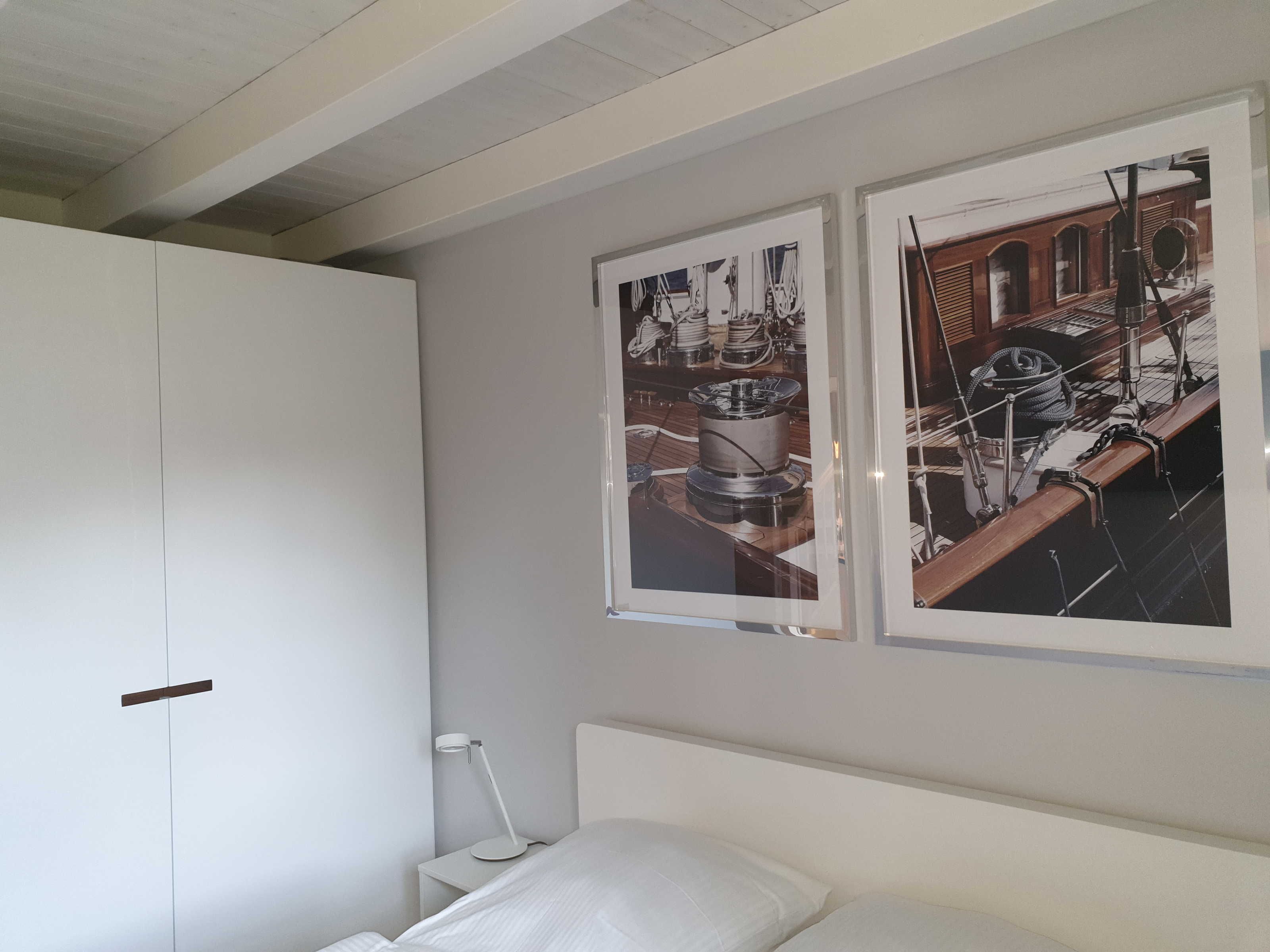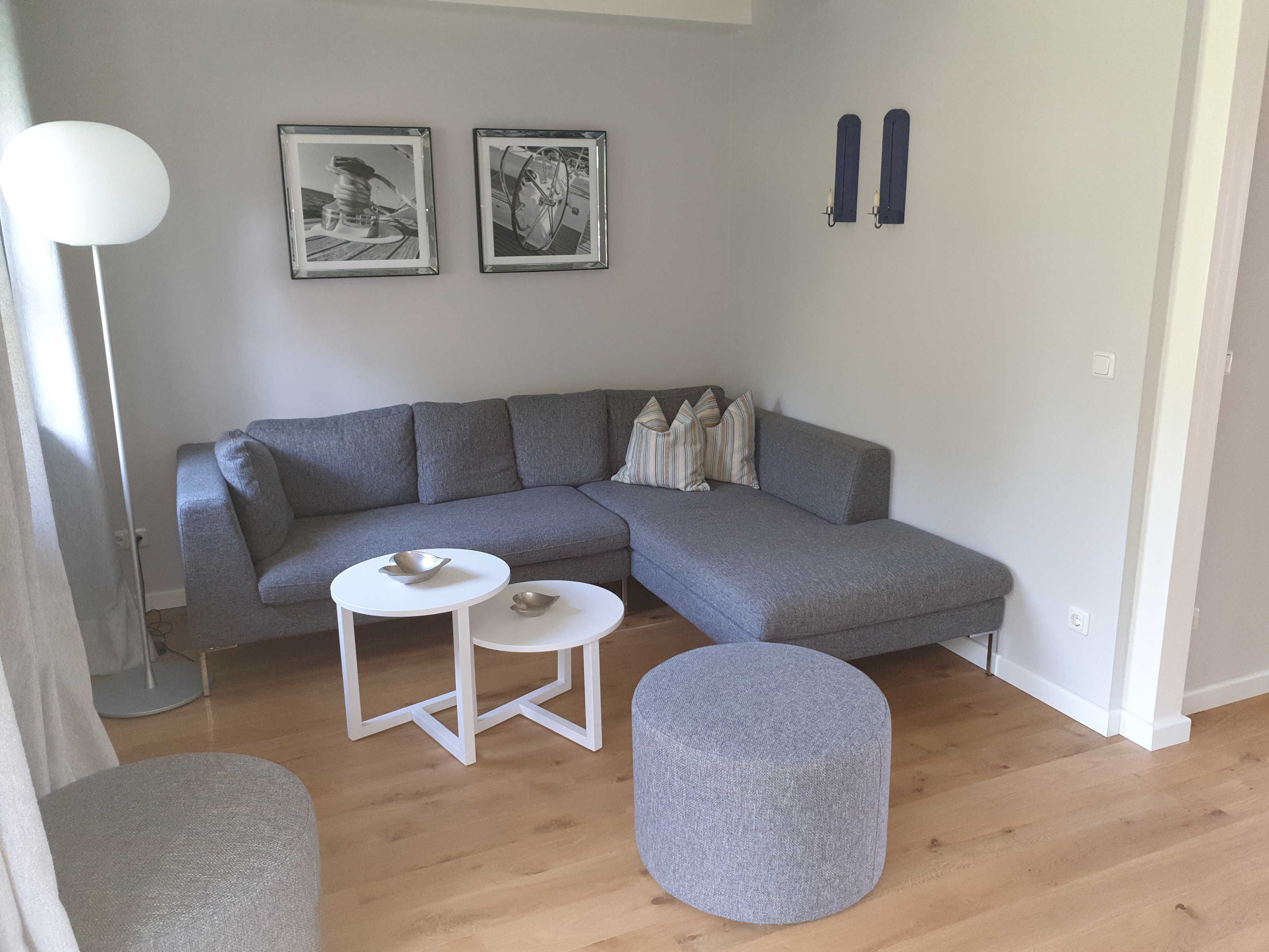 Die ca. 73 qm, neu eingerichtete große Ferienwohnung liegt in der I. Etage, hat neben dem Wohnbereich mit Küchenzeile noch ein Schlaf- und ein Gästezimmer sowie ein Duschbad und einen Balkon zur Ostseite.