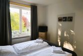 Schlafzimmer mit Doppelbett und Kleiderschrank