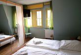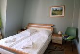 Schlafzimmer mit Doppelbett und Kleiderschrank