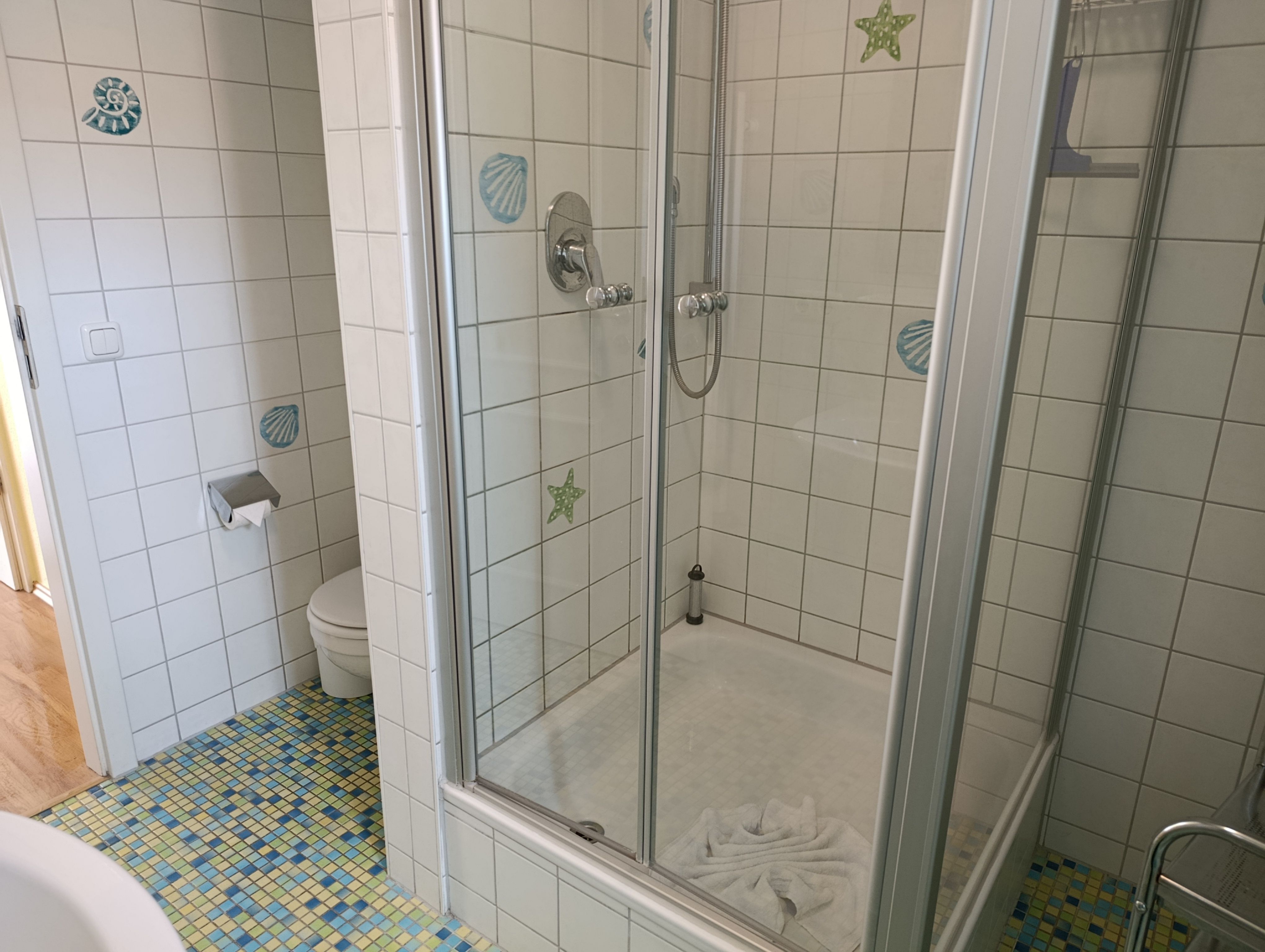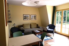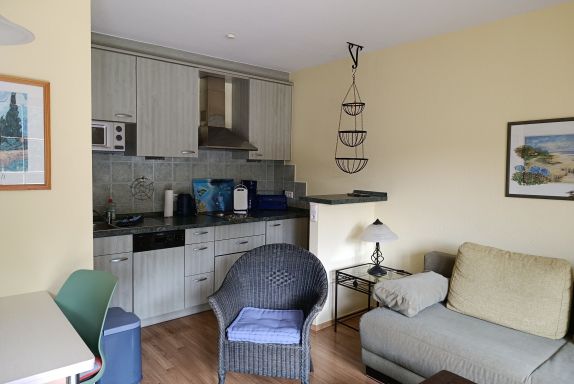 Nur 120 m vom Strand wohnen Sie in einer modern eingerichteten 2-Raum-Ferienwohnung. Die 50 qm große Wohnung liegt in der ersten Etage über der Einkaufspassage. Das Wohnzimmer ist mit einer Schlafcouch, Couchtisch, Anrichte, Regal, Kabel-TV, Radio, Essbereich (Esstisch und 4 Stühle) und Küchenzeile ausgestattet. Vom Ost-Balkon hat man einen wunderbaren Blick auf den Baltic-Park. Im Schlafzimmer stehen ein Doppelbett und ein Kleiderschrank. Die Küchenzeile wurde modern ausgestattet mit Mikrowelle, Kühlschrank, Kaffeemaschine, Zweiplattenkochfeld, Toaster, Geschirrspüler, Wasserkocher und Geschirr. Das Bad mit Dusche und WC komplettiert die Wohnung.