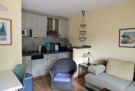 Die Fußgängerpassage Unter den Kolonnaden wurde im Jahr 2001 mit hanseatischen Fassaden neu erbaut und ist geprägt von Restaurants und Boutiquen. Die modern ausgestatteten Ferienwohnungen liegen direkt am Baltic-Park in unmittelbarer Nähe zum Strand (nur 120 m). Für jede Wohnung ist ein Parkplatz vorhanden.Die zu vermietende Ferienwohnung ist eine 2-Zimmer-Wohnung im Westteil des attraktiven Ostseebades Kühlungsborn.