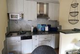 Küchenzeile mit Geschirrspüler, Mikrowelle, Kühlschrank mit Gefrierfach, 2-Platten-Ceran-Feld und Kaffeemaschine