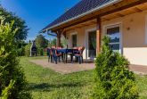 Dieses Ferienhaus ist ideal für Familien mit Kindern, aber auch für zwei oder drei Paare. Im Erdgeschoss befinden sich die Küche und der Wohnbereich mit angrenzendem Schlafzimmer und ein Bad. Das Obergeschoss bietet zwei Schlafzimmer und ein weiteres Bad. Alle Zimmer sind mit Doppelbetten und TV ausgestattet. Vom Wohnzimmer erreichen Sie die großzügige Terrasse und den eigenen Grillplatz. Ein Carport steht für Ihr Auto ebenfalls zur Verfügung. Eigene Fahrräder können unter dem Carport abgestellt oder im HWR-Raum untergestellt werden.