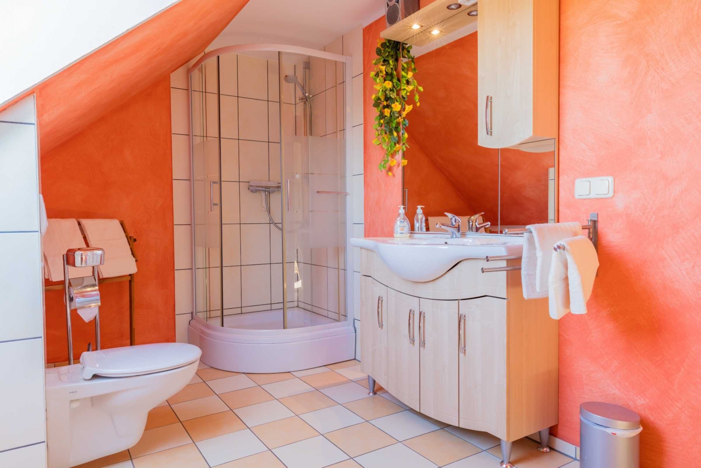 Das Obergeschoss beherbergt zwei weitere Schlafzimmer (Doppelbett) sowie ein weiteres Badezimmer mit Dusche/WC.