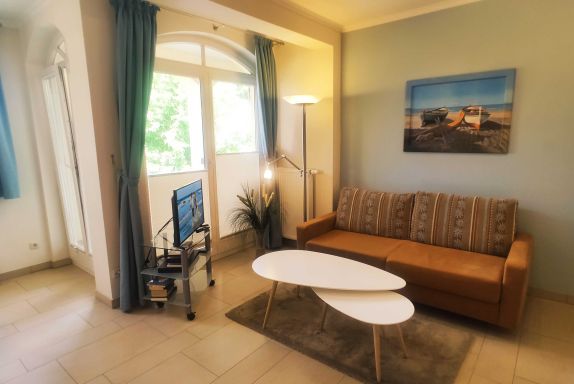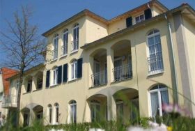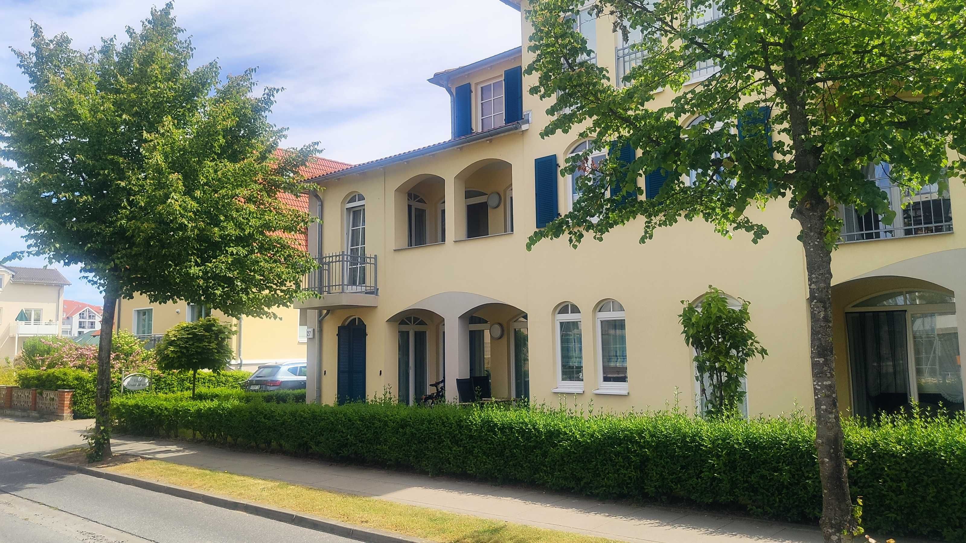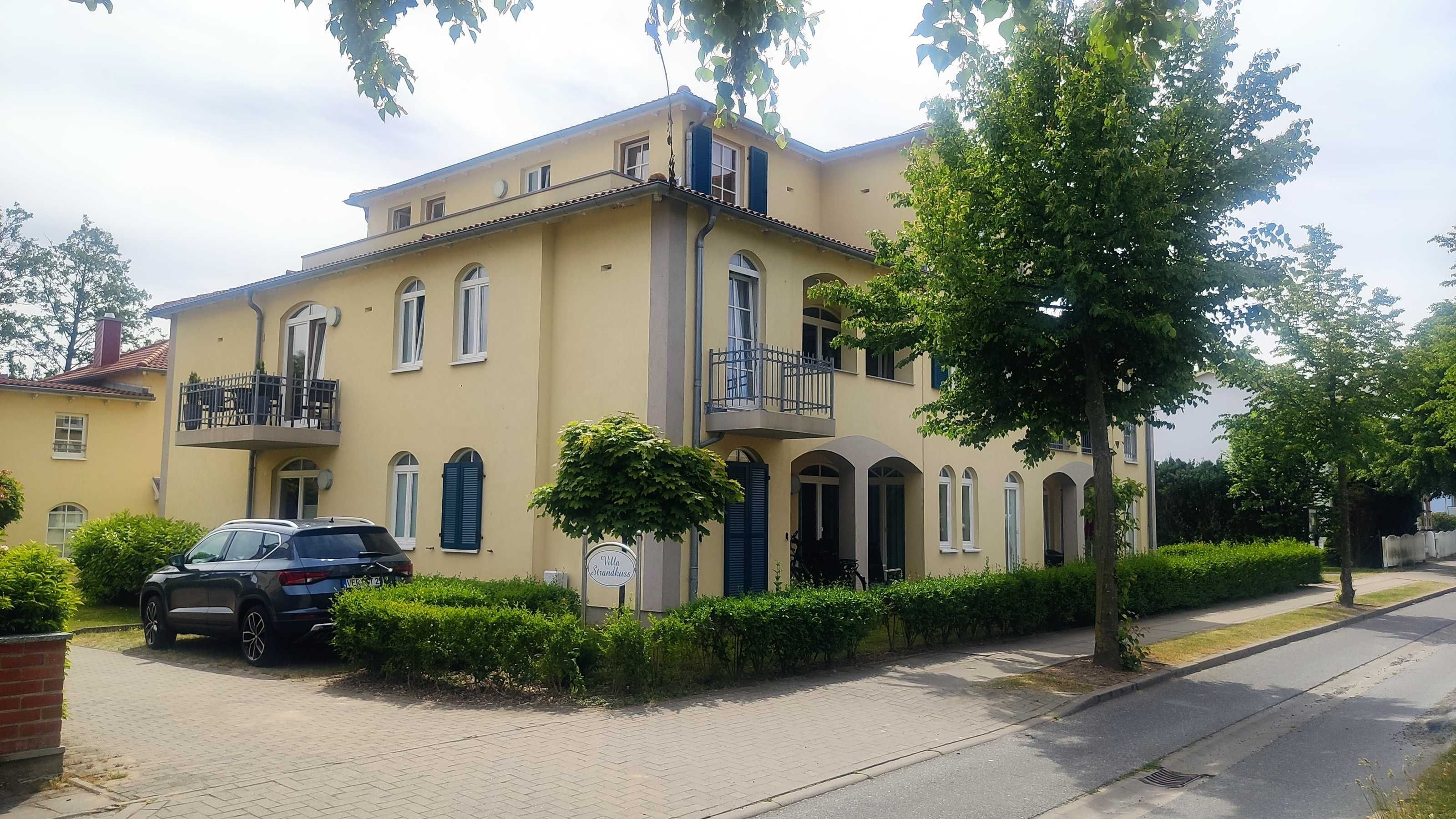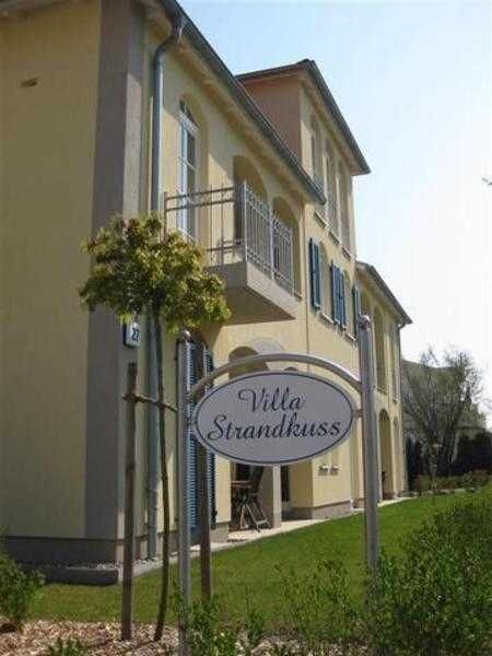 Die Villa Strandkuss befindet sich in einer ruhigen Nebenstraße, nur wenige Meter vom langen weißen Strand gelegen und unweit vom Stadtzentrum West. In dieser einzigartigen Lage wurde erst 2009 insgesamt 13 neue Ferienwohnungen in zwei freistehenden Gebäuden erreichtet, dessen Architektur mit seinen klassisch anmutenden Rundbögen, Terrassen und Farbgebungen ein schönes Beispiel der traditionellen Bäderarchitektur darstellt. Die Wohnungen sind von überzeugender Qualität in Bauweise und Ausstattung.