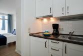 Das modern eingerichtete Appartement Granitz (A) bietet Platz für bis zu 2 Personen. Es hat auf ca. 30 - 34m² neben einem Schlafbereich mit moderner Pantryküche und einem Duschbad sogar einen hübschen Wintergarten, der mit seiner Süd-West- bzw. Süd-Ostausrichtung zu jeder Tageszeit zum Entspannen einlädt. Der WLAN-Zugang und ein SodaStream steht Ihnen kostenfrei zur Verfügung. Nachts können Sie sich im bequemen Doppelbett von ihrem erlebnisreichen Urlaubstag erholen. Von hier können Sie sich auch direkt vom Flachbildfernseher unterhalten lassen. Im Wintergarten kann zusätzlich ein Reisebett (bis zwei Jahre) aufgestellt werden.