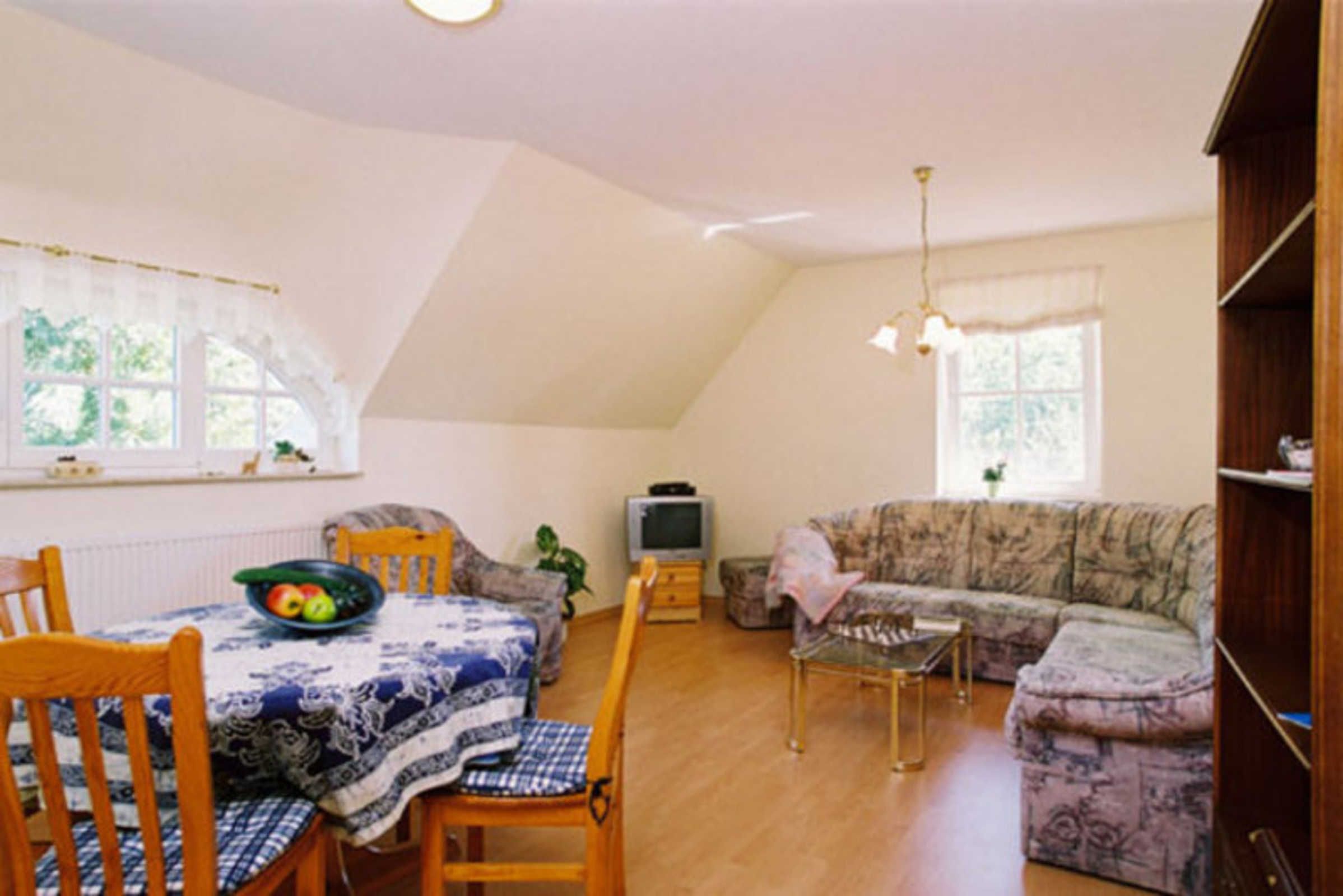 Die Feriemwohnung befindet sich im 1. Obergeschoß und besteht aus einem Wohnzimmer mit einer Sitzgruppe (Schlafplatz für die 3. und 4. Person), dem Esstisch, einer Küche, einem Schlafzimmer mit Doppelbett und dem großen Duschbad. Auf dem weitläufigen Grundstück haben Sie die Möglichkeit die Ruhr der Umgebung so richtig zu genießen. Der Große Jasmunder Bodden, direkt vor der Tür, läd zu romantischen Abenden ein.