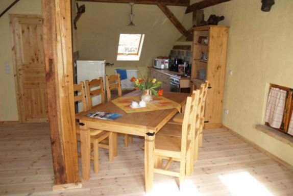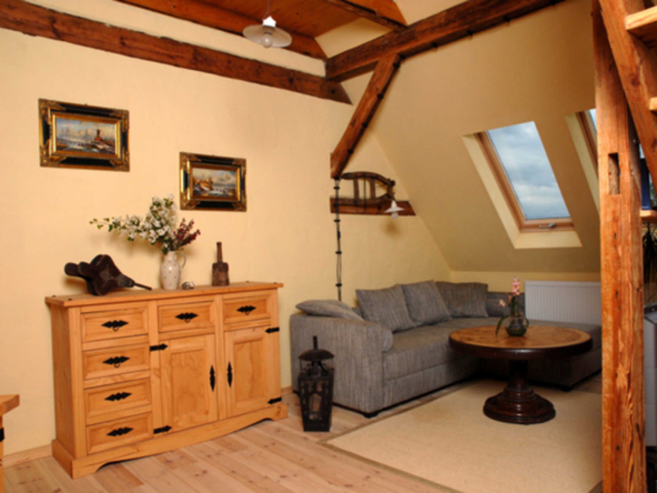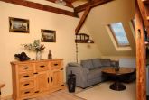 unterteilt zwischen Obergeschoss und Dachgeschoss und für max. 4 Gäste eingerichtet. Holzdielen und Holzbalken geben der Wohnung einen sehr gemütlichen Stil.