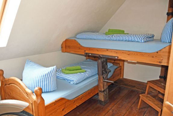 Einzeletagenbetten 80 x 200, ein separates WC mit Fenster, eine separate Duschküche mit 2-