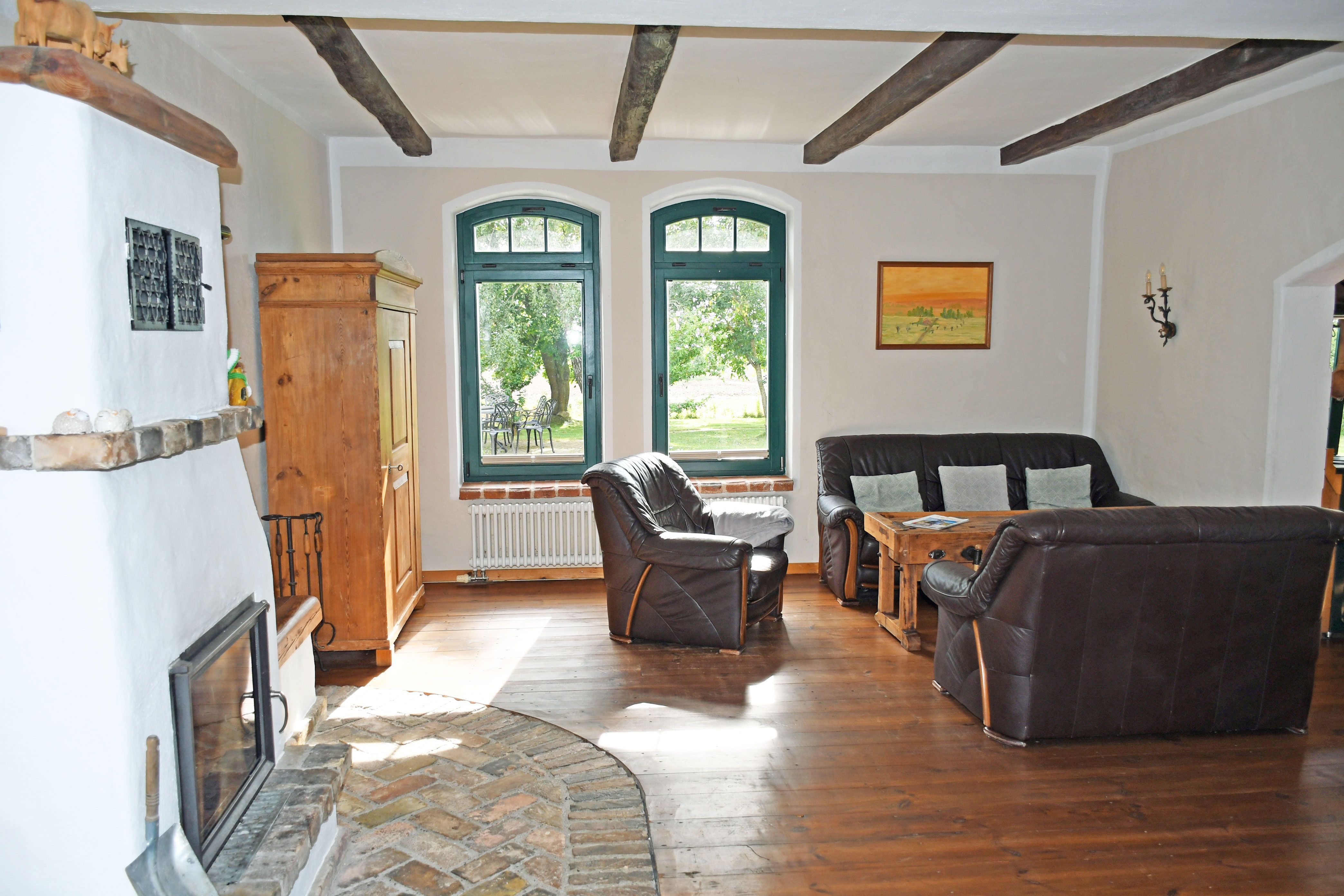 Dort befindet sich der angelegte Kamin mit Sitzmöglichkeiten. Auch dieser Raum ist sehr großflächig
