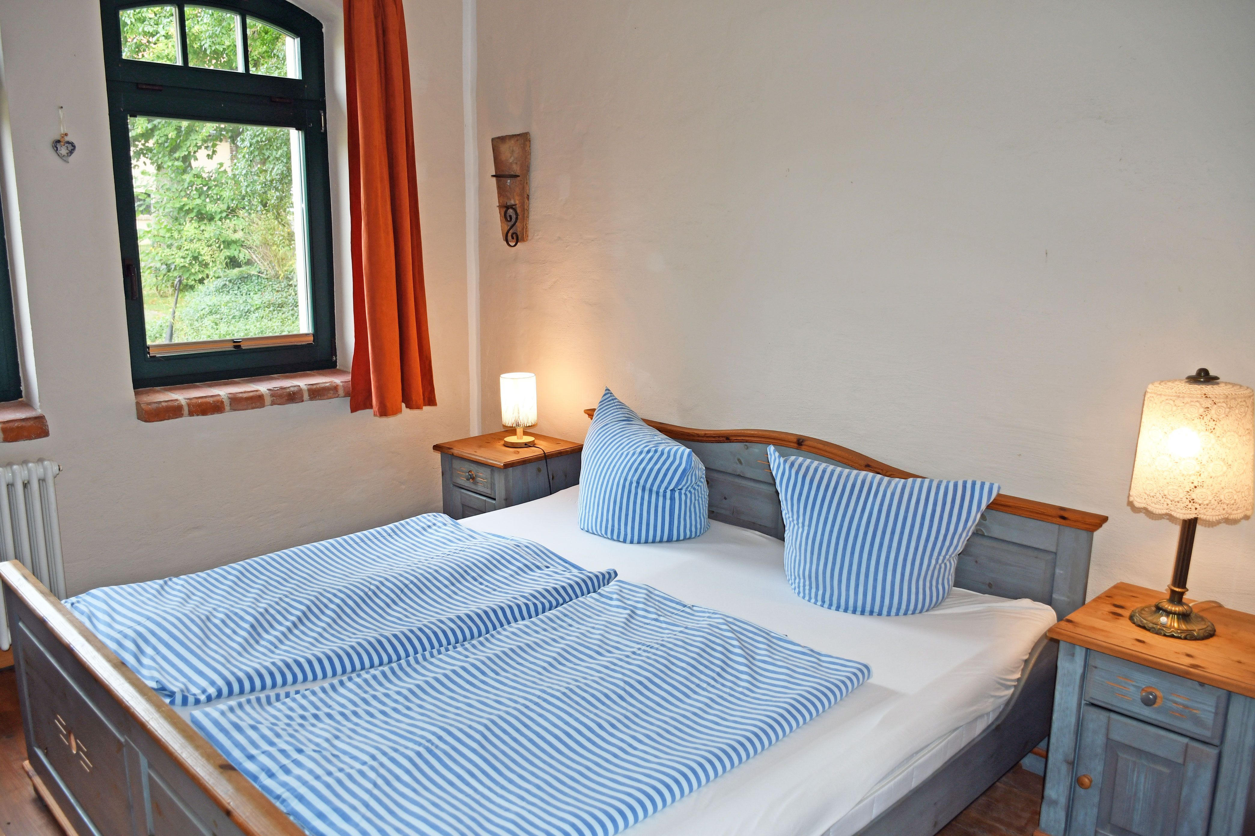 In dem abgeschlossenen Schlafzimmer befindet sich ein bequemes Doppelbett ( 180 x 200 ) mit