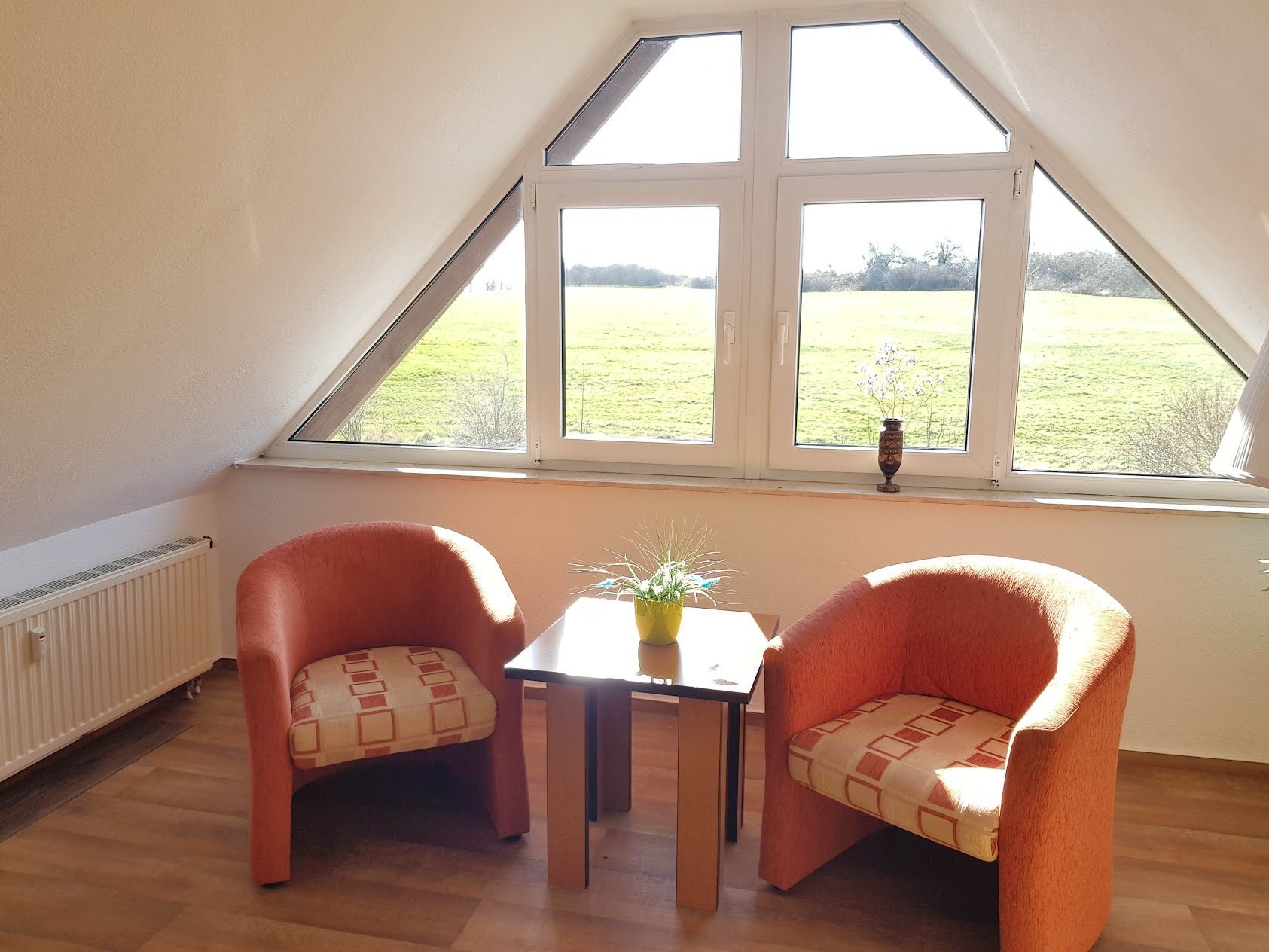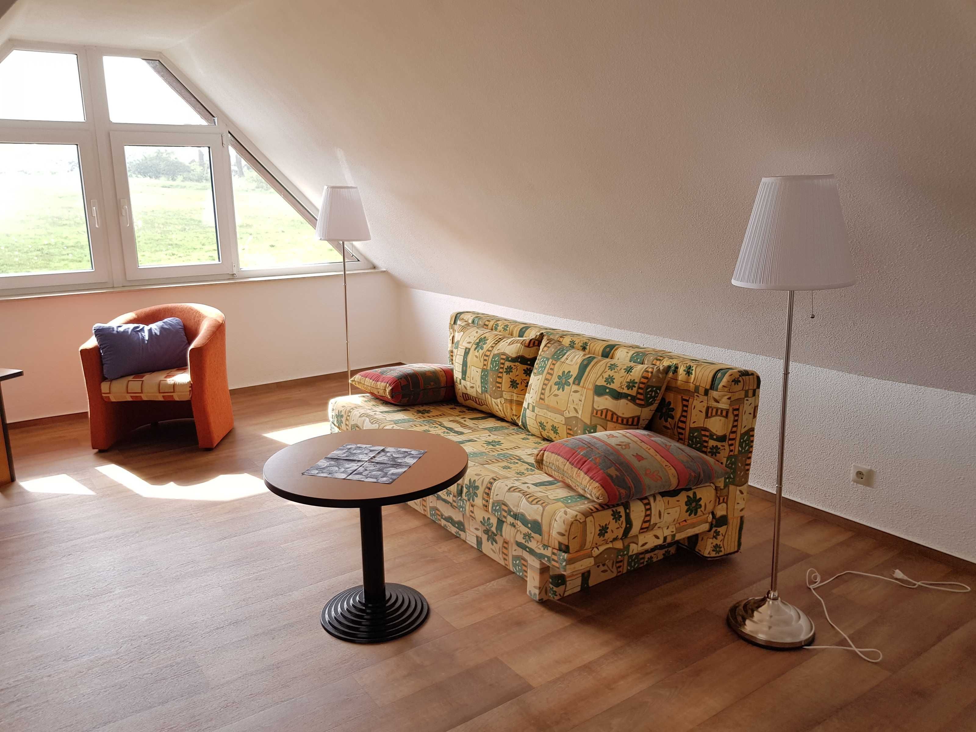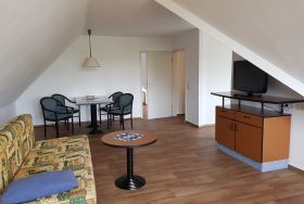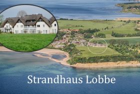 Das Strandhaus Lobbe ist eine reetgedeckte Ferienanlage. Sie liegt idyllisch mit unverbautem Blick auf die schöne Natur der Insel mit ihren typischen landschaftlichen Gegebenheiten. Es sind nur wenige Meter zum Ostseestrand. Das Appartement im 2. Stock ist für 24 Personen ideal geeignet. Die Wohnung besteht aus einem großem Wohnzimmer mit einer Ausziehcouch für zwei Personen, einer Essecke und einer Küchenzeile mit diversen Kleingeräten. Weiterhin verfügt die Wohnung über eine Du/ WC und ein Schlafzimmer mit Doppelbett. Fahrräder können im Kellerbereich abgestellt werden.
