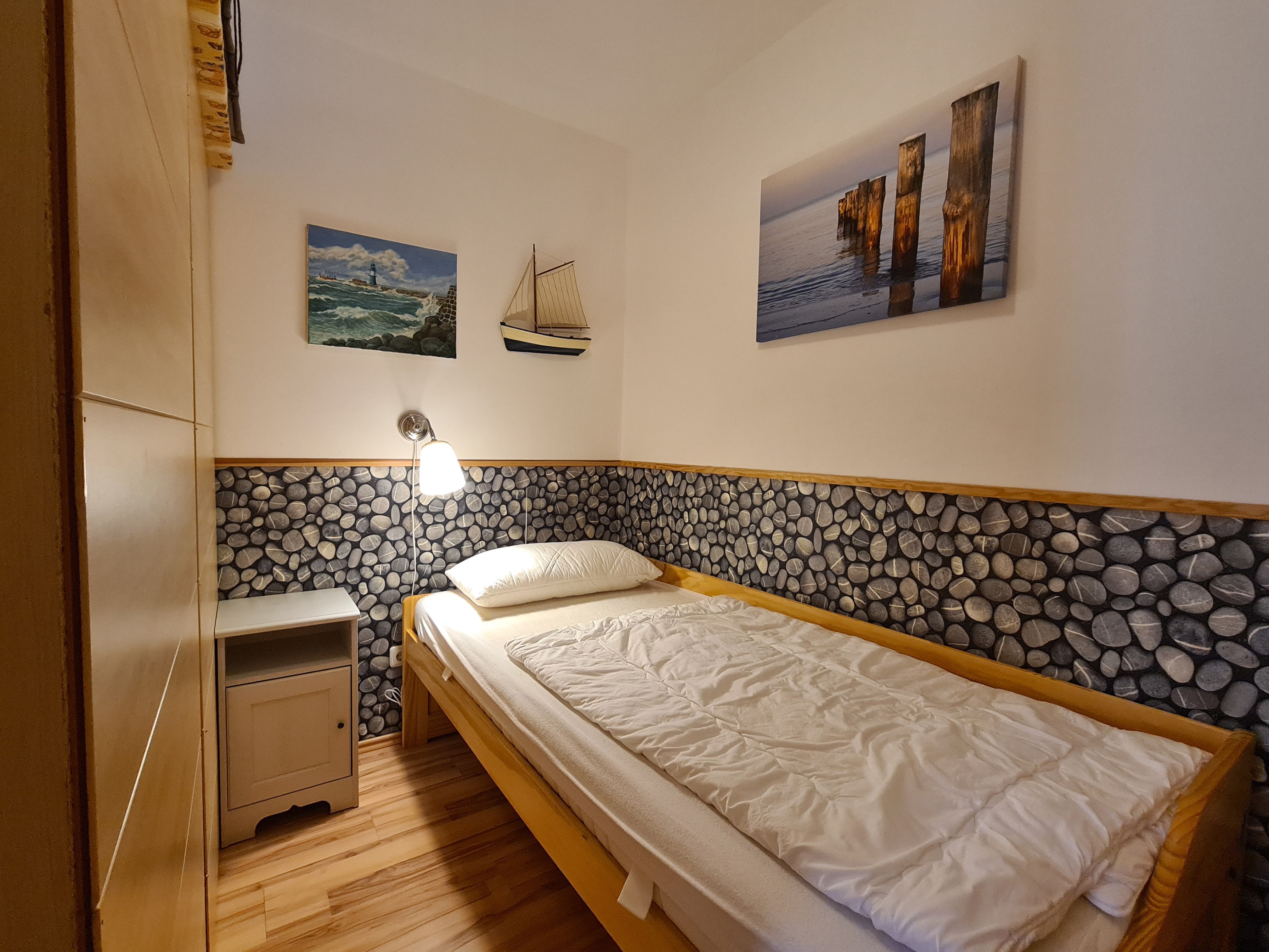 1 Schlafzimmer mit Doppelbett 1.80m x 2m & Einzelbett (0,90 x 2m)