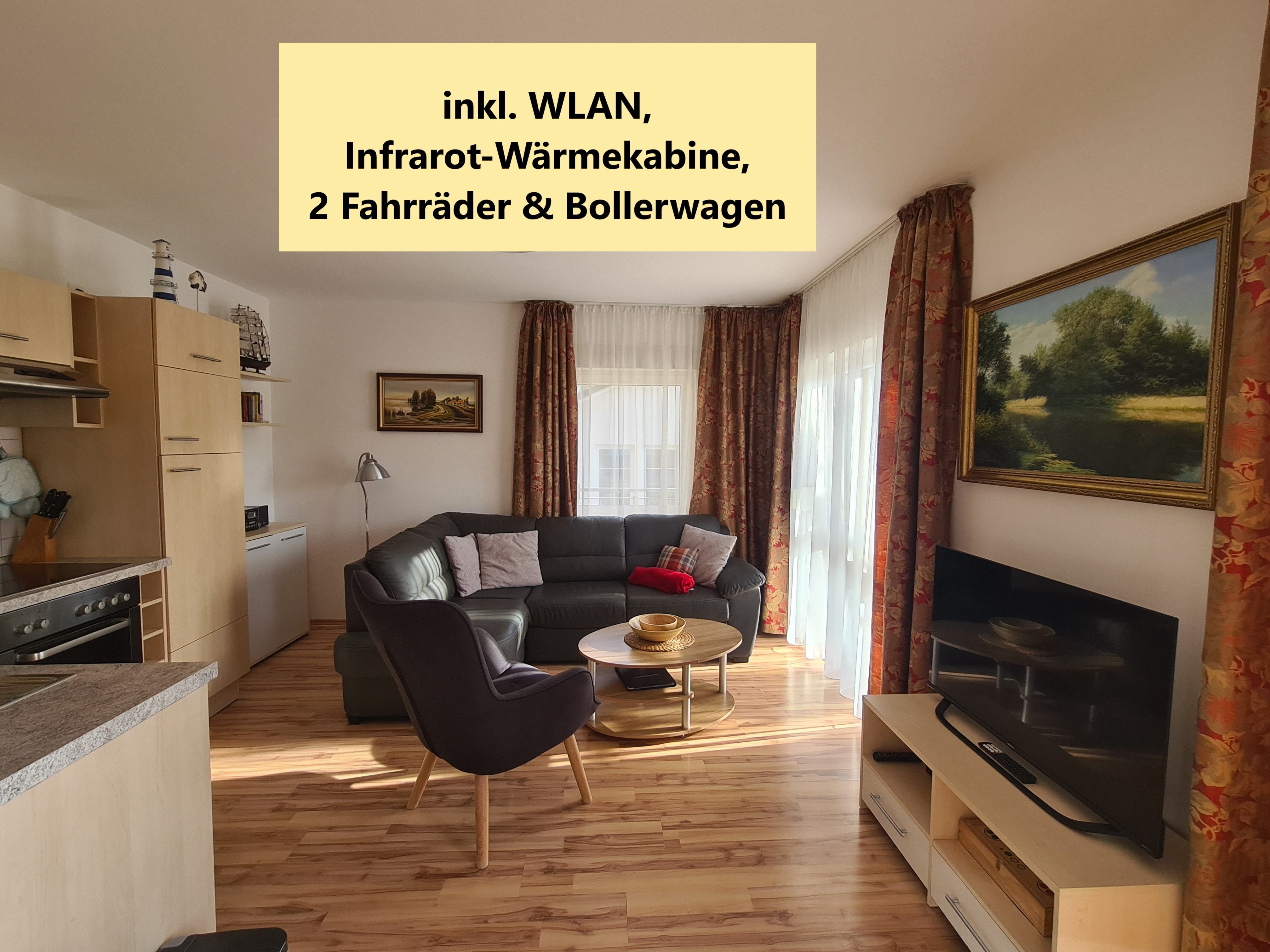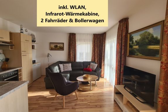 - Es stehen zwei Fahrräder zur kostenlosen Nutzung zur Verfügung. Die Nutzung der Fahrräder erfolgt auf eigene Gefahr.