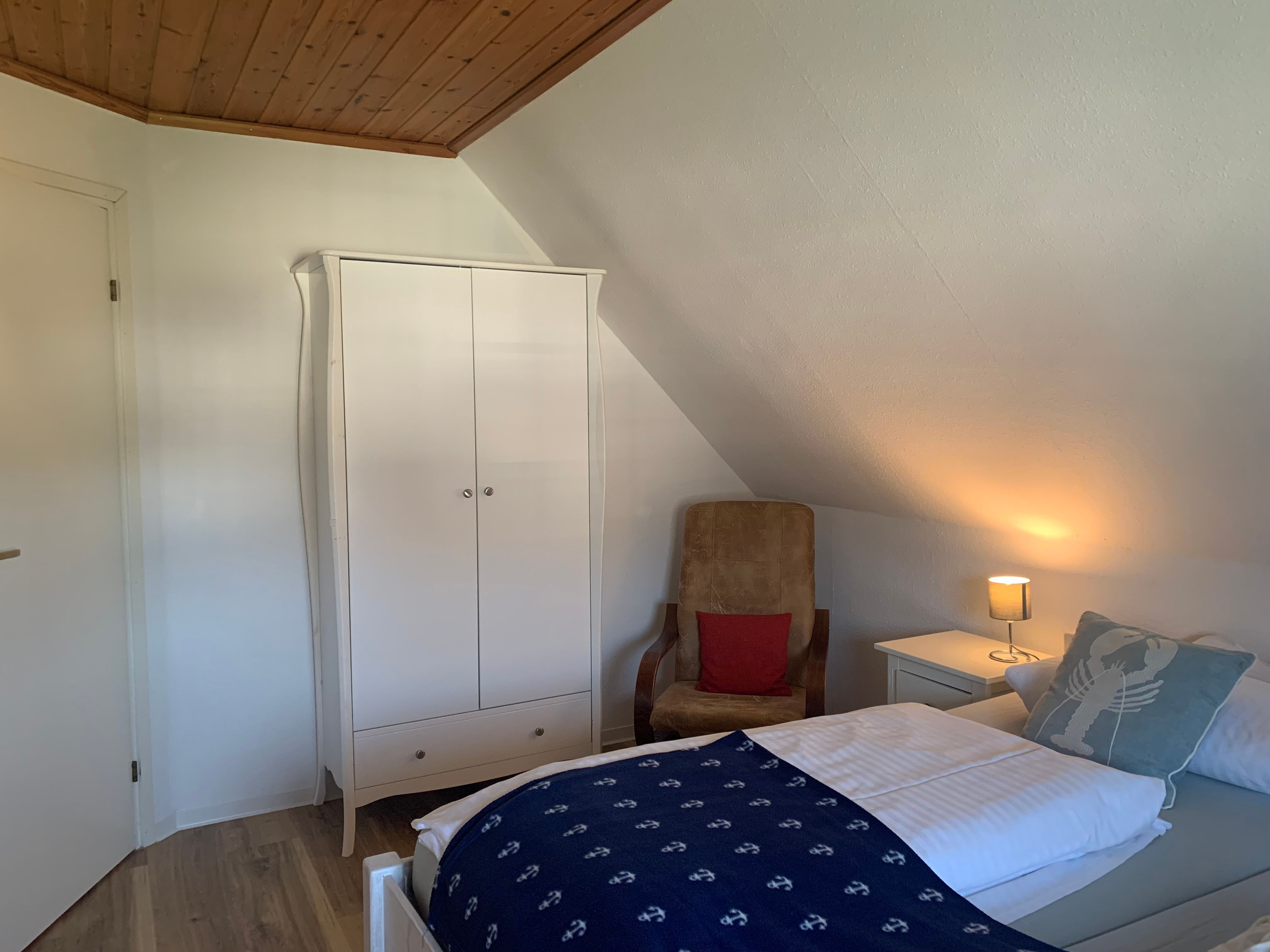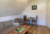 Die Feriemwohnungen befinden sich im Obergeschoß im Haus des Vermieters und sind über eine Innentreppe zu erreichen. Die abgeschlossenen Wohnungen verfügen je über einen Wohnraum mit der Aufbettungsmöglichkeit auf der Schlafcouch, einem Schlafraum mit Doppelbetten, der Küche und dem Duschbad.
