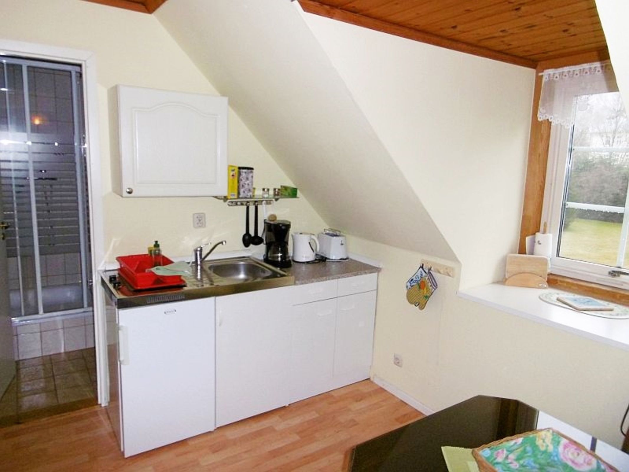 Die Feriemwohnungen befinden sich im Obergeschoß im Haus des Vermieters und sind über eine Innentreppe zu erreichen. Die abgeschlossenen Wohnungen verfügen je über einen Wohnraum mit der Aufbettungsmöglichkeit auf der Schlafcouch, einem Schlafraum mit Doppelbetten, der Küche und dem Duschbad.