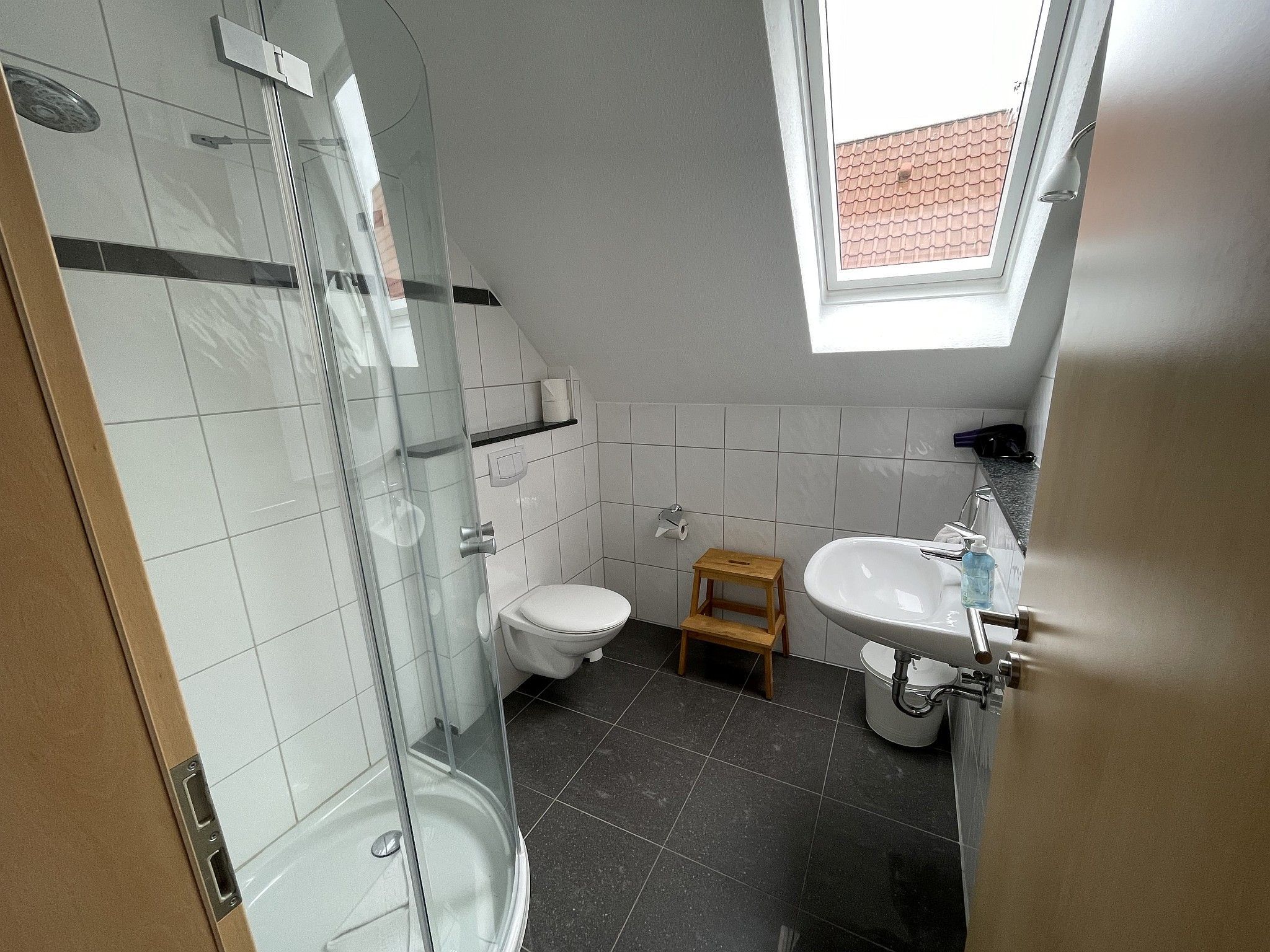Die Suite liegt separat in einem Gebäude zu welchem vier Einheiten gehören. Zur Suite gehört ein abschliessbarer Holzschuppen für Fahrräder, Kinderwagen, u. a..