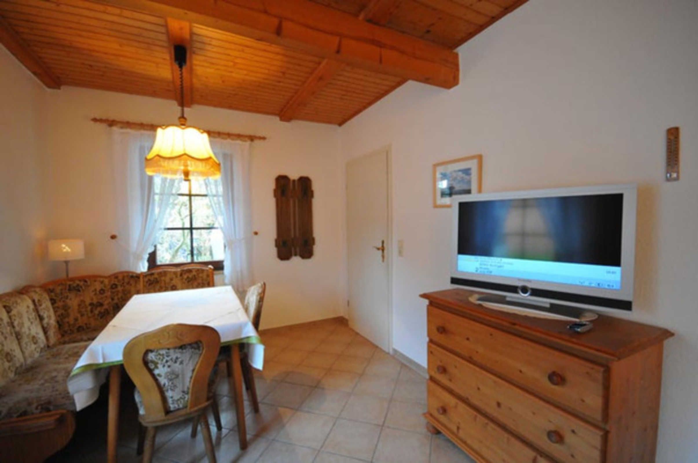 Die Ferienwohnung befindet sich im Erdgeschoß und besteht aus einem Wohnraum mit Sitzgruppe und TV sowie einem Schlafraum mit einem Doppelbett und einem Schlafraum mit Doppelstockbett. Die Ferienwohnung verfügt zudem über ein Duschbad und eine moderne Einbauküche. Auf dem großen Grundstück steht Ihnen eine Liege und Spielwiese sowie ein Grillplatz zur Verfügung.