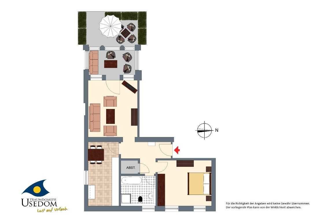 Diese wunderschöne Wohnung im Landhausstil mit Terrasse befindet sich im Erdgeschoss des Hauses - hier können bis zu vier Personen Ihre Ferientage auf Usedom genießen.