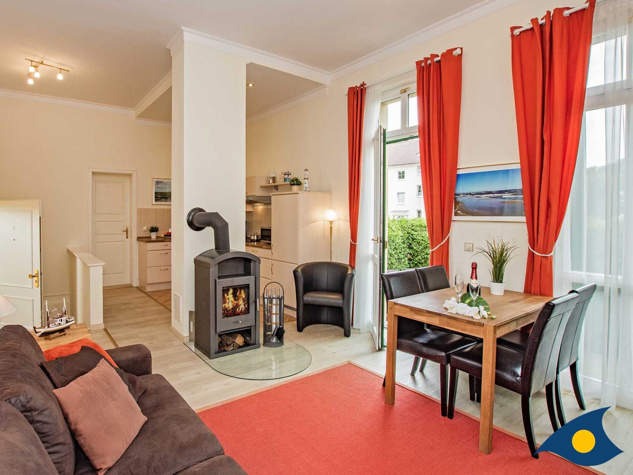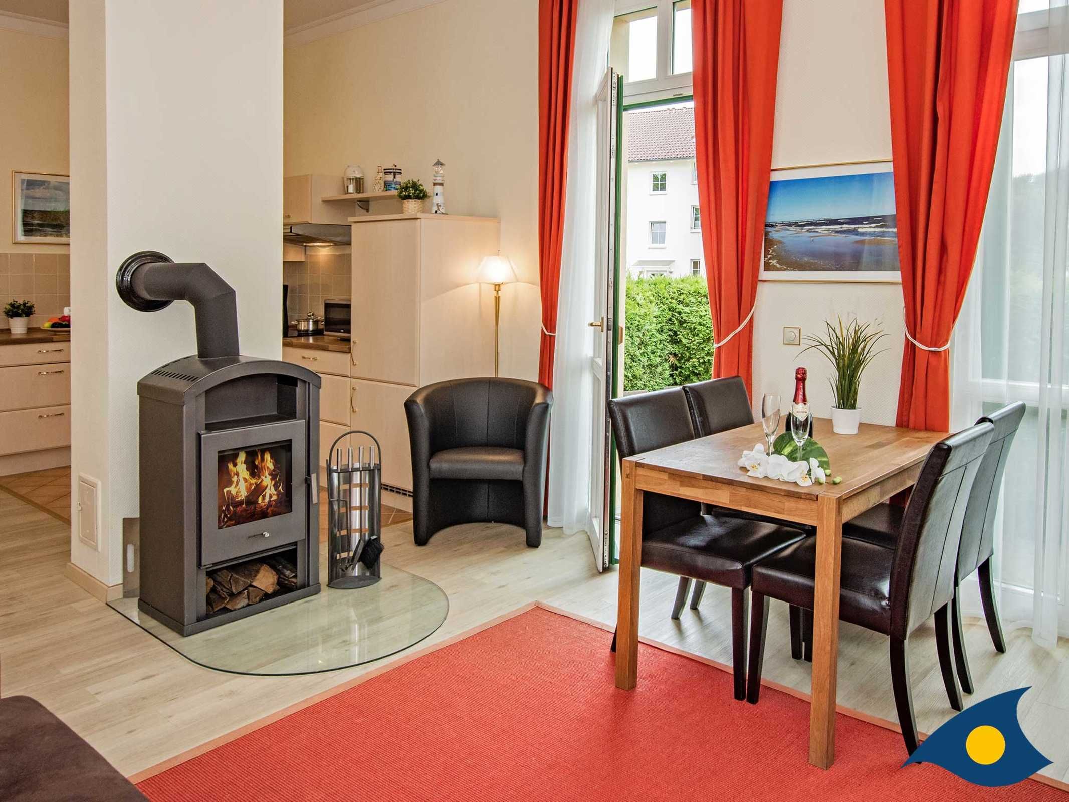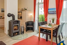 Auch an die kühlere Jahreszeit wurde gedacht, hier sorgt zusätzlich zur normalen Zentralheizung ein Kaminofen im Wohnzimmer für eine behagliche und romantische Atmosphäre in Ihrem Traumurlaub.