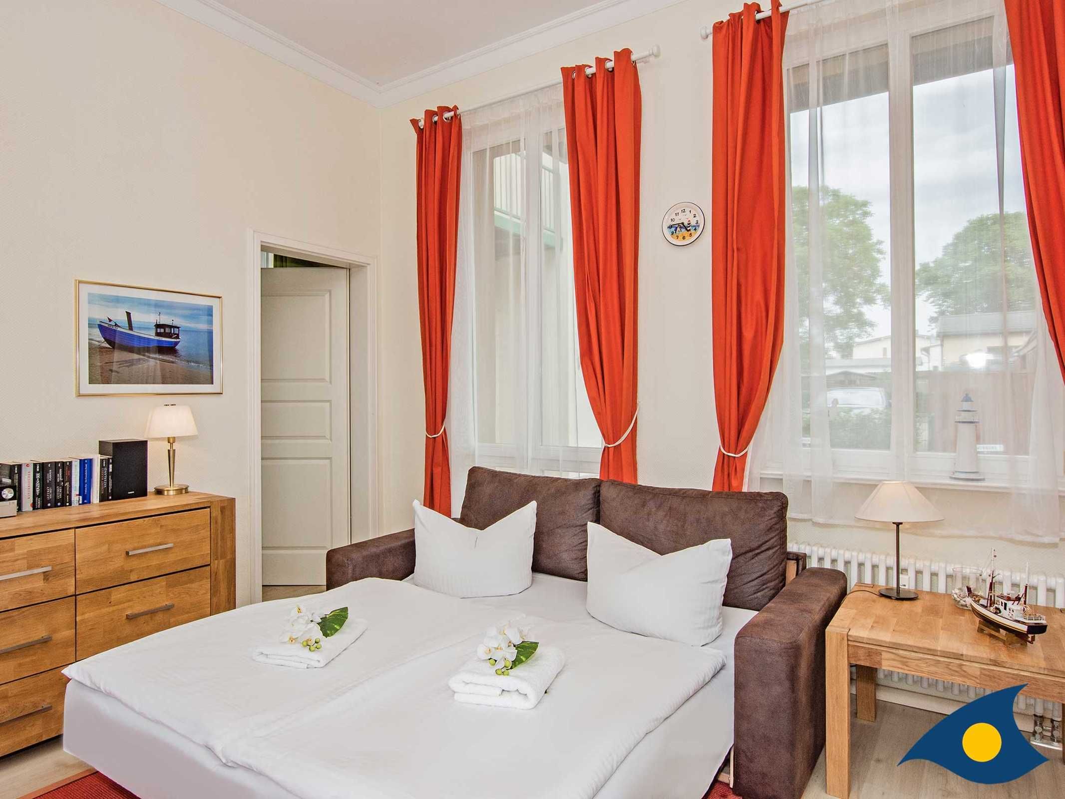Die hochwertige Schlafcouch (Dauerschläfer, Liegefläche ca. 1,65 m x 2,00 m) im Wohnzimmer kann auf Wunsch für 12 weitere Personen aufgebettet werden, auch der Essplatz bietet Platz für 4 Personen, sodass dem Familienurlaub nichts mehr im Wege steht.