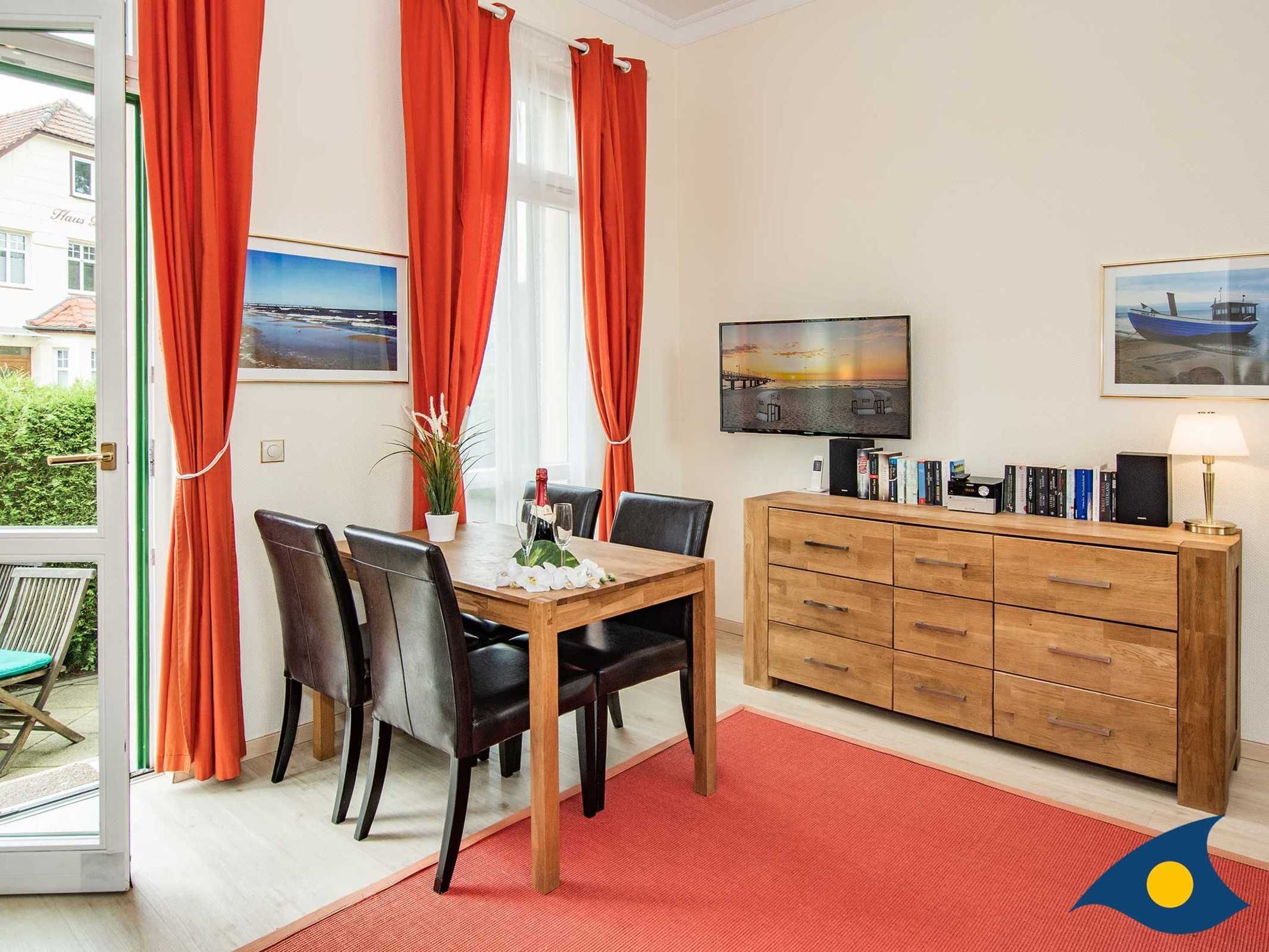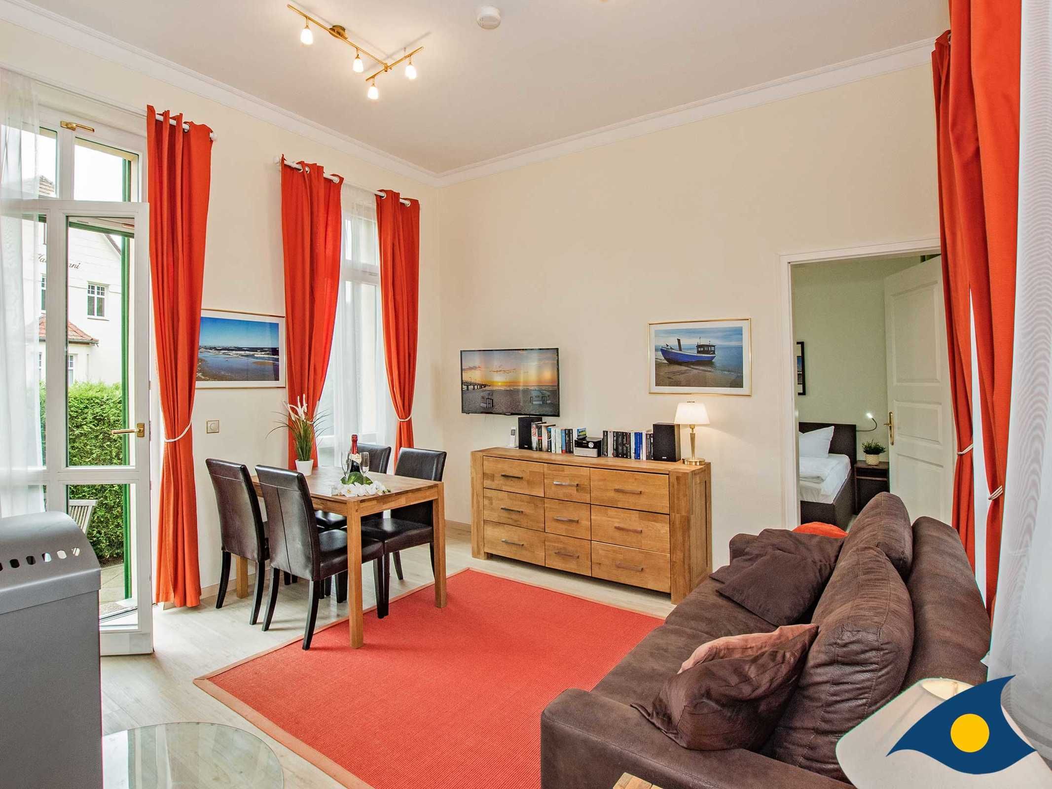 Die großzügige und gepflegte, für bis zu 4 Personen geeignete, sonnige 2-Zimmer-Wohnung mit eigener Terrasse befindet sich im EG/Hochparterre einer ca. 2003 hochwertig sanierten Villa. In schöner und ruhiger Wohnlage des beliebten Seebades Bansin, fußläufig ca. 34 min von der Promenade bzw. vom Strand entfernt.