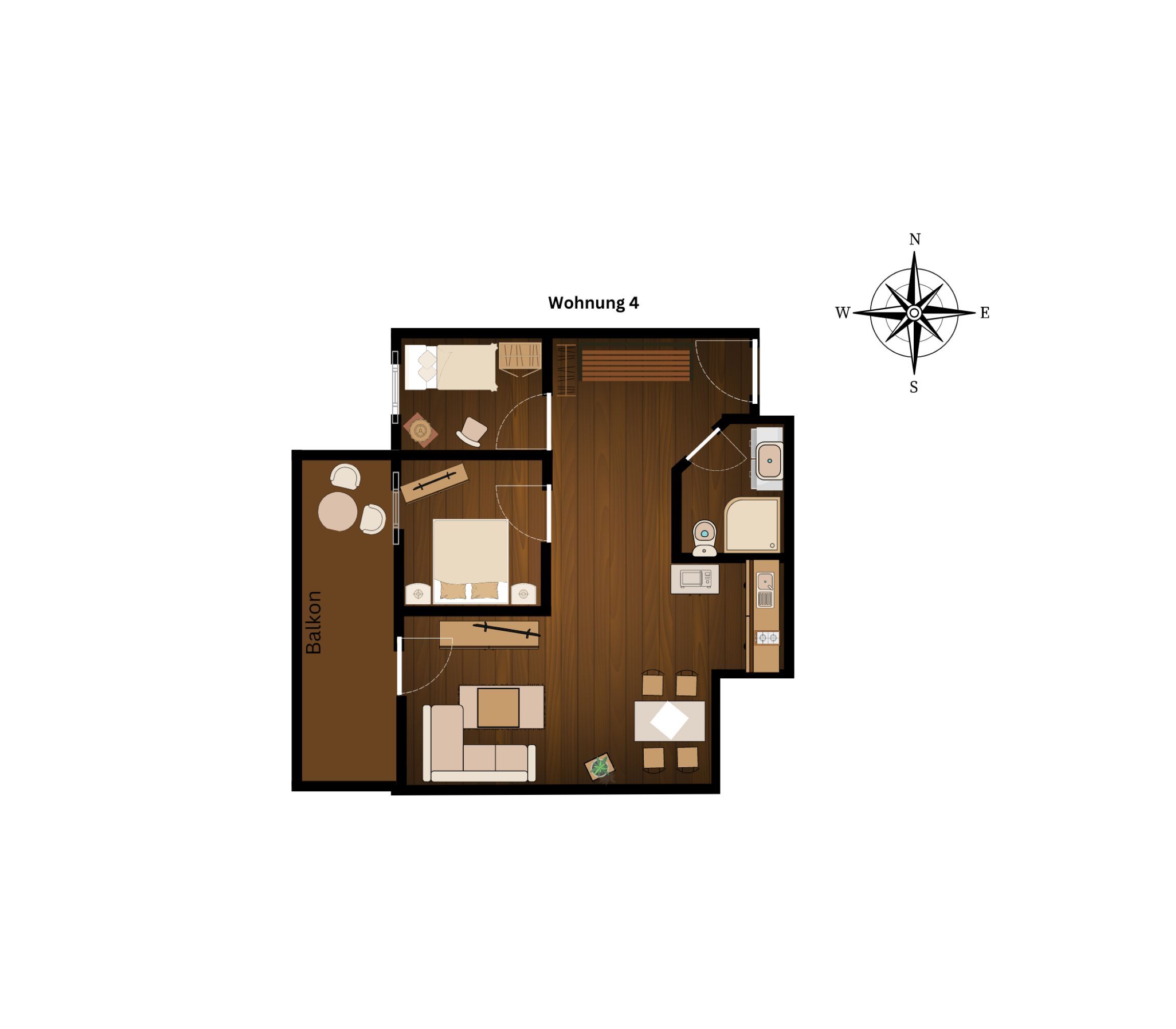 Die Wohnung Nr. 04 ist eine schöne Dreiraum-Wohnung mit Balkon. Sie ist ca. 42 qm groß.