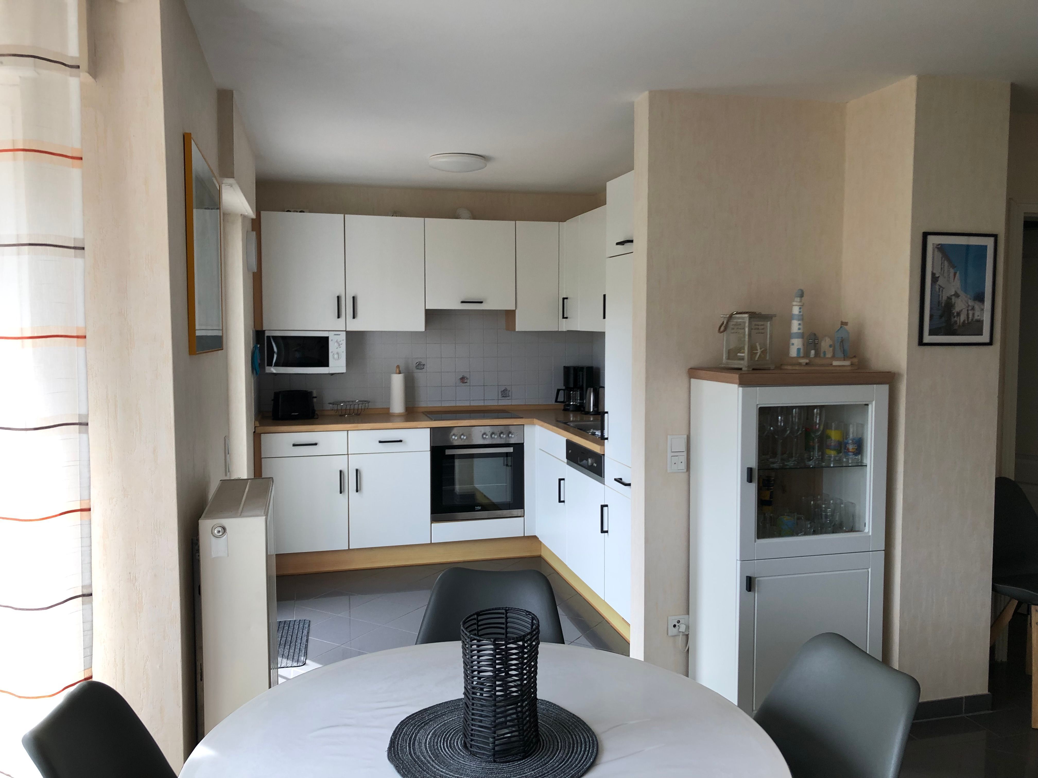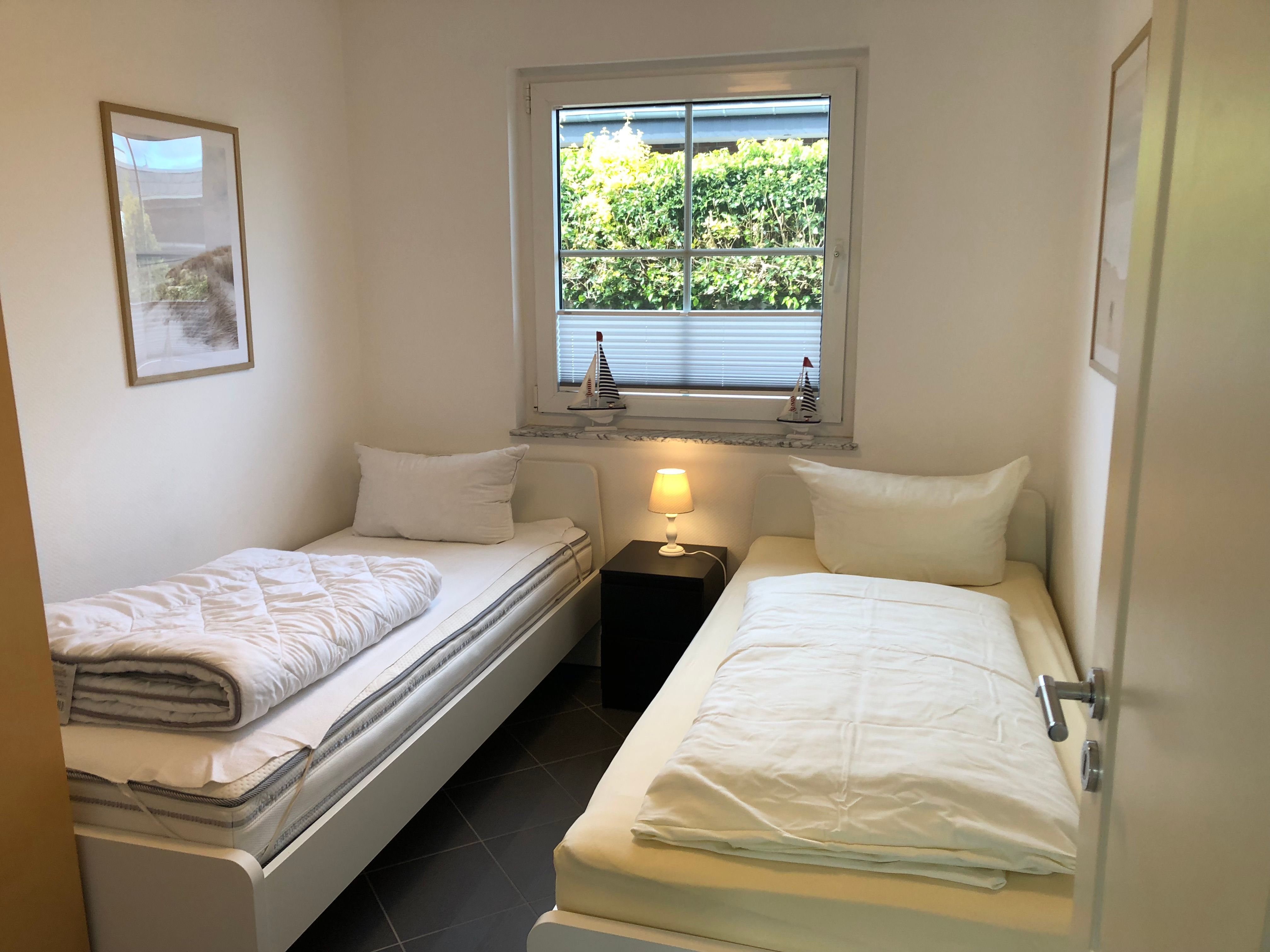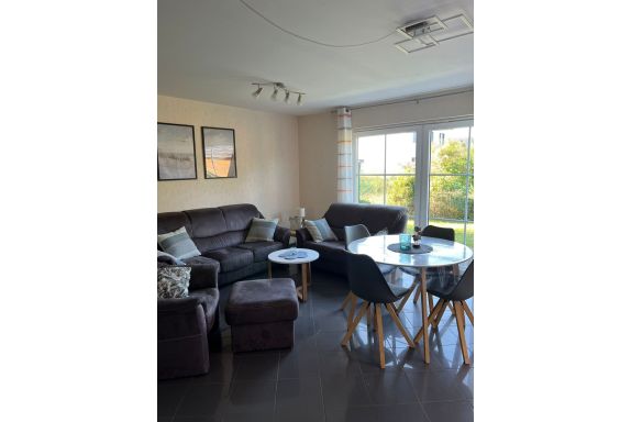 Die helle, großzügige und exklusiv eingerichtete 3-RaumErdgeschoss-Ferienwohnung ist (ca. 65 m²) groß und ist für 4 Personen geeignet, besteht aus einem Wohnraum, kompletter Einbauküche mit Cerankochfeld, Backofen, Mikrowelle und Geschirrspüler, Schlafzimmer (Doppelbett), Kinderzimmer, Bad mit Dusche (Bodengleich) und WC, Gäste-WC (zusätzlich) und einer Terrasse. Fliesenfußboden, sowie Fußbodenheizung im Wohnzimmer, Küche und Bad, Die zur Südseite gelegene gepflasterte Terrasse ist mit Gartenmöbeln, Sonnenschirm und Grill ausgestattet. Der Terrassenbereich ist aus der Küche sowie aus dem Wohnbereich begehbar. Die Erstausttatung Bettwäsche sowie 1 Geschirrtuch sind inklusive. Handtücher können entweder mitgebracht oder vor Ort gegen Gebühr ausgeliehen werden (bitte beim Schlüsselverwalter Herrn Käding vorbestellen). Den Gästen steht kostenfrei ein DSL-Internetzugang über W-LAN zur Nutzung zur Verfügung (keine zugesicherte Eigenschaft falls mal der Router ausfällt). Haustiere sind nicht erlaubt, Nichtraucherwohnung.