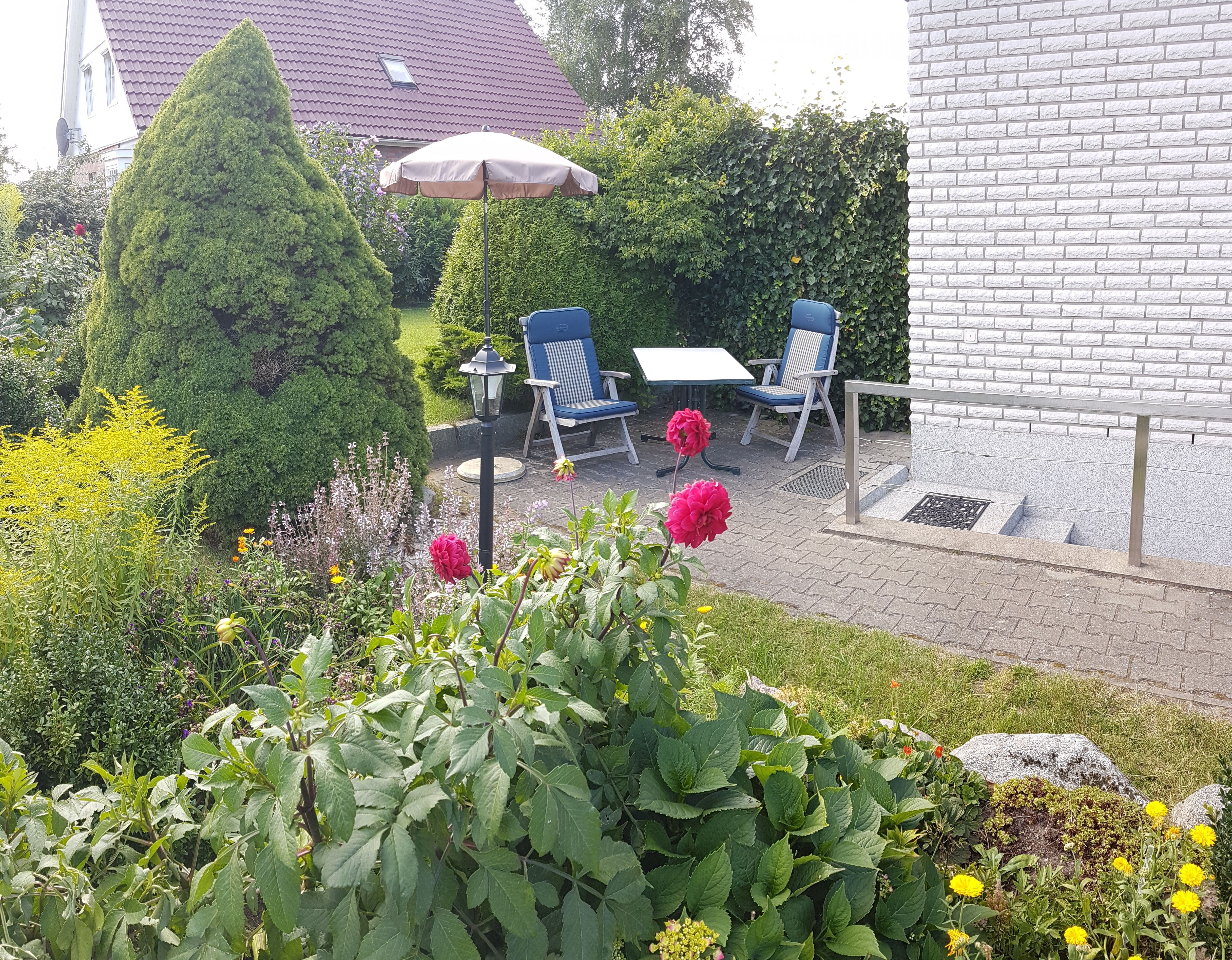 Unsere gemütliche Souterrain-Ferienwohnung mit separatem Eingang bietet ausreichend Platz für 2 Personen. Eine Aufbettung für eine erwachsene Person oder ein Kind ist möglich. Am Morgen können Sie beim Frühstück auf der Freifläche mit Blick auf unseren Blumengarten die Sonne und das Zwitschern der Vögel genießen. Hier können Sie auch in aller Ruhe grillen.