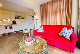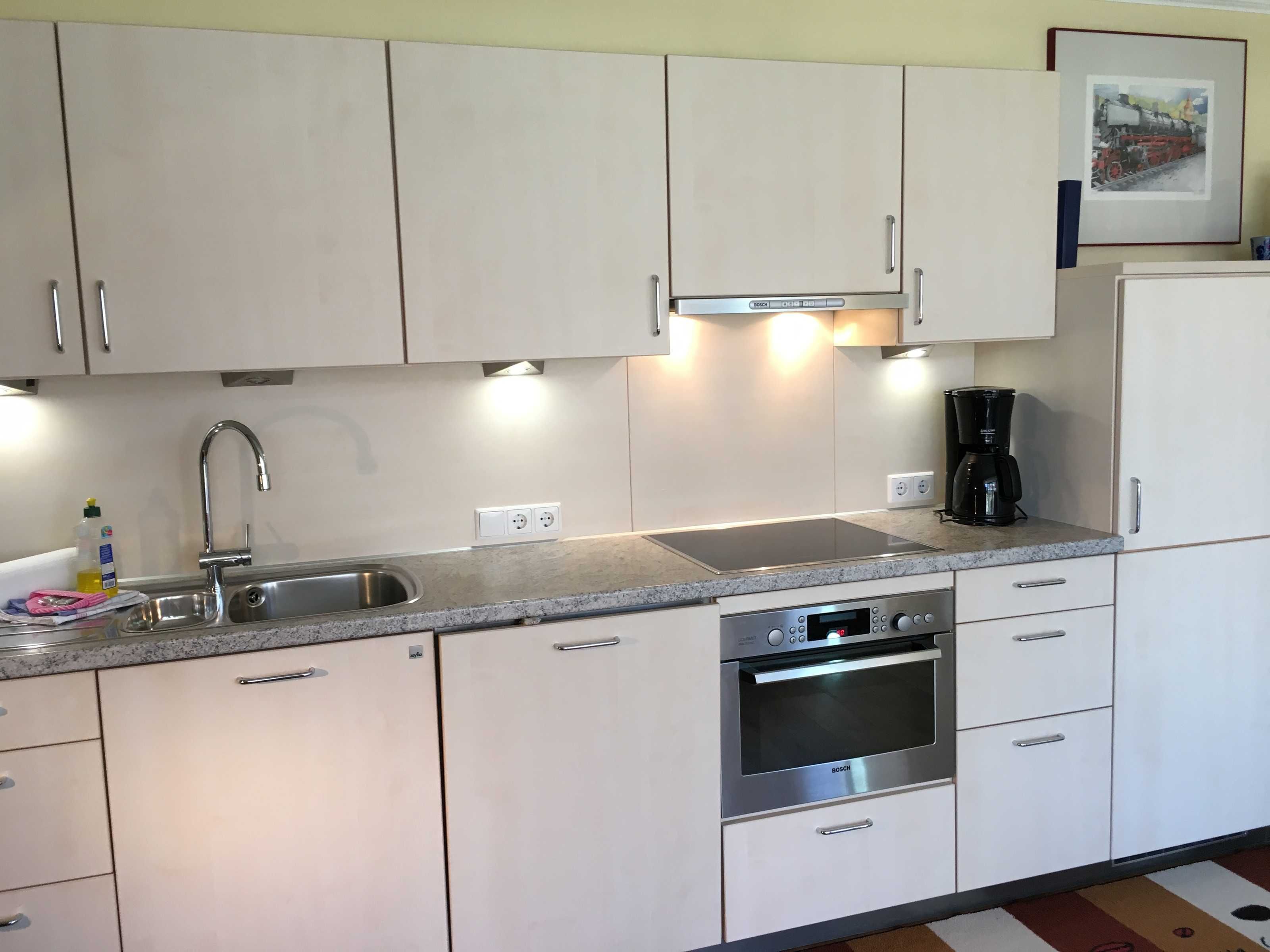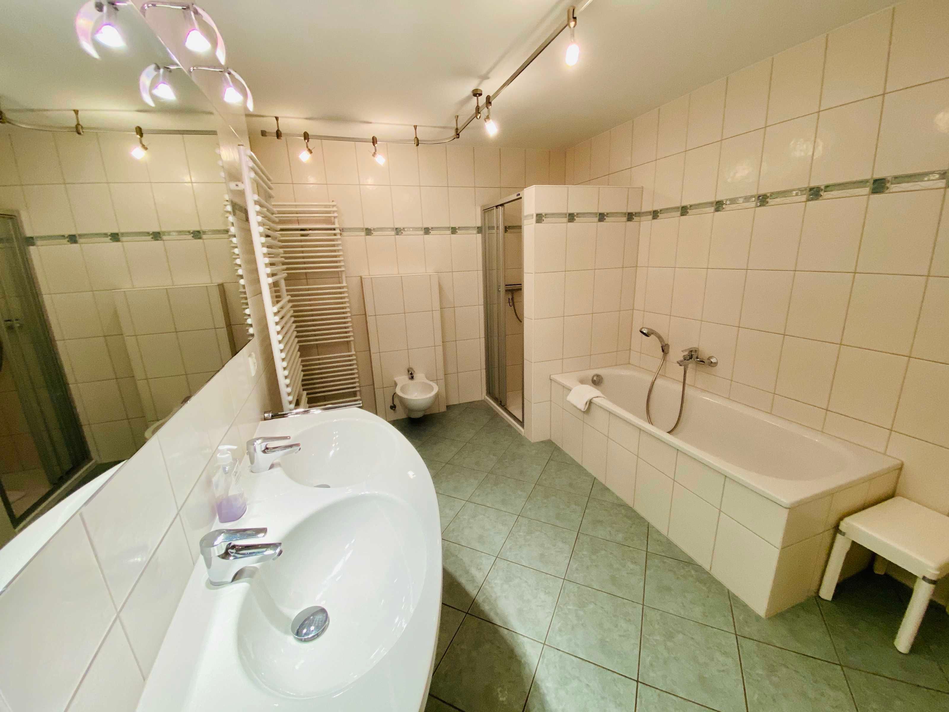 Die großzügige Ferienwohnung besticht durch ihre komfortable Ausstattung in jeder Hinsicht. Der gesamte Wohnraum ist mit Echtholzparkett ausgelegt (außer Bad), die Möbel sind absolut hochwertig. Das Wohnzimmer ist mit Sitzecke, Esstisch und Küchenzeile funktional und gemütlich zugleich. Beide Schlafzimmer haben ein Doppelbett und genügend Stauraum für Ihre Kleidung. Das Badezimmer ist mit Dusche , Wanne, Doppelwaschtisch, WC und Bidet auf die Bedürfnisse einer Familie eingerichtet. tolle Terrasse mit großem Sonnenschirm, ein Stellplatz