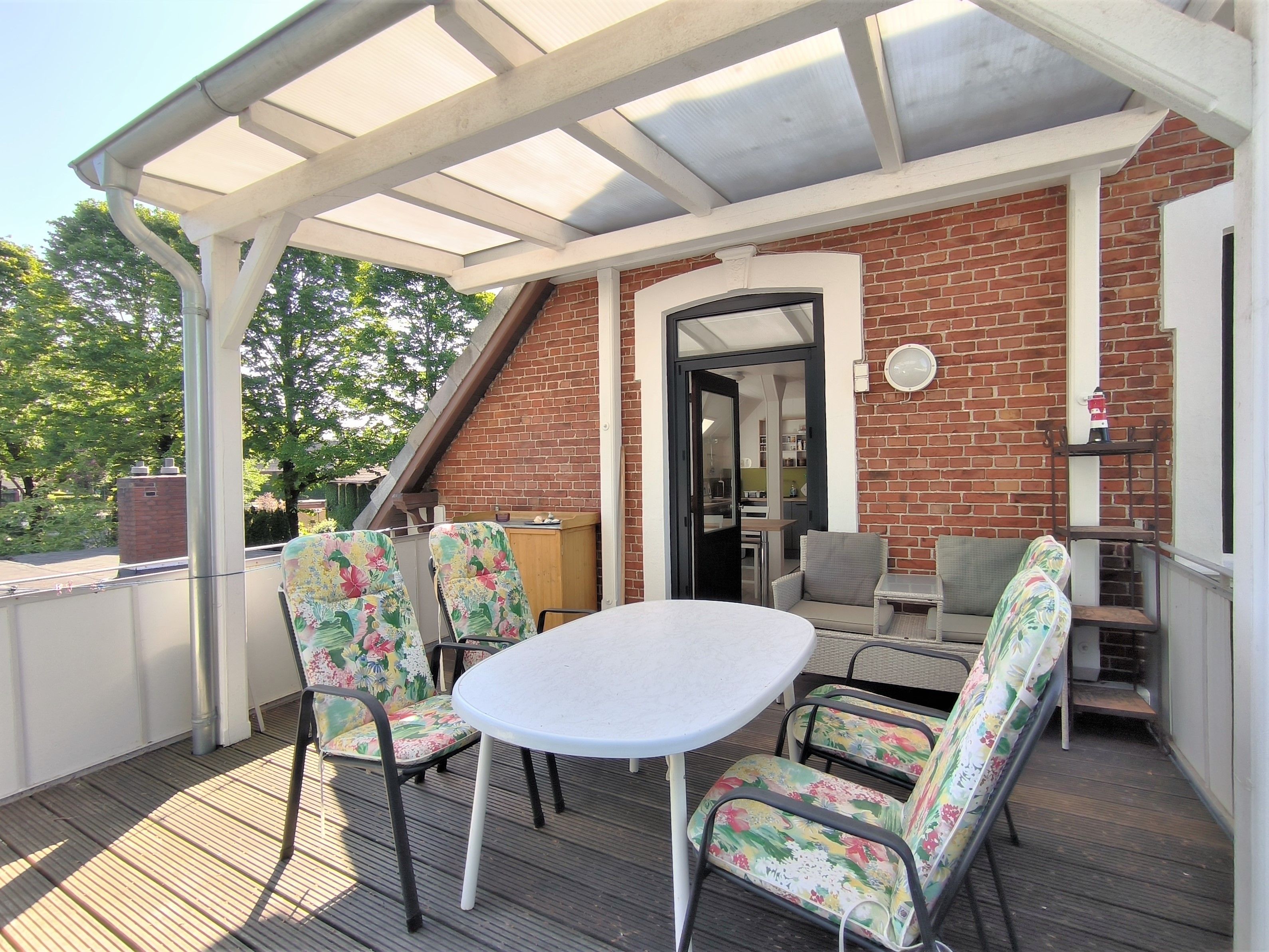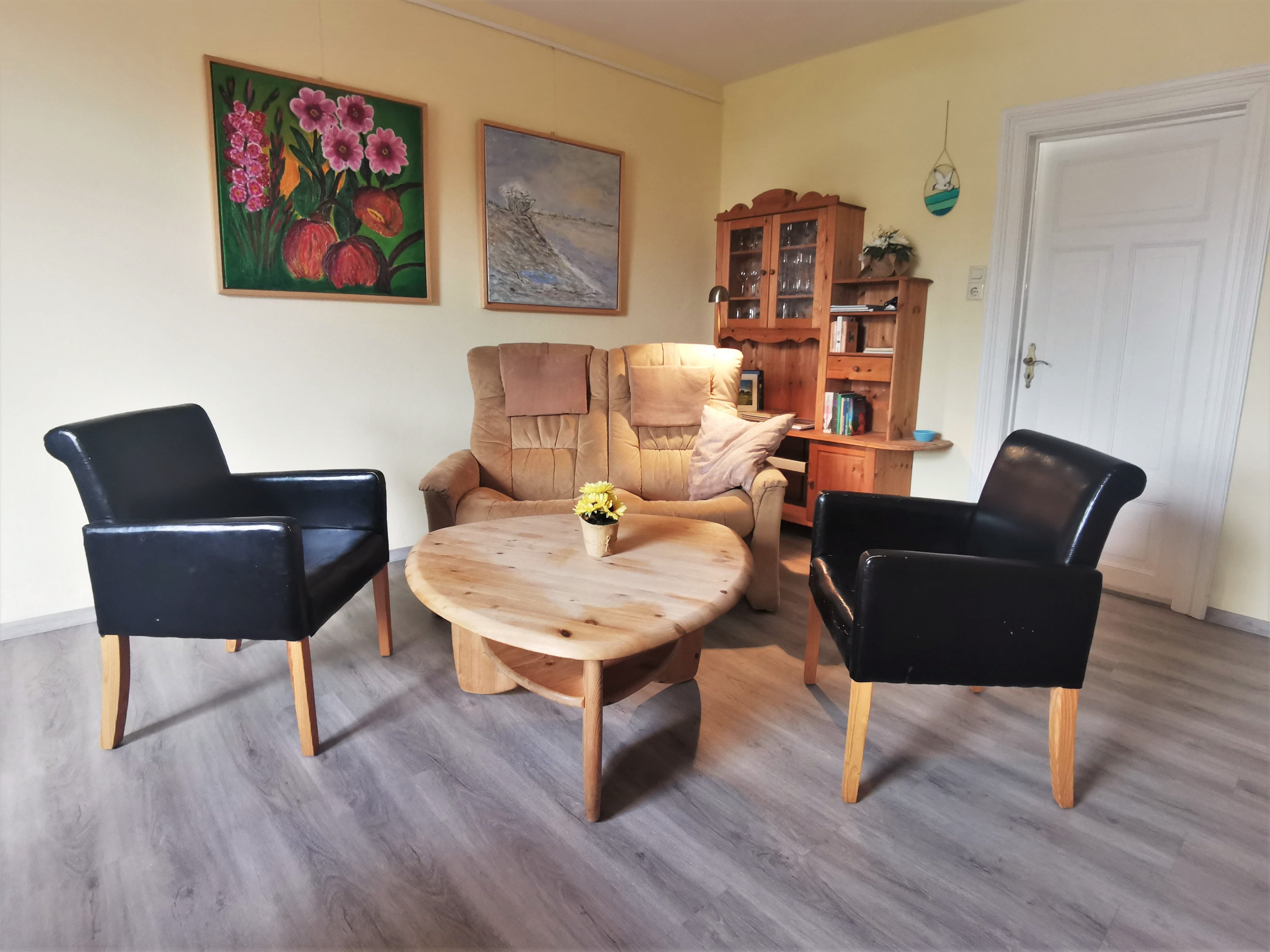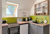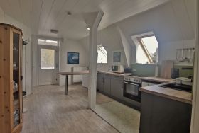 Die Ferienwohnung besteht aus zwei Schlafzimmern mit je zwei Einzelbetten. Das kleine Bad ist mit Toilette, Waschtisch und Dusche ausgestattet (bitte beachten: hoher Einstieg in die Dusche). Weiter gibt es eine Waschmaschine. Die Küche ist das Herzstück der Wohnung und ist sehr gut ausgestattet (Geschirrspülmaschine, Mikrowelle, Kühlschrank mit kleinem Gefrierfach) und lädt mit einem Tresen zum gemeinsamen Zubereiten der Mahlzeiten oder zum netten Austausch ein. Der Esstisch für vier Personen steht im unmittelbar angrenzenden Wohnzimmer, das außerdem über eine gemütliche Sitzecke und einen Flachbild-Fernseher verfügt. Im Wohnzimmer steht eine große Schrankwand (auch für die Kleider zu nutzen, da in den Schlafzimmern keine Kleiderschränke vorhanden sind). Auf der tollen Dachterrasse sitzt man geschützt (teilweise überdacht) und kann sich mit dem Elektrogrill leckere Mahlzeiten zubereiten.
