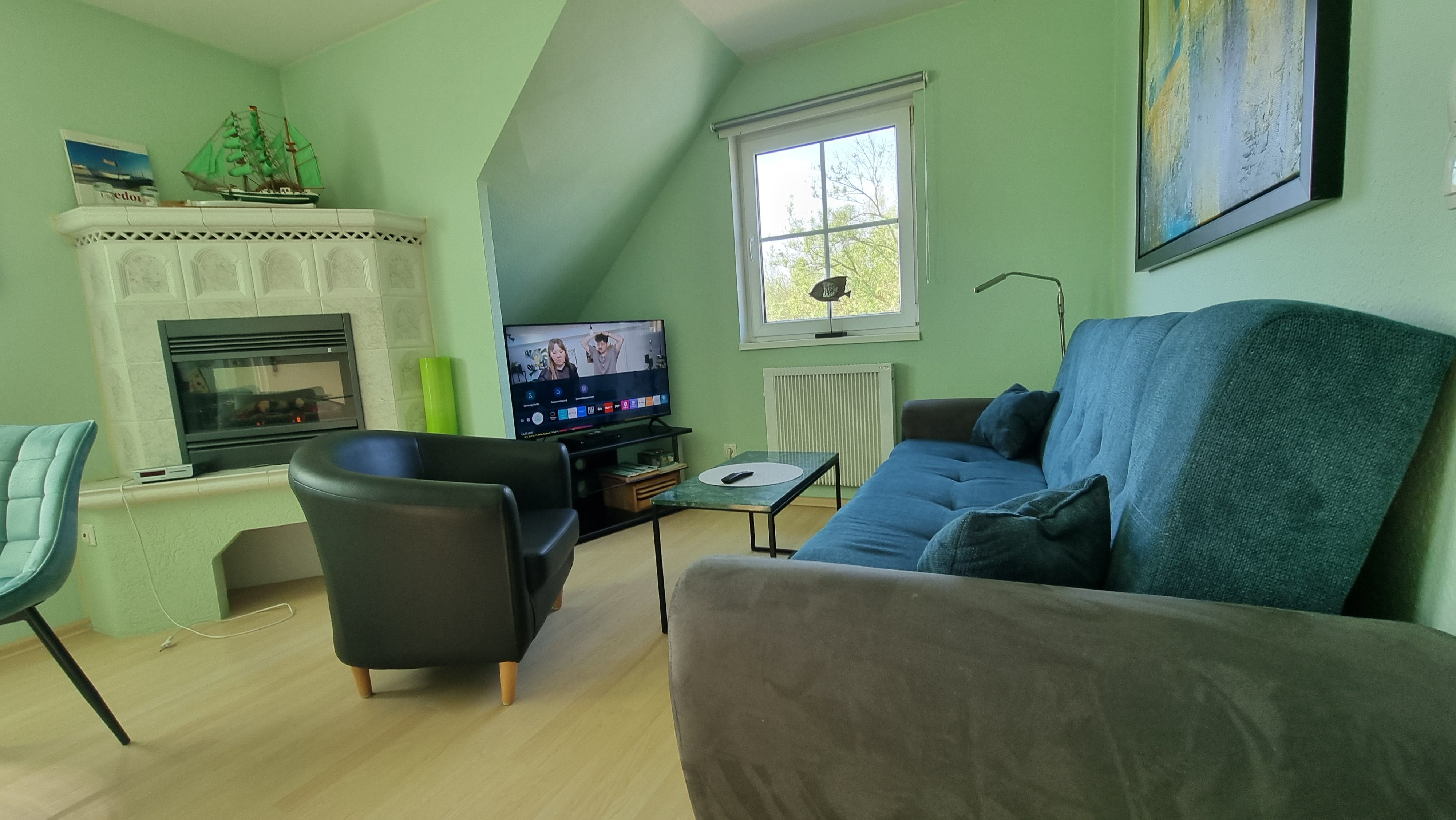 Die Wohnung ist optimal für Paare oder Reisepartner geeignet. Durch das große Wohnzimmer mit Kamin ist die Wohnung auch die Wahl zum Überwintern.