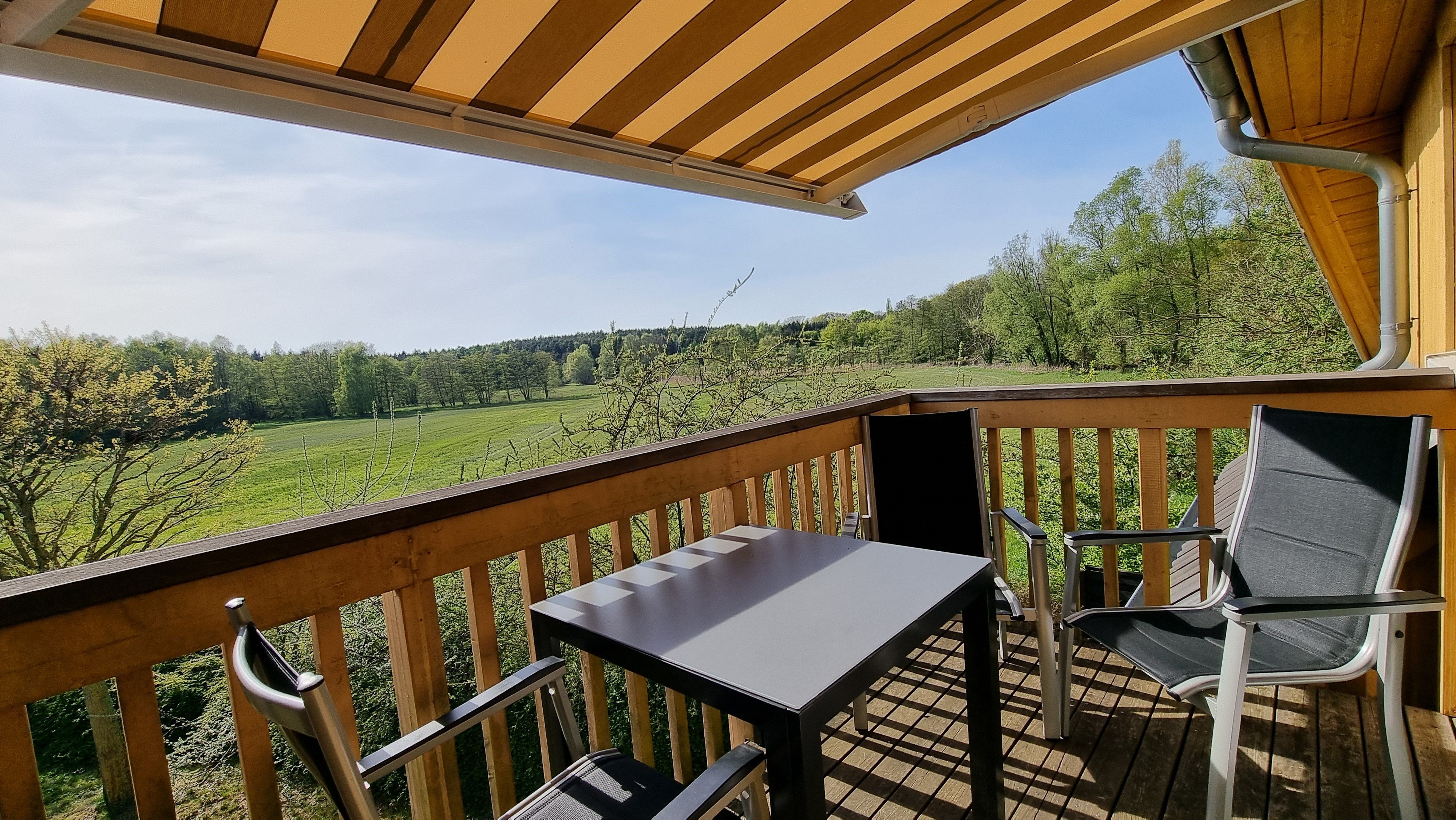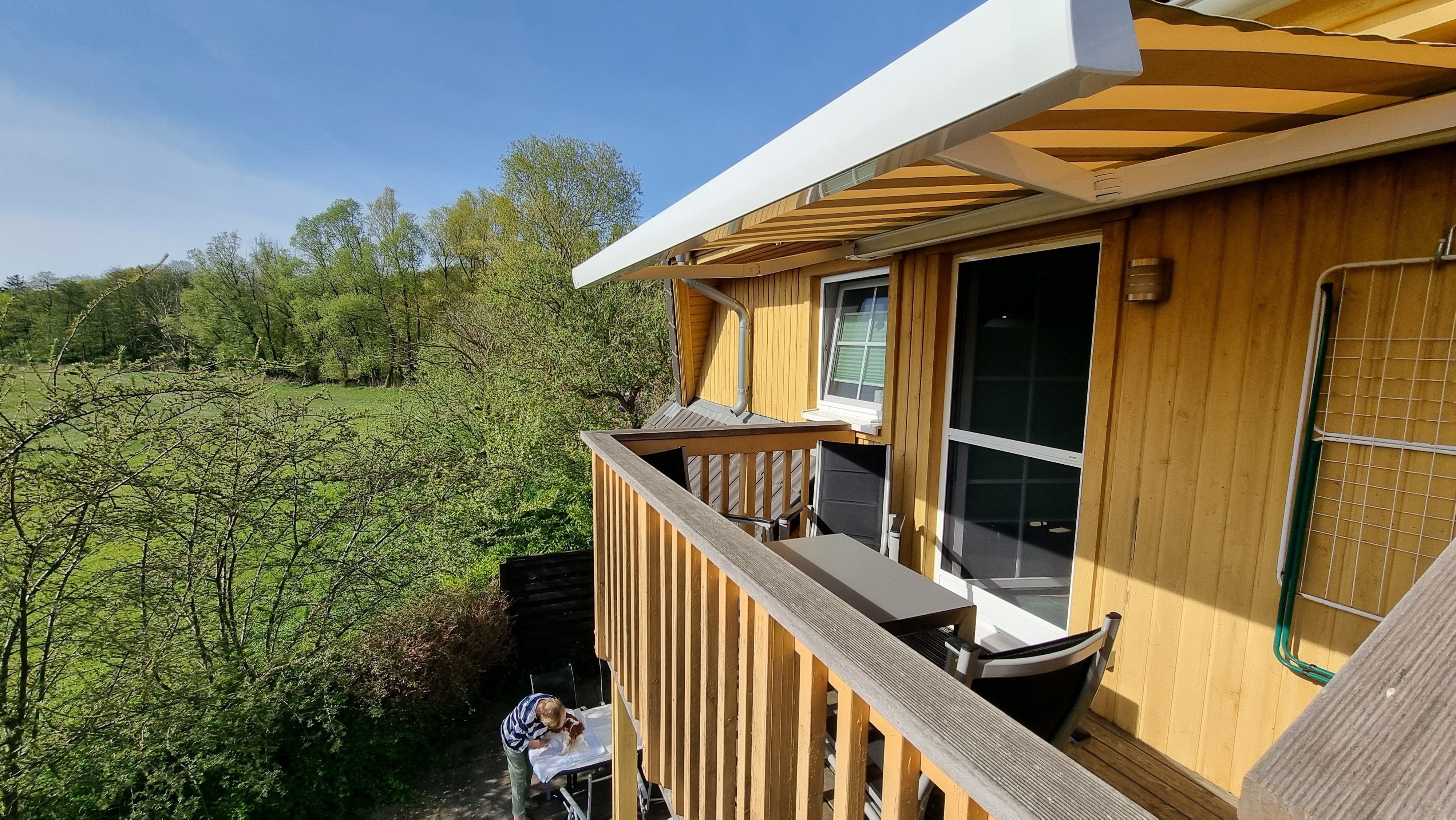 • 1 Süd/Süd-west Balkon mit Möbeln und Sonnenschirm oder Markise