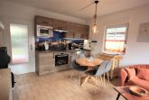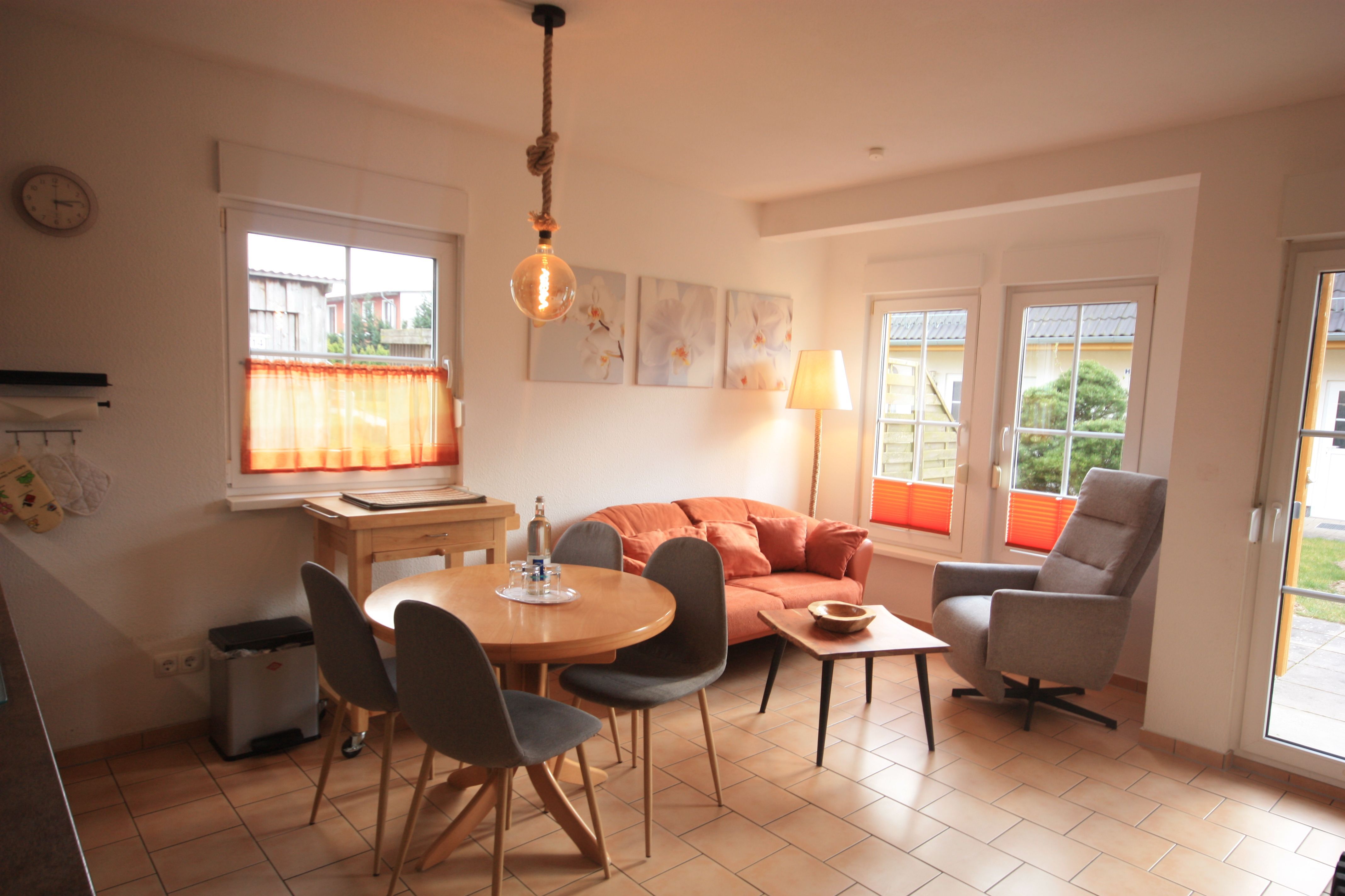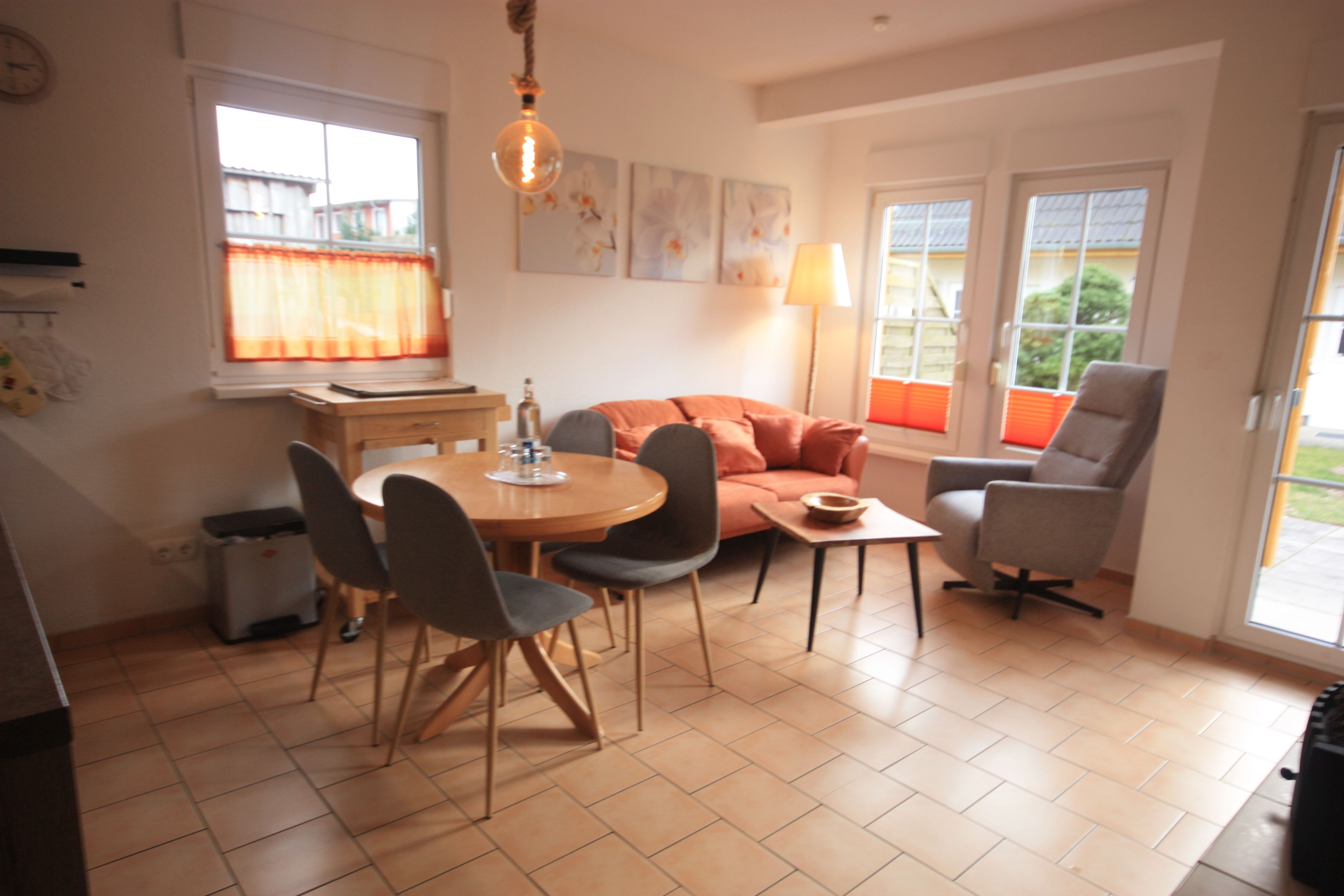Die Wohnung ist im mediterranen Stil gehalten. Es überwiegen orange und terracottafarbene Farbtöne. Die Boden- und Wandbeläge, Möbel und Einrichtungsgegenstände sind aufeinander abgestimmt und geben der Wohnung den typischen mediterranen Flair. Die Wohnung verfügt über ein Schlafzimmer mit Doppelbett und ein Schlafzimmer mit Etagenbett. Die Wohnung ist ideal geeignet für Familien und Hundeliebhaber.