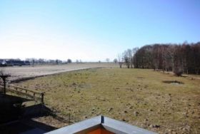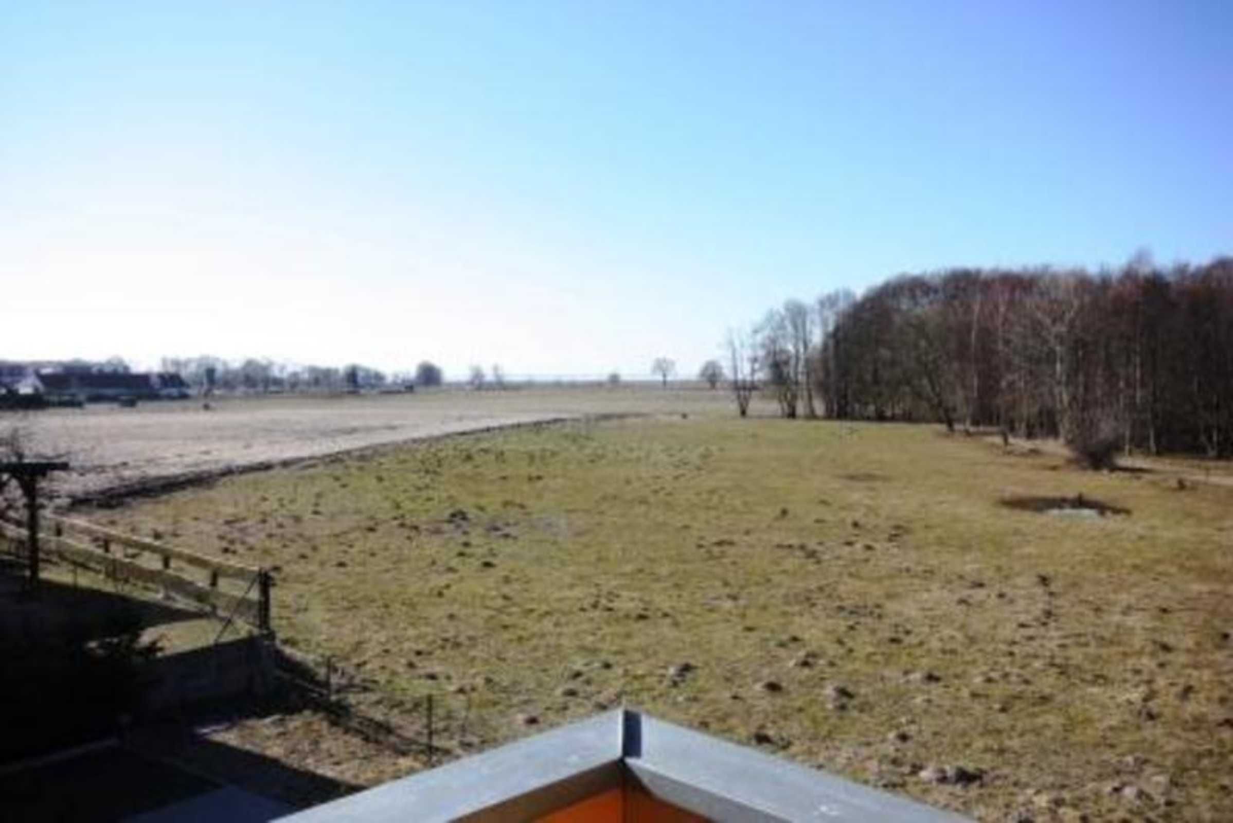 Die Ferienwohnung liegt im Obergeschoß des Ferienhauses rechts. Sie besteht aus Wohnzimmer, kompl. ausgestatteter Küche, Balkon mit Holzsitzmöbeln, Schlafzimmer und Tageslichtbad. Neben dem Schlafzimmer mit Doppelbett steht im Wohnzimmer noch ein Schlafsofa zur Verfügung. Die Ausstattung der apfelgrünen Einbauküche ist neuwertig funktional und qualitativ hochwertig unter anderem mit Toaster, Kaffeemaschine, Mikrowelle mit Grill, 4-Platten-Kochfeld, Geschirrspüler, Gefrierfach. Großer Südbalkon mit unverbautem Blick ins Grüne und Richtung Achterwasser.