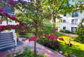 Die Ferienwohnungen liegen in einem kleinen Park mit altem Baumbestand und einem Gartenteich mit Springbrunnen. Bänke und überdachte Freisitze in den gepflegten Gartenanlagen laden zum Verweilen ein.