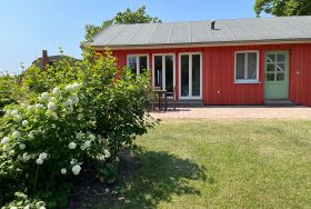 Unterkunft: Ein rotes und ein grünes 4-Raum-Ferienhaus im modernen Landhausstil (95 qm) für bis zu 8 Personen. Die Ferienhäuser bestehen aus einem großen, hellen Wohnzimmer mit integrierter Küche. Vom Wohnzimmer haben Sie durch 3 Terrassentüren direkten Zugang zur Terrasse / Garten. 3 Schlafzimmer, 1 Badezimmer mit WC, Waschbecken und Dusche, 1 Badezimmer mit WC, Badewanne und Waschbecken. Aufbettung für 7. & 8. Person auf auziehbarer Schlafcouch (= Doppelbett) im Wohnzimmer.