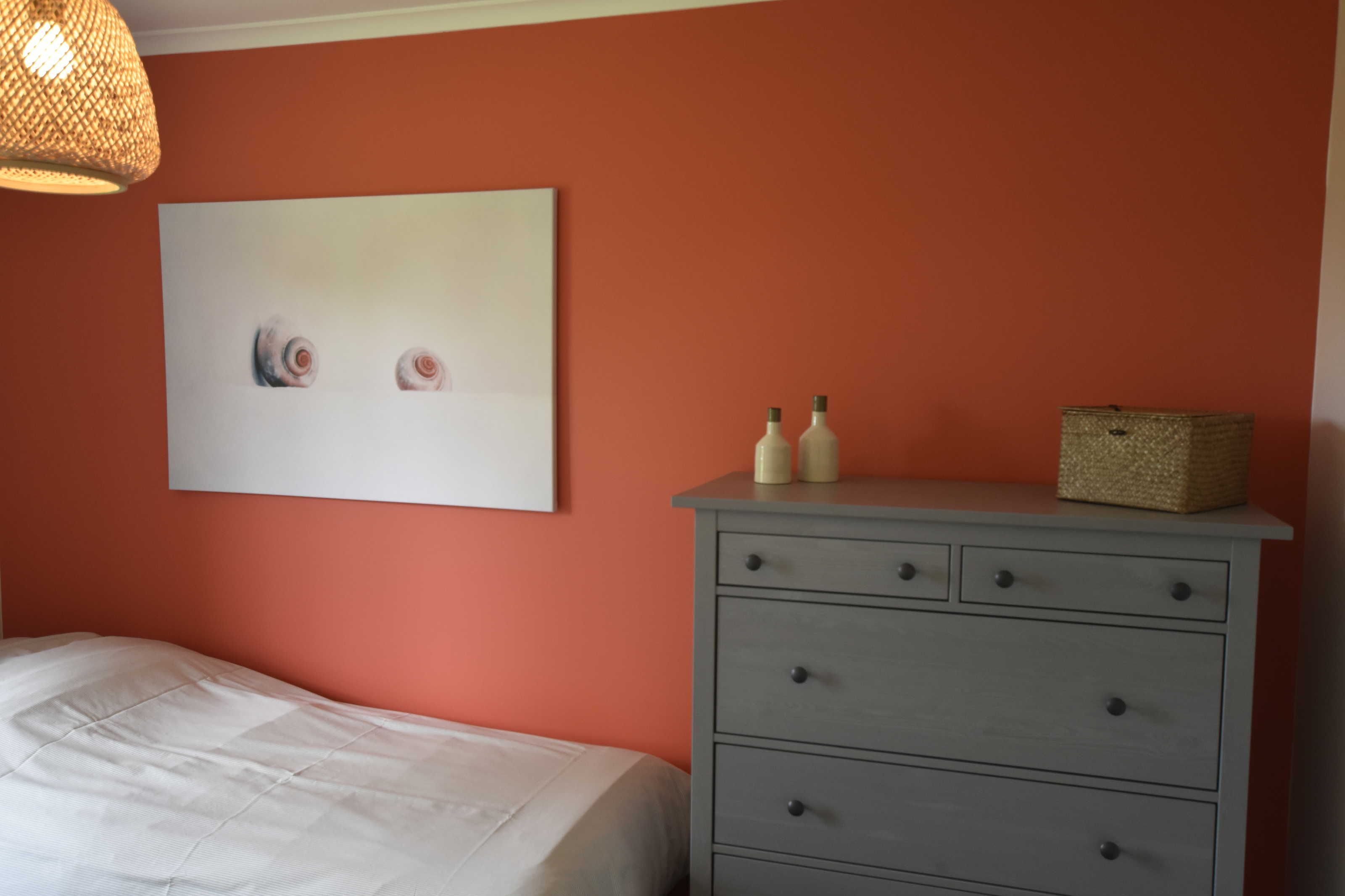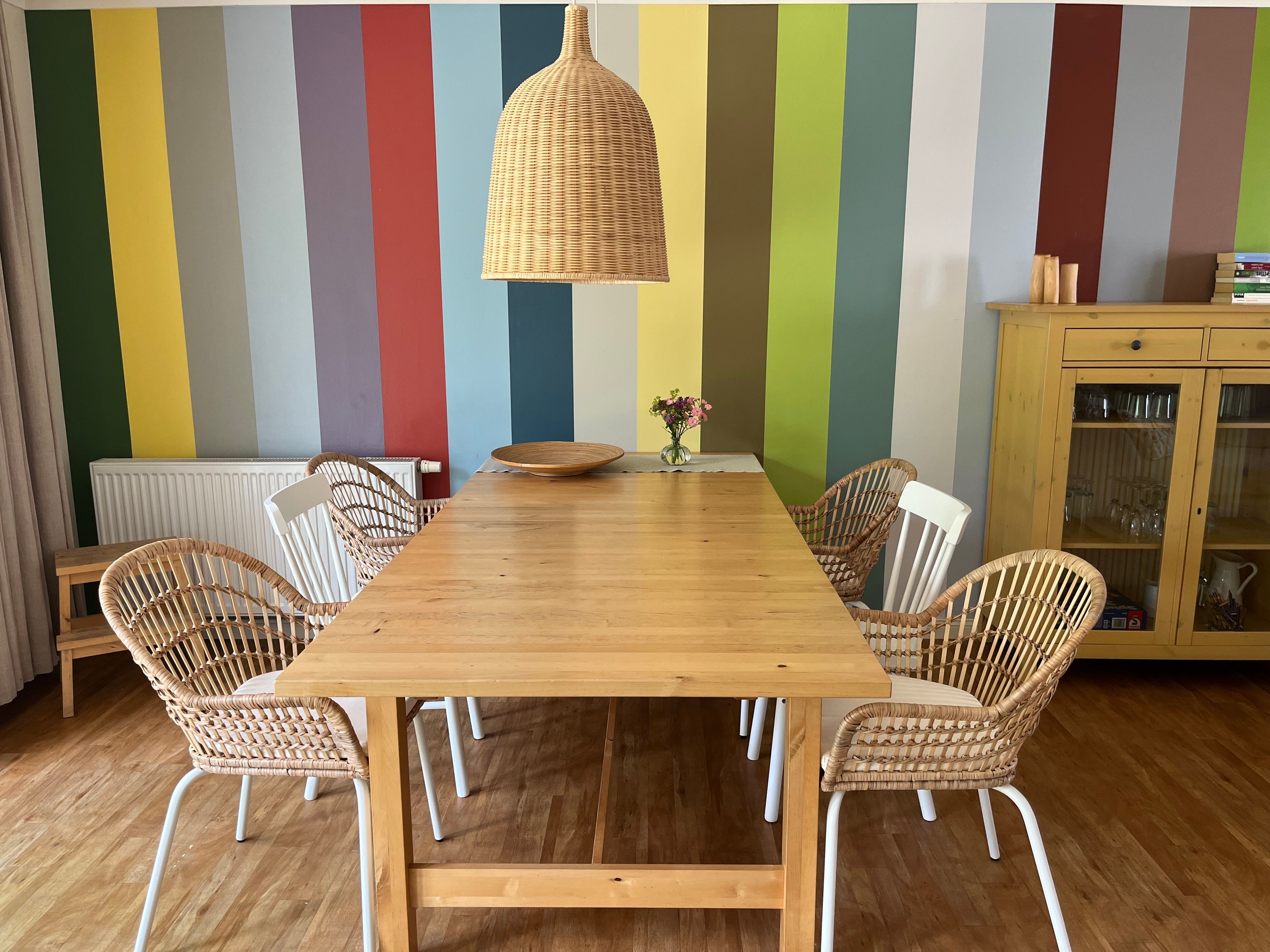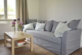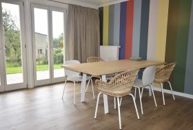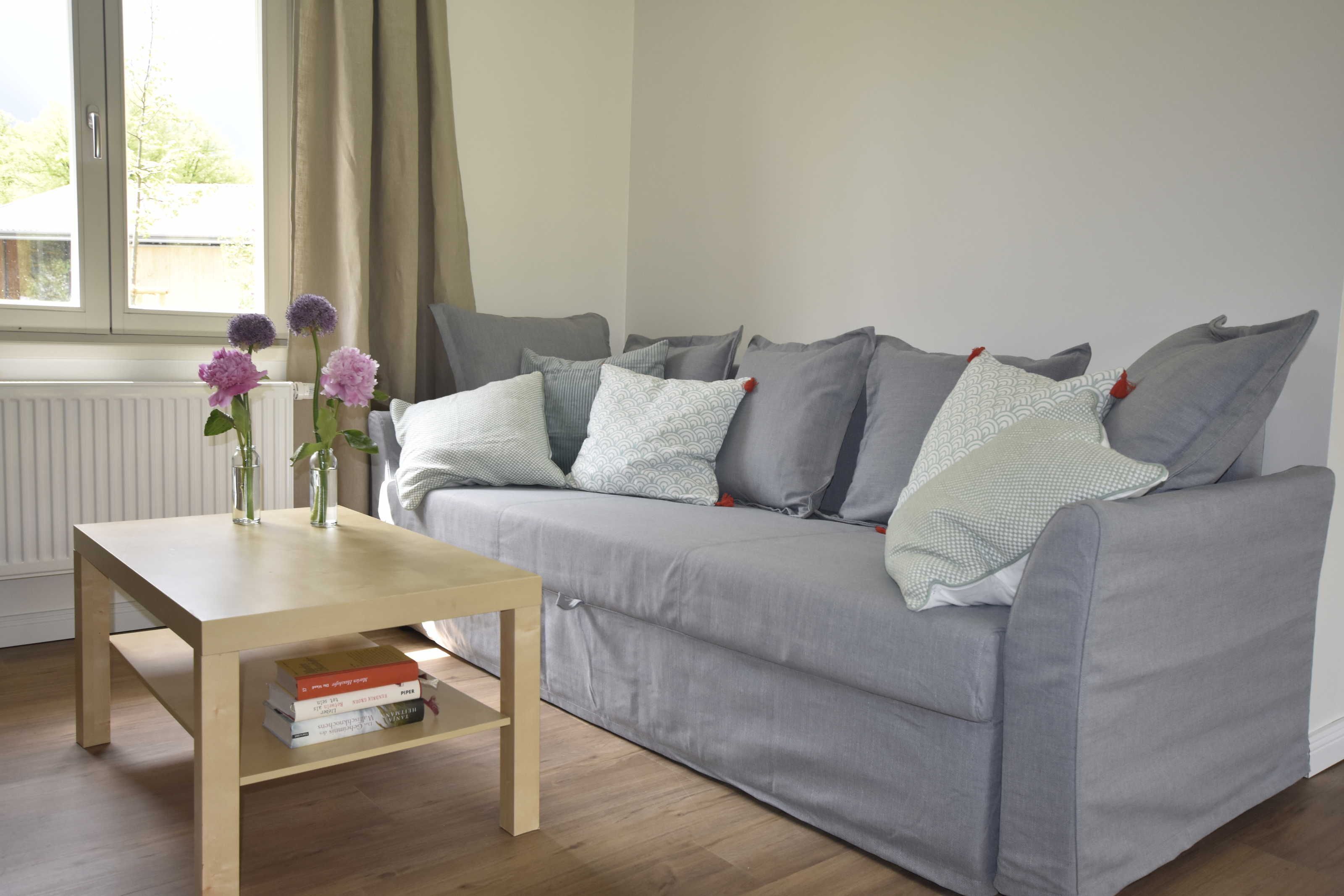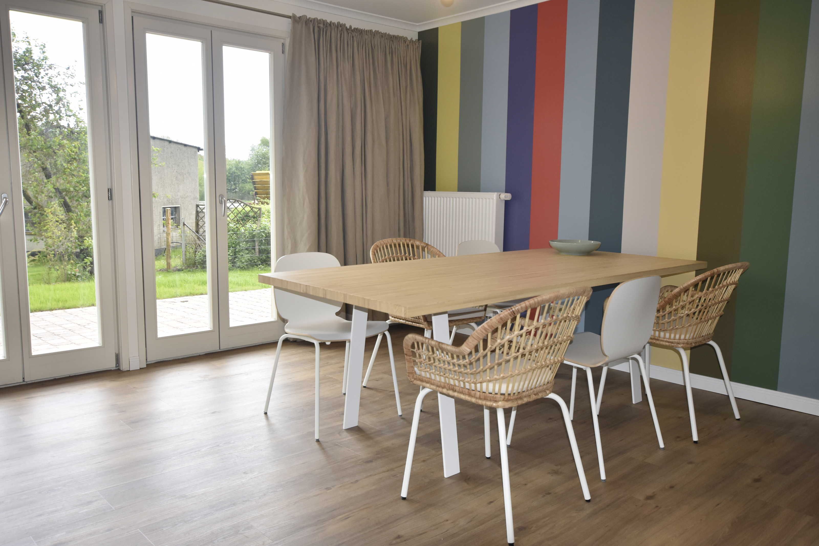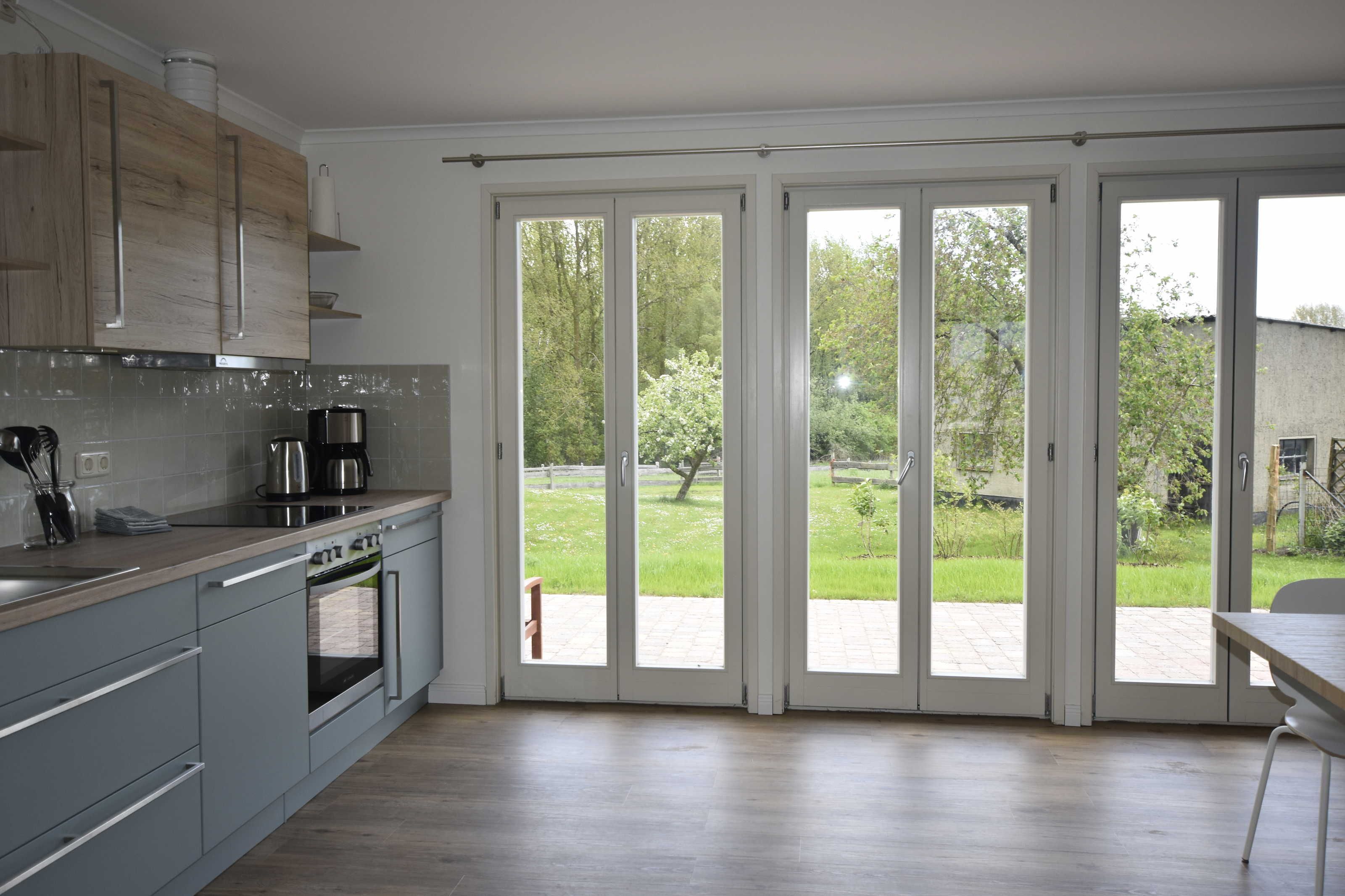 Neu gebautes (Fertigstellung April 2021) 4-Raum-Ferienhaus (94 qm) bis zu 8 Personen mit 2 Bädern. Ideal für Familien mit Kindern. Modern, farbenfroh und freundlich eingerichtet. Wohnzimmer mit integrierter Küche, großem Eßtisch und Sitzecke. Küche ausgestattet mit 4 Platten Ceranfeld, Geschirrspülmaschine, Backofen, Mikrowelle, Kaffeemaschine, Wasserkocher. 1 Schlafzimmer mit Doppelbett, 2 Schlafzimmer mit jeweils 2 Einzelbetten. Aufbettung für 7. und 8. Person im Wohnzimmer auf ausziehbarer Schlafcouch (=Doppelbett). Es gibt 2 Badezimmer; 1 Badezimmer mit Dusche, WC und Waschbecken und 1 Badezimmer mit Badewanne, WC und Waschbecken. Direkter Zugang vom Wohnzimmer zur Terrasse mit Gartenmöbel.