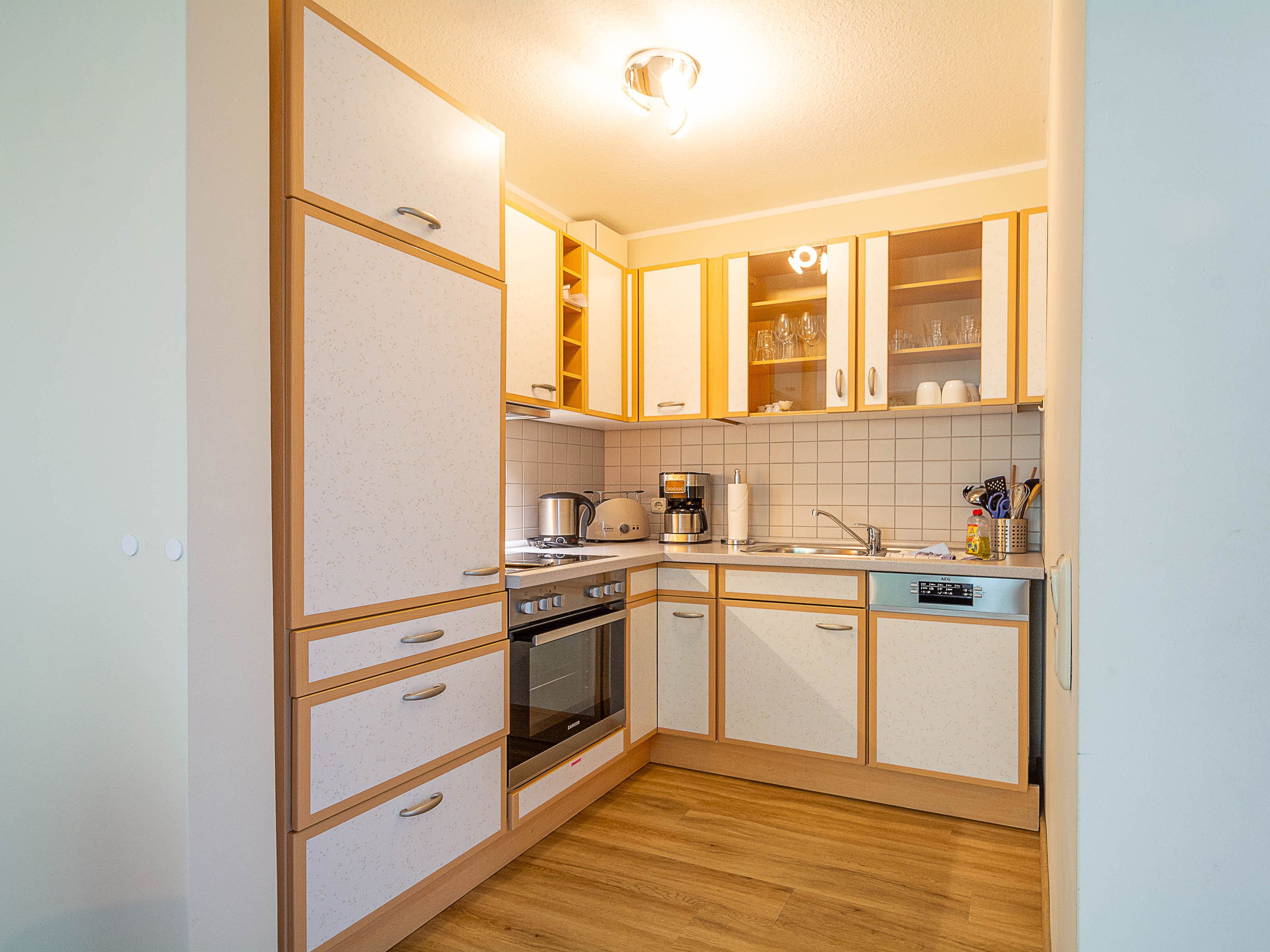 Die offene Küchenzeile hält für Sie alle wichtigen Küchengeräte und -utensilien bereit, die Sie für Ihr perfektes Dinner benötigen: Ein 4-Zonen-Cerankochfeld mit Dunstabzug, ein Backofen, ein Geschirrspüler sowie Kühlschrank mit Gefrierfach befinden sich in der Küche.Eine Kaffeemaschine, ein Wasserkocher und ein Toaster sowie genügend Koch- und Essgeschirr vervollständigen die Kücheneinrichtung.