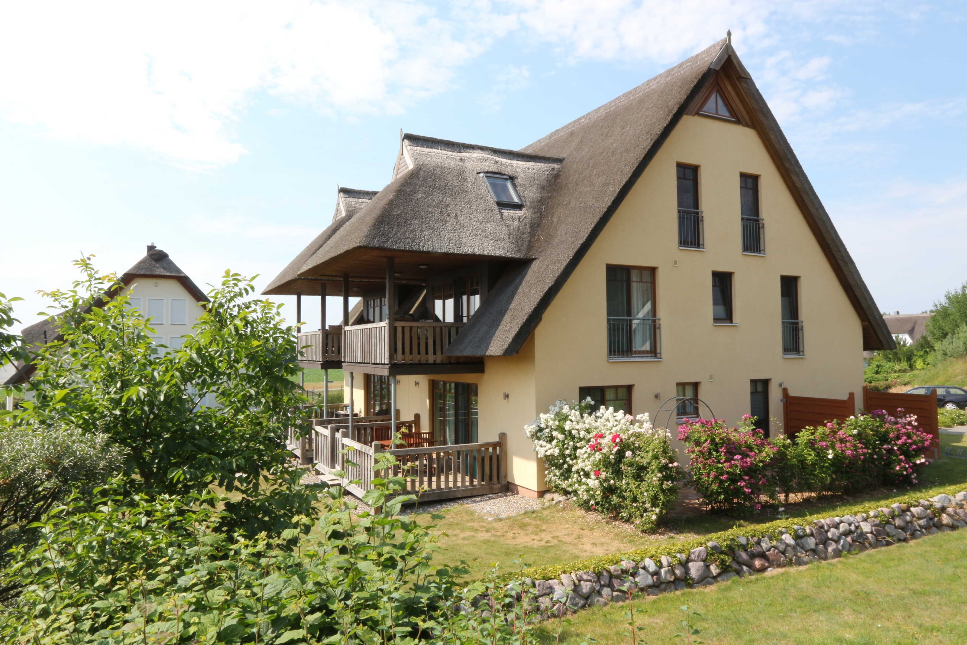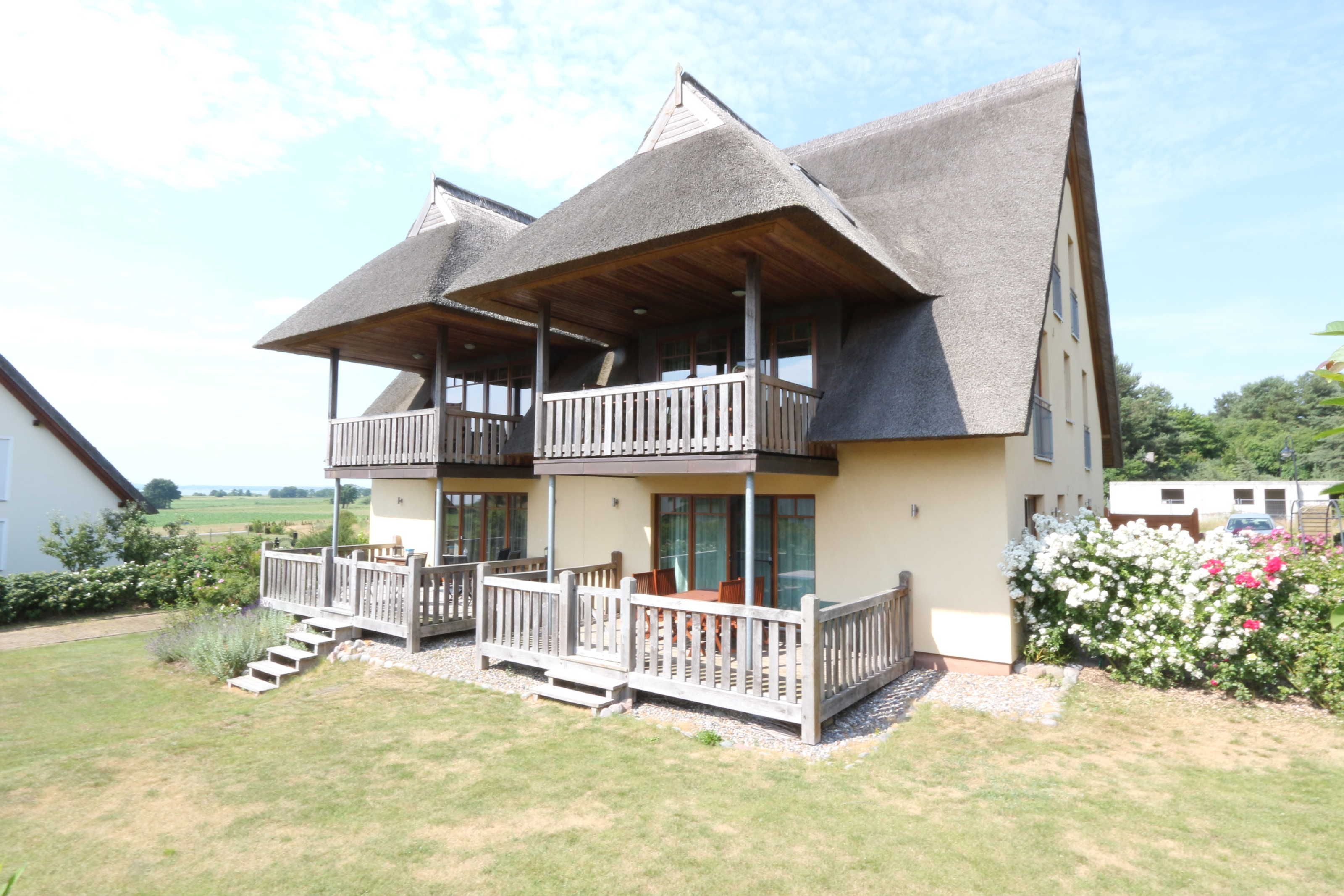 Die Wohnungen befinden sich in einer neuen großzügig angelegten Reethaussiedlung 300 m vom Achterwasser entfernt in 17459 Loddin, Straße der Deutschen Einheit 13 a in der Inselmitte. Die Holzterrasse der Erdgeschosswohnung und der Balkon der Obergeschosswohnung sind zur Südseite ausgerichtet mit Blick auf das Achterwasser. Unweit befindet sich ein Bootshafen, ein Bootsverleih und 5 gastronomische Einrichtungen. Auch ein Reiterhof ist im Ortsteil Kölpinsee. Der Ostseestrand ist bequem per Rad oder Auto in 10 Minuten erreicht. Fahrräder konnen gemietet und zur Fewo geliefert werden.