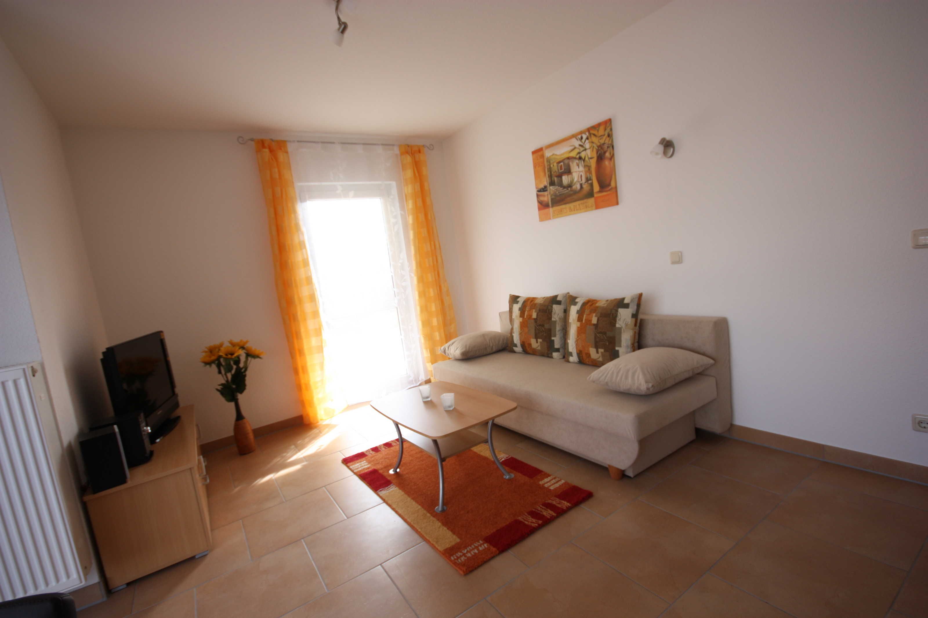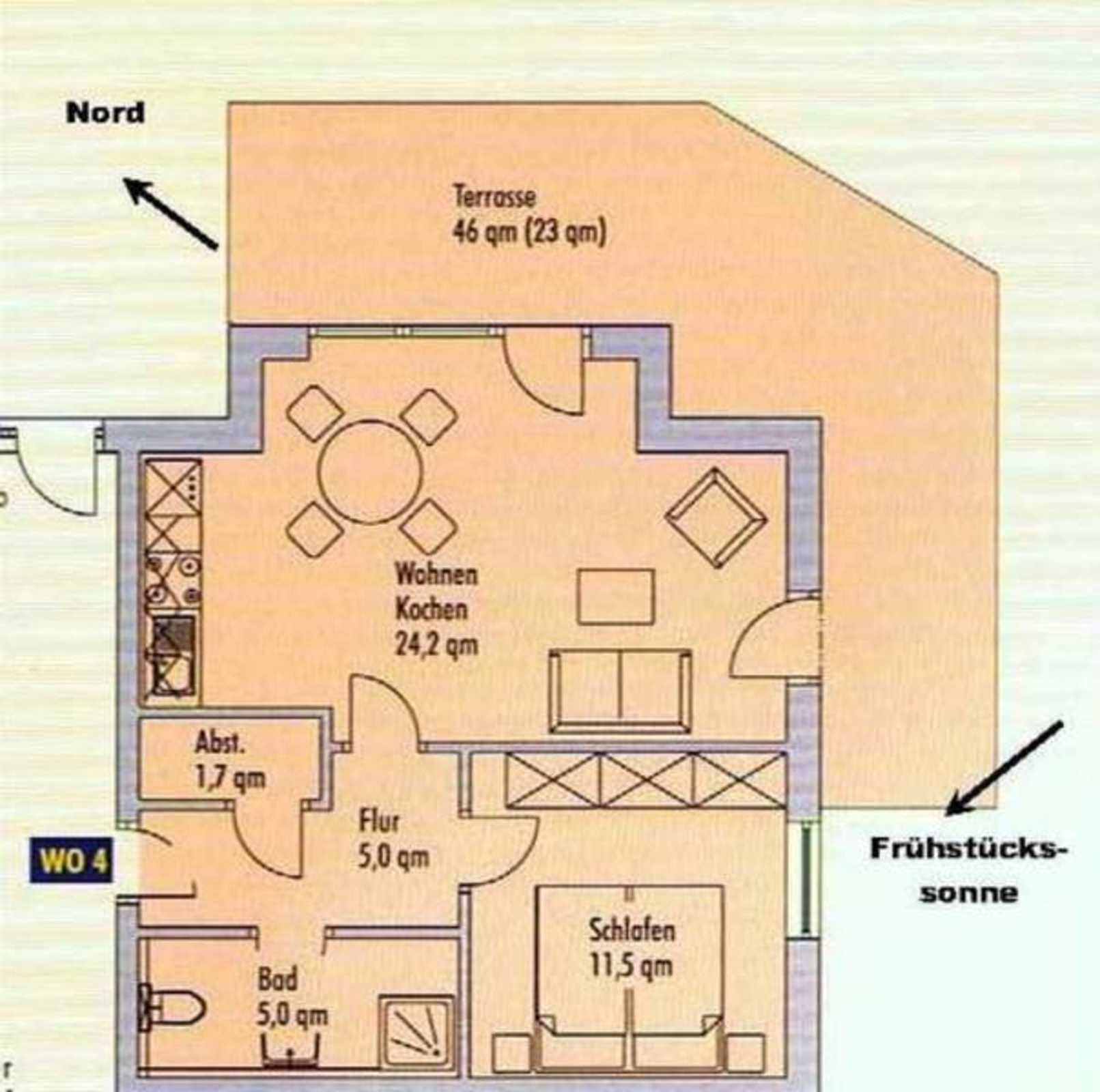 • 1 Wohnzimmer mit offener Küche, Eßtisch, Couchecke